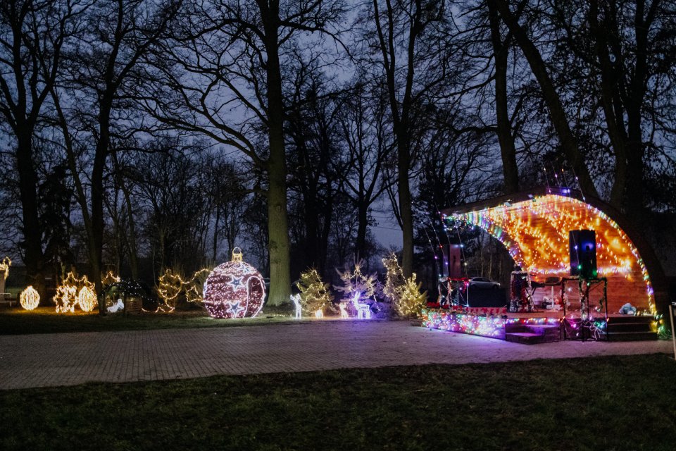 W tym roku głównym elementem scenografii były bajecznie kolorowe światełka. Podświetlone zostały nie tylko elementy dekoracyjne, ale również wybrane drzewa i krzewy, scena, a nawet cały budynek sali wiejskiej. Dzięki temu, świąteczny klimat panował na całym terenie.