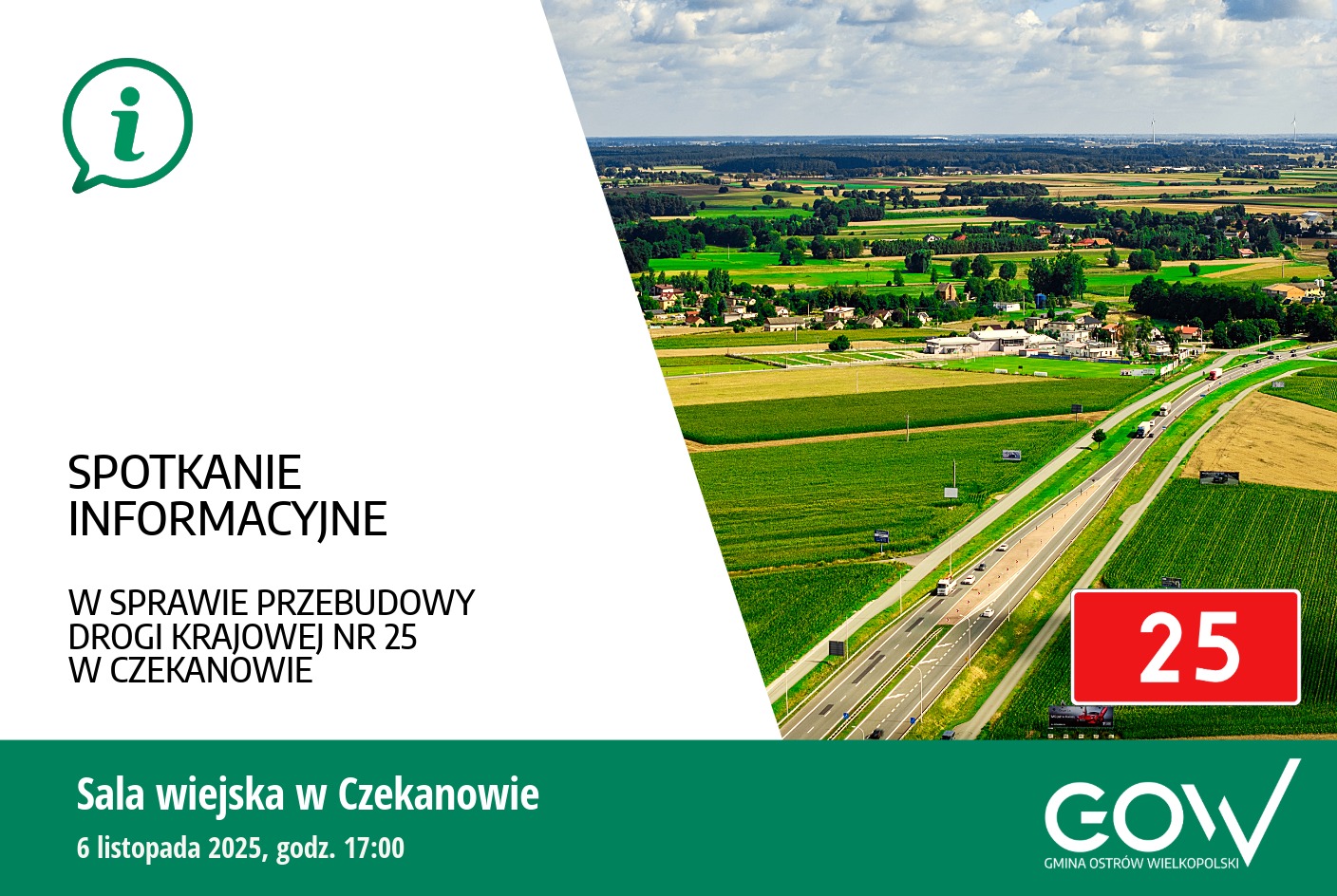 6 listopada 2025 (czwartek) o godzinie 17:00 w sali wiejskiej w Czekanowie zaplanowano spotkanie ws. przebudowy drogi krajowej numer 25. Podczas spotkania wykonawca inwestycji ma przedstawić projekt przebudowy.