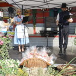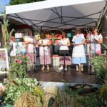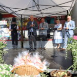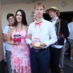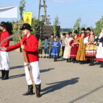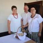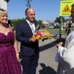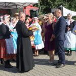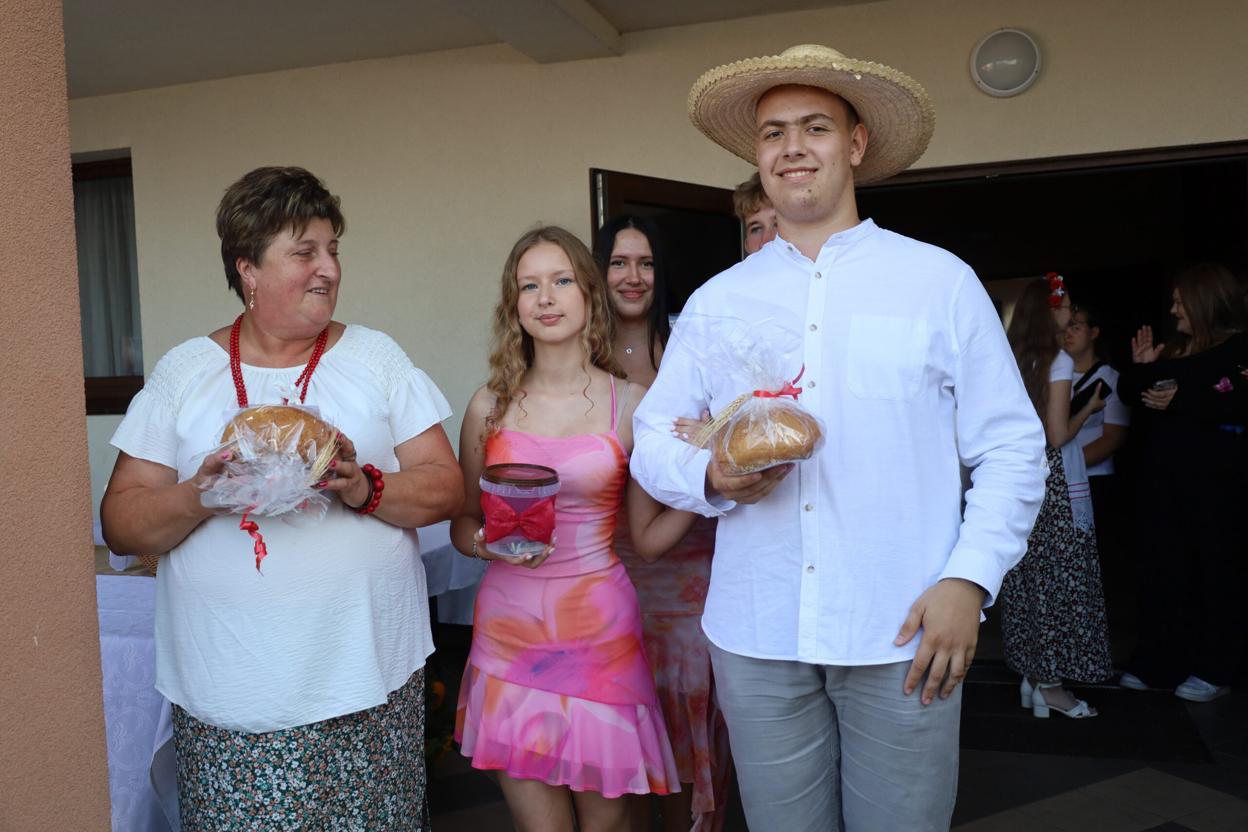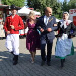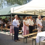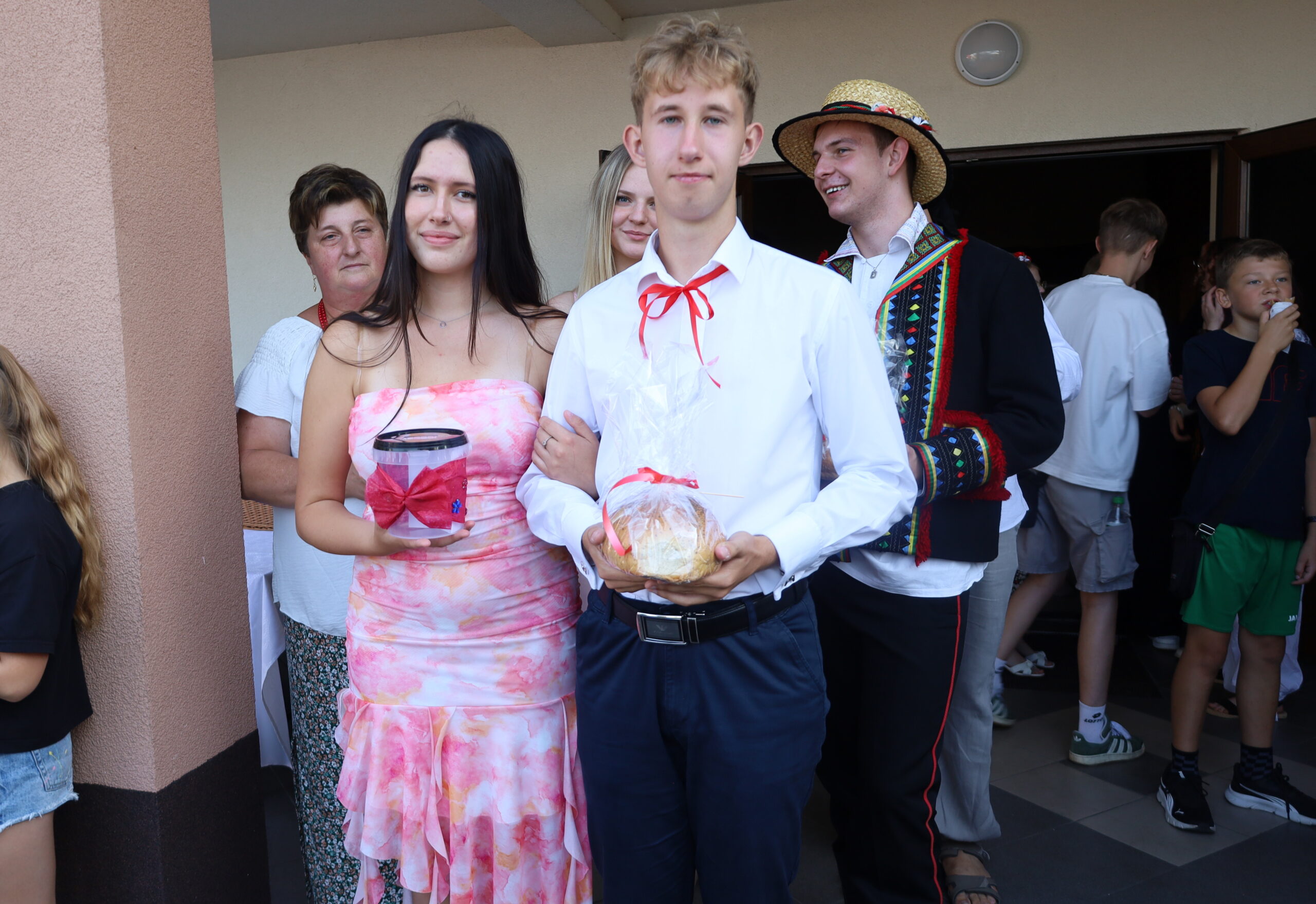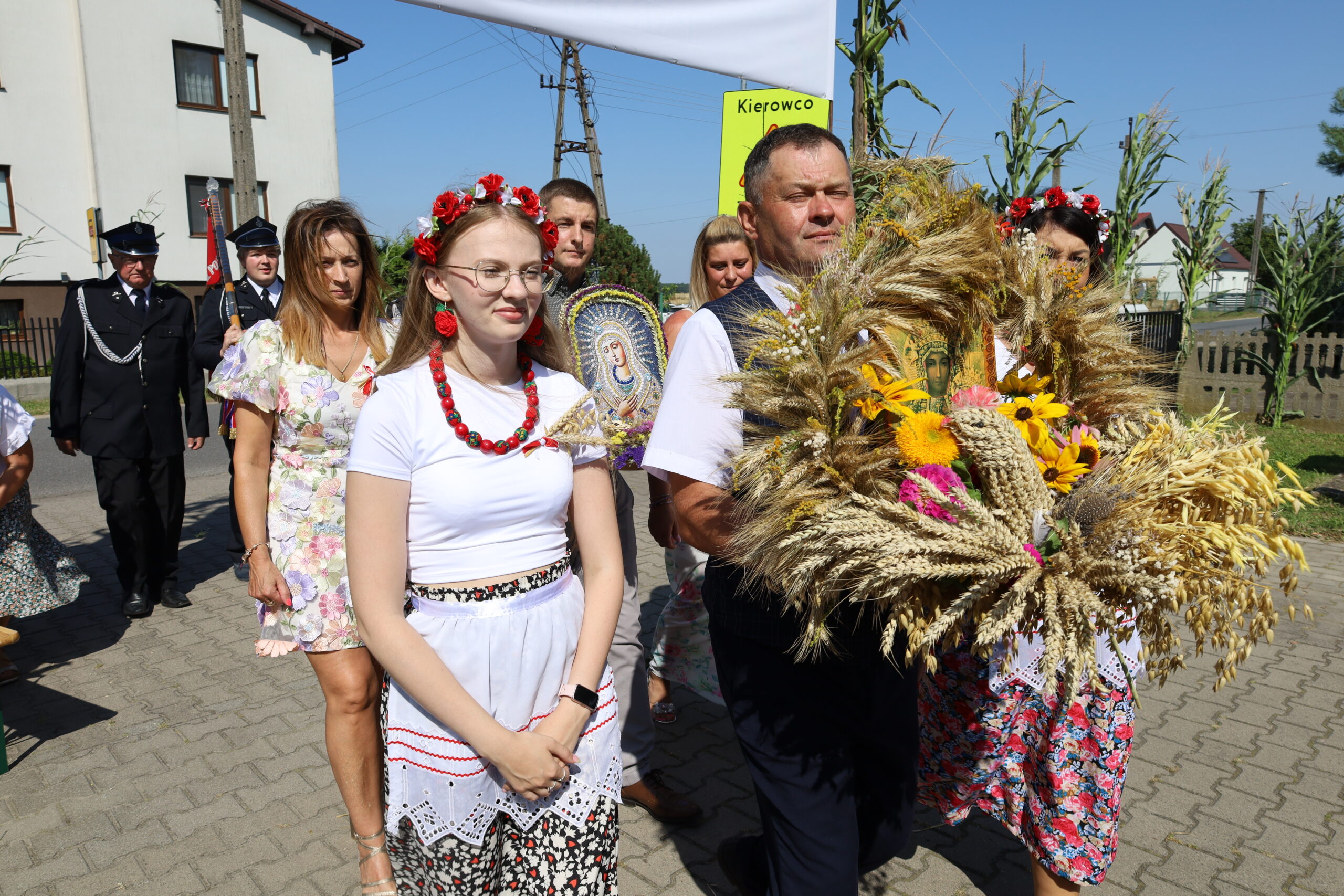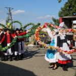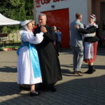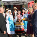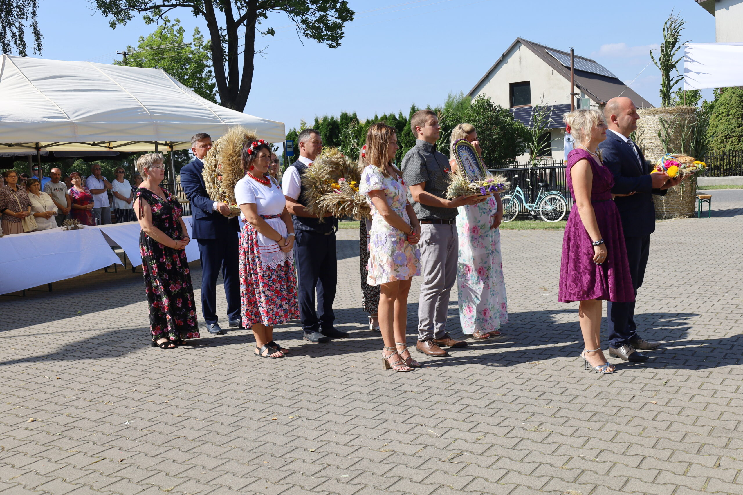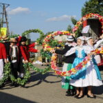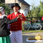 Uroczystość dożynkową prowadzili: Ada Białkowska w tradycyjnym stroju biskupiańskim oraz Krzysztof Popłonek w stroju raszkowskim.