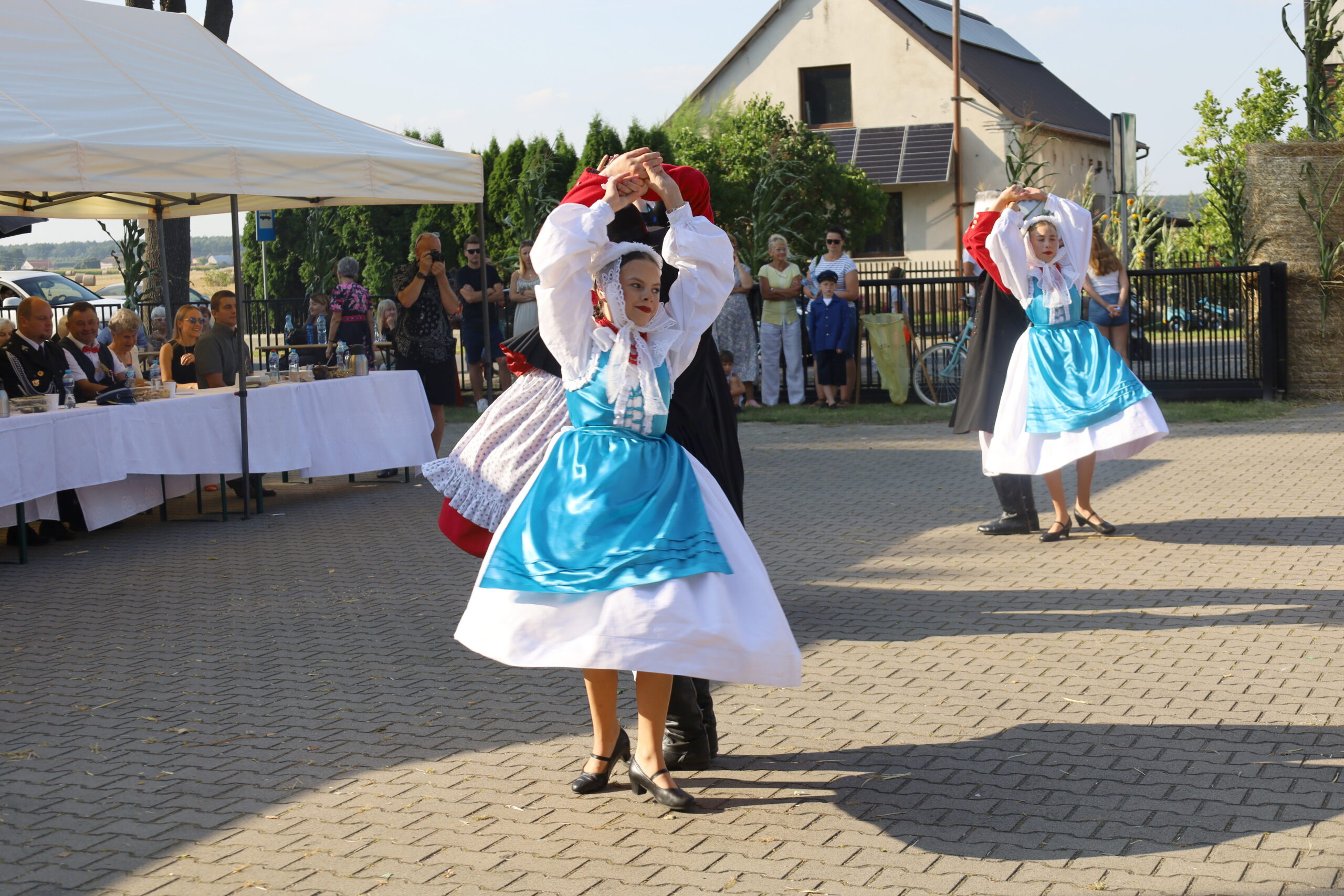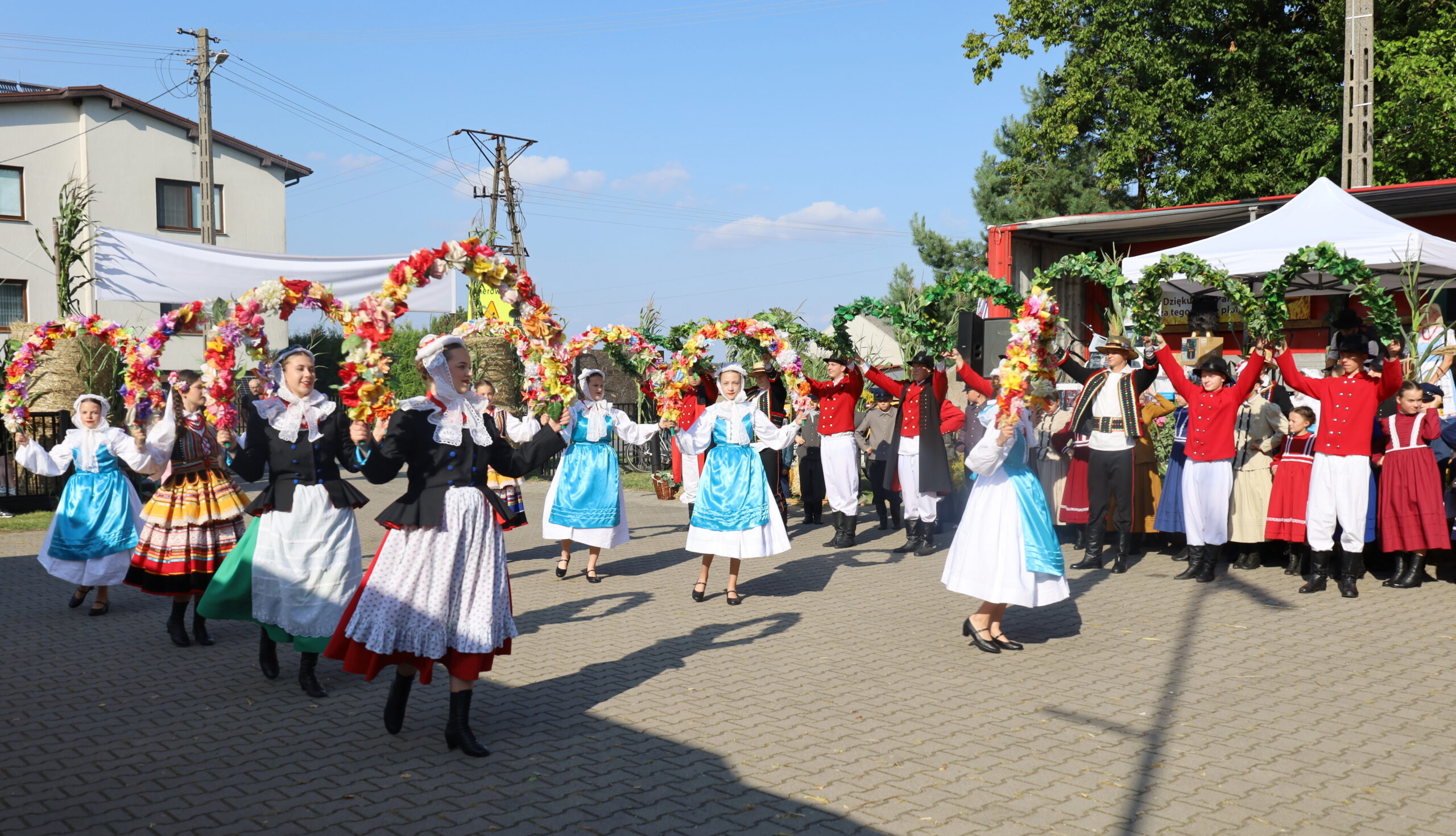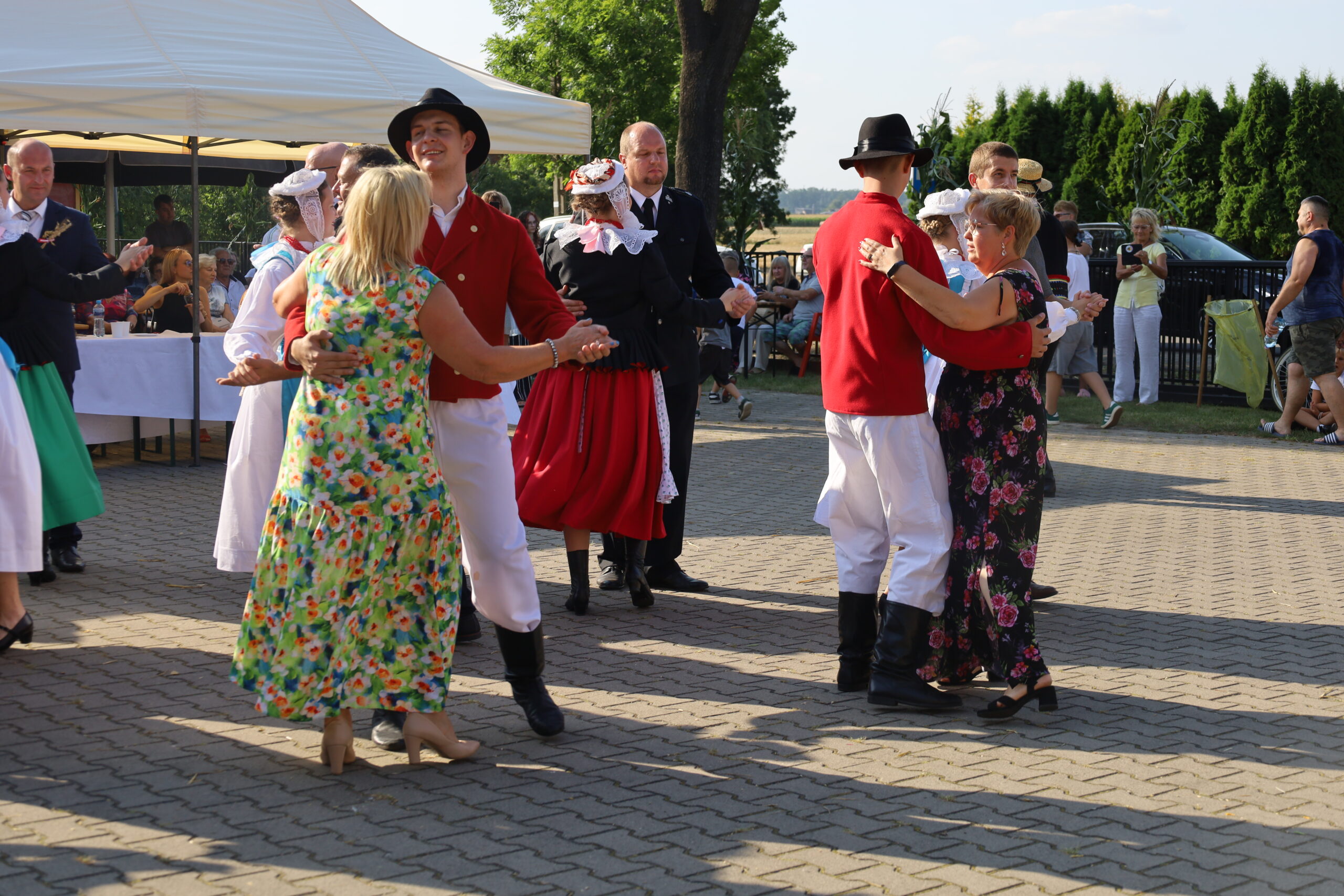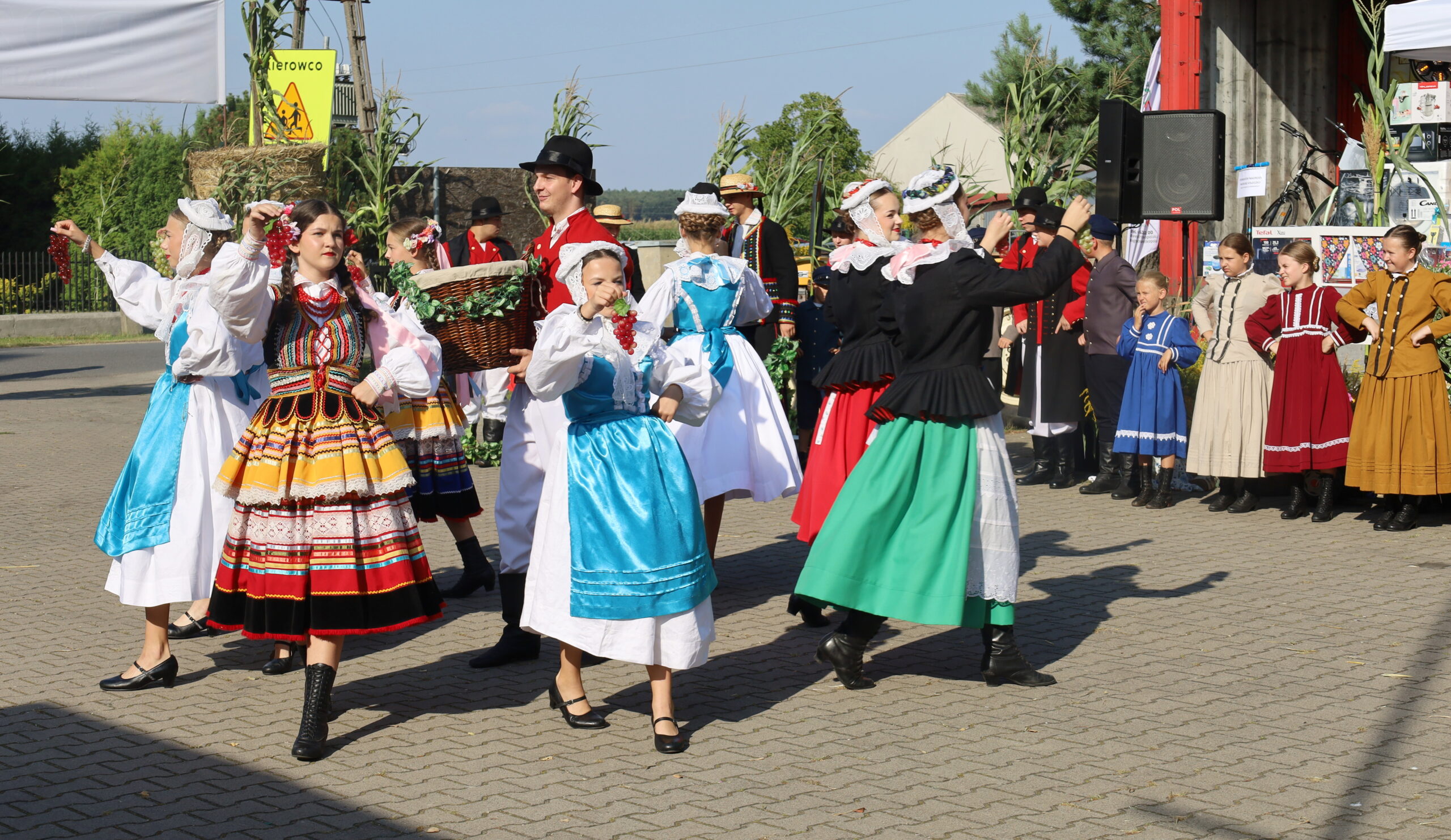 Barwny program artystyczny oraz tradycyjne obrzędy dożynkowe wykonał Zespół Tańca Ludowego „Swojacy”, który przybliżył uczestnikom piękno i symbolikę ludowych zwyczajów związanych z zakończeniem żniw. W programie znalazły się tańce szamotulskie oraz lubelskie, a także występy dzieci, które zaprezentowały zabawy z okolic Raszkowa, ukazując bogactwo lokalnego folkloru. Tańce zakończyły się oberkiem, do którego poproszono zaproszonych gości. Biesiadników obdarowano chlebem symbolizującym ciężką pracę rolników oraz odśpiewano przyśpiewki układane dla poszczególnych osób.