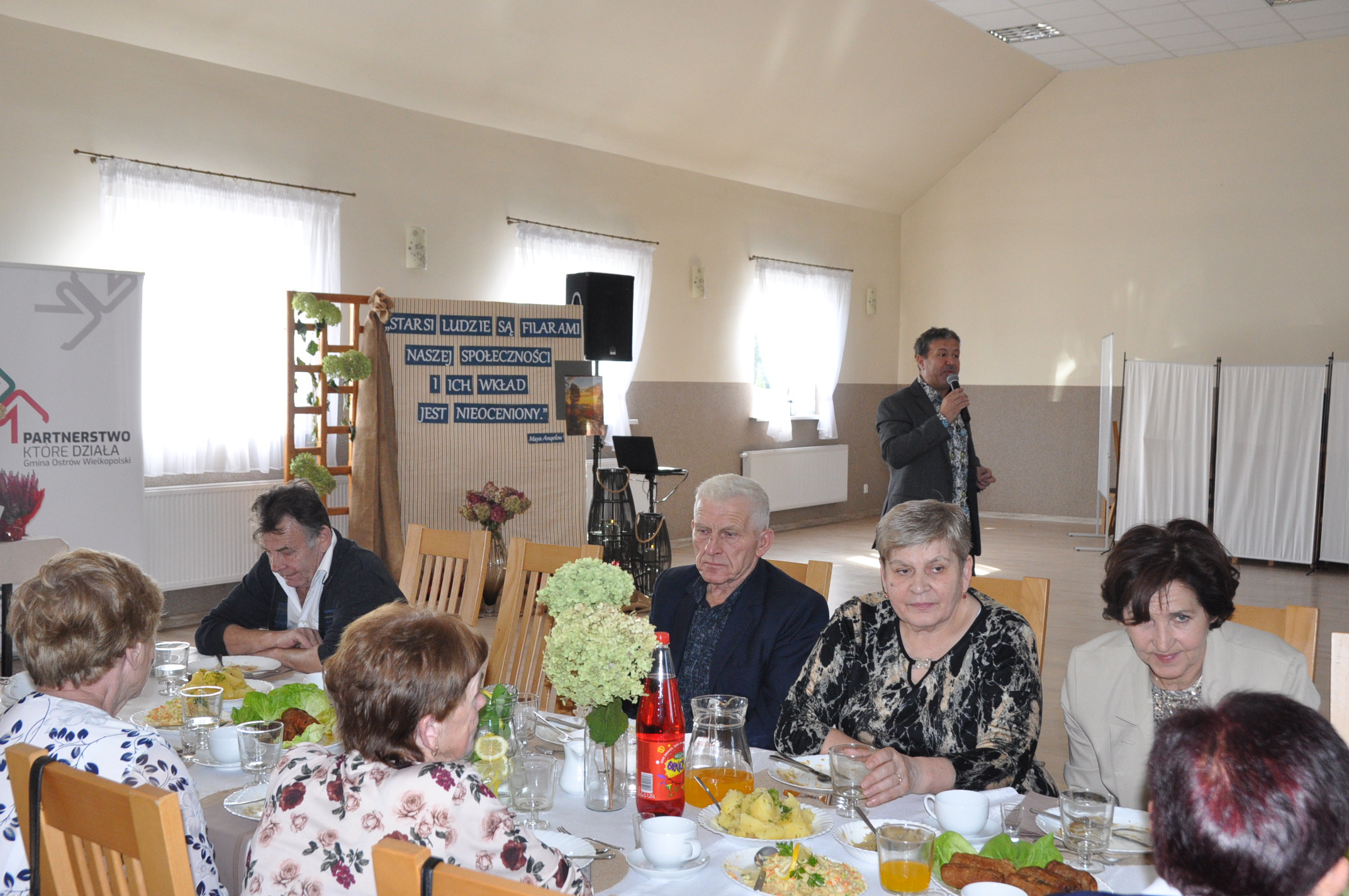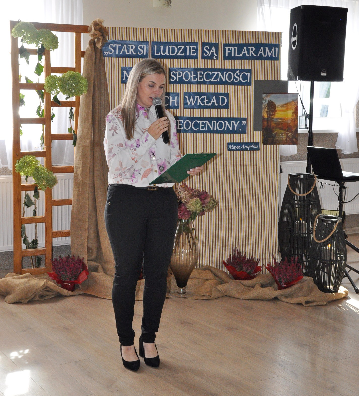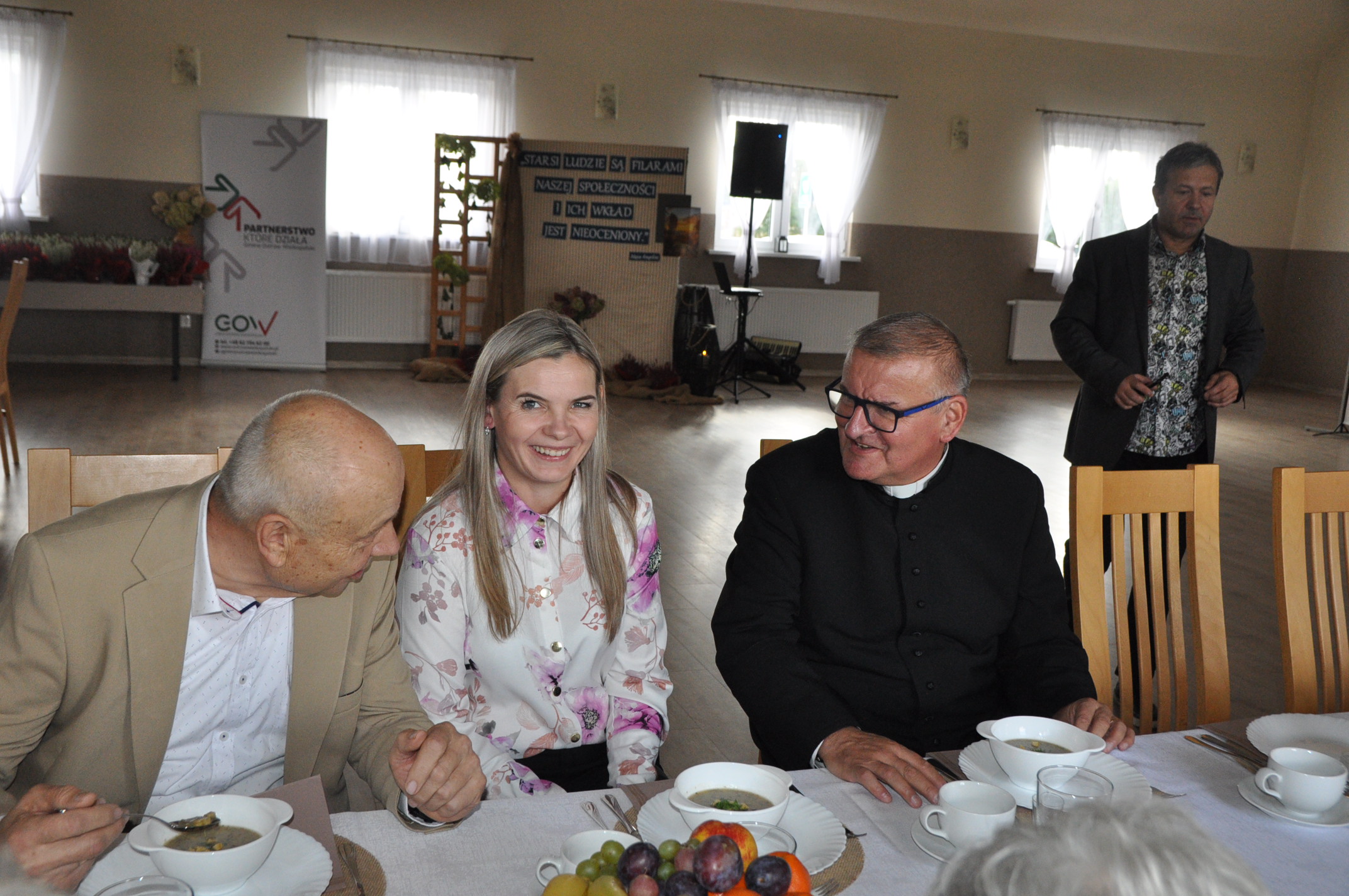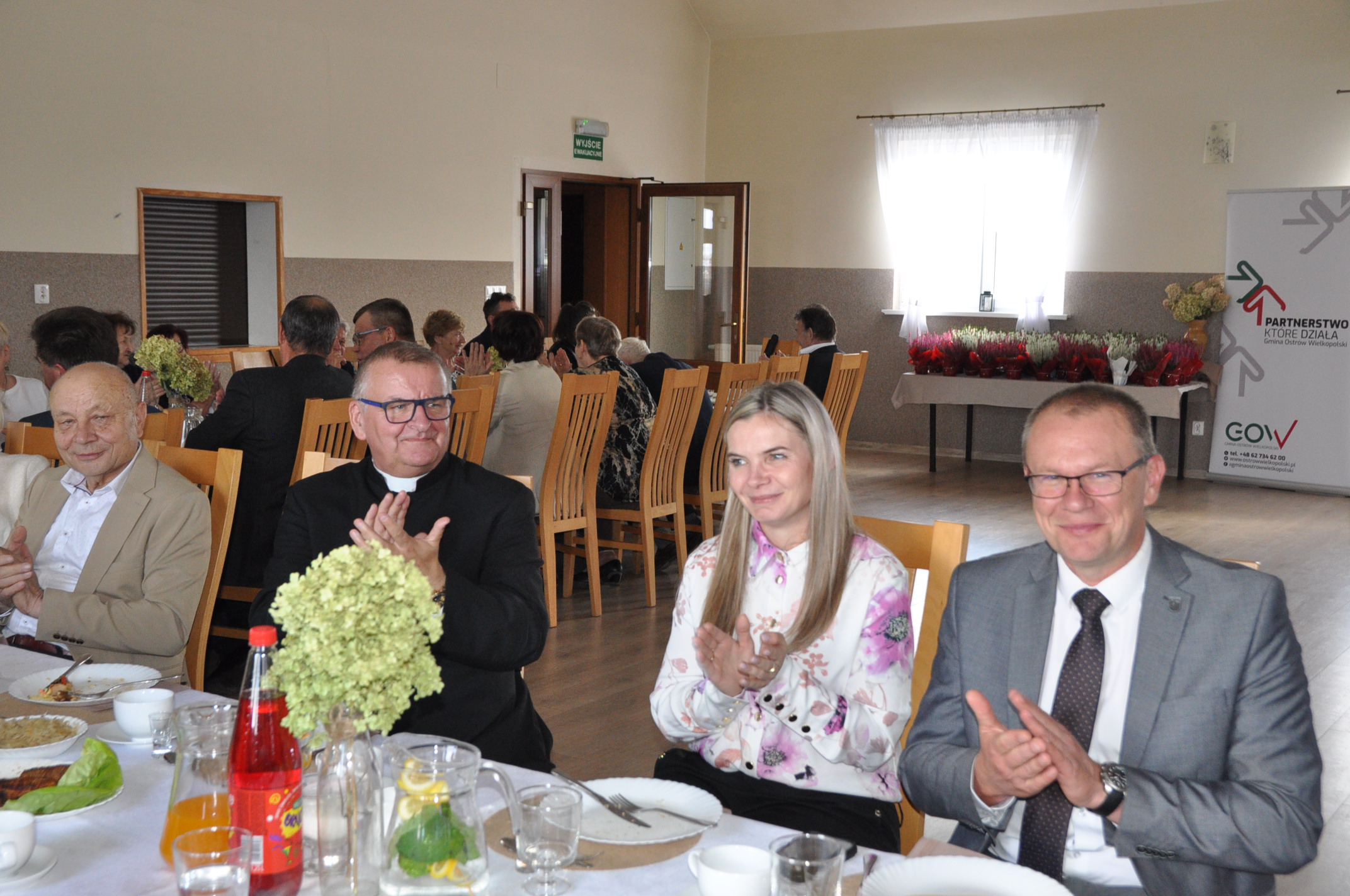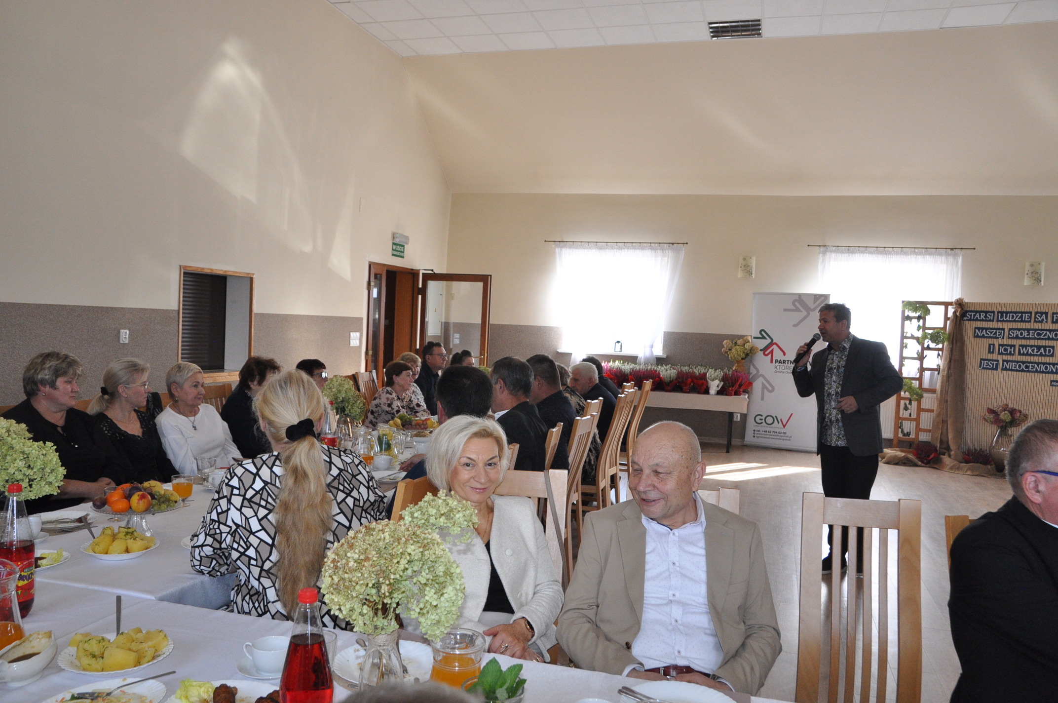 Uroczystość rozpoczęła się od powitania gości przez sołtyskę Sylwię Talagę, która podkreśliła, że to Seniorzy są filarami naszej społeczności i dzięki Nim możemy cieszyć się spokojem, stabilnością i tradycją co stanowi fundament naszego życia. W stronę Seniorów popłynęły podziękowania za każdy uśmiech, za każdą dobrą radę, za czas, który poświęcają swoim rodzinom, wnukom, sąsiadom i przyjaciołom i za obecność. Senioralną uroczystość w Cegłach swoją obecnością zaszczycili Dariusz Pryczak, Wójt Gminy Ostrów Wielkopolski, oraz ksiądz proboszcz Marek Czekaj, którzy również złożyli seniorom serdeczne życzenia. Po powitaniu nadszedł czas na część artystyczną. Na scenie wystąpił Waldemar Skowroński oraz orkiestra Dąbrowscy, którzy porwali wszystkich nie tylko do śpiewu, ale i do tańca. Dla wszystkich gości przygotowano smaczny poczęstunek. Ważnym momentem senioralnego spotkania było uroczyste podanie tortu. Następnie wszyscy uczestnicy z entuzjazmem odśpiewali tradycyjne „Sto lat”. Rozmowom, żartom i wspólnym tańcom nie było końca. Na twarzach seniorów gościł uśmiech i widoczna radość z możliwości spotkania i wspólnego świętowania. Na zakończenie senioralnego spotkania każdy z uczestników otrzymał wyjątkowy upominek, doniczkę z wrzosem, symbolem trwałości, spokoju i piękna jesieni. Uroczystość w Cegłach rozpoczęła obchody Dnia Seniora w Gminie Ostrów Wielkopolski i pokazała, że więzi międzypokoleniowe są w naszej społeczności ważne, a wspólne spotkania dają wiele radości i wzruszeń. Tak wspaniałe spotkanie było możliwe dzięki wsparciu Gminy Ostrów Wielkopolski, Gminnego Ośrodka Kultury w Wysocku Wielkim i anonimowym darczyńcom oraz współpracy Sołtysa z Radą Sołecką i Kołem Gospodyń Wiejskich w Cegłach.