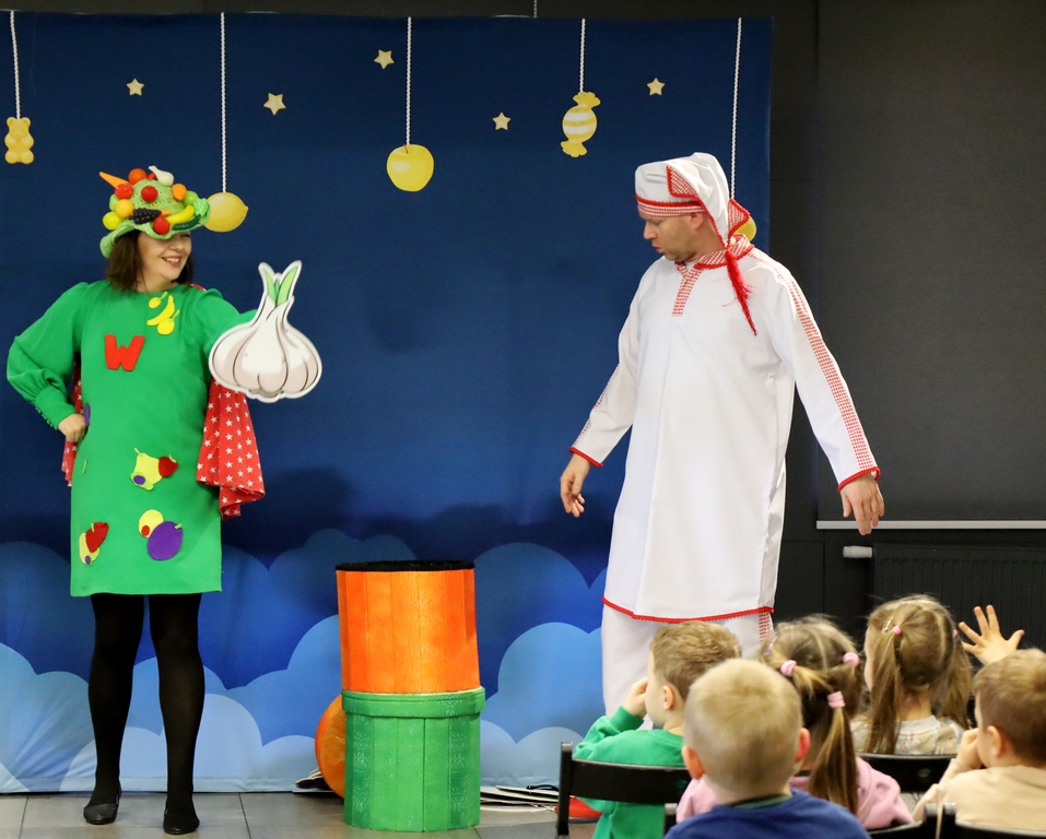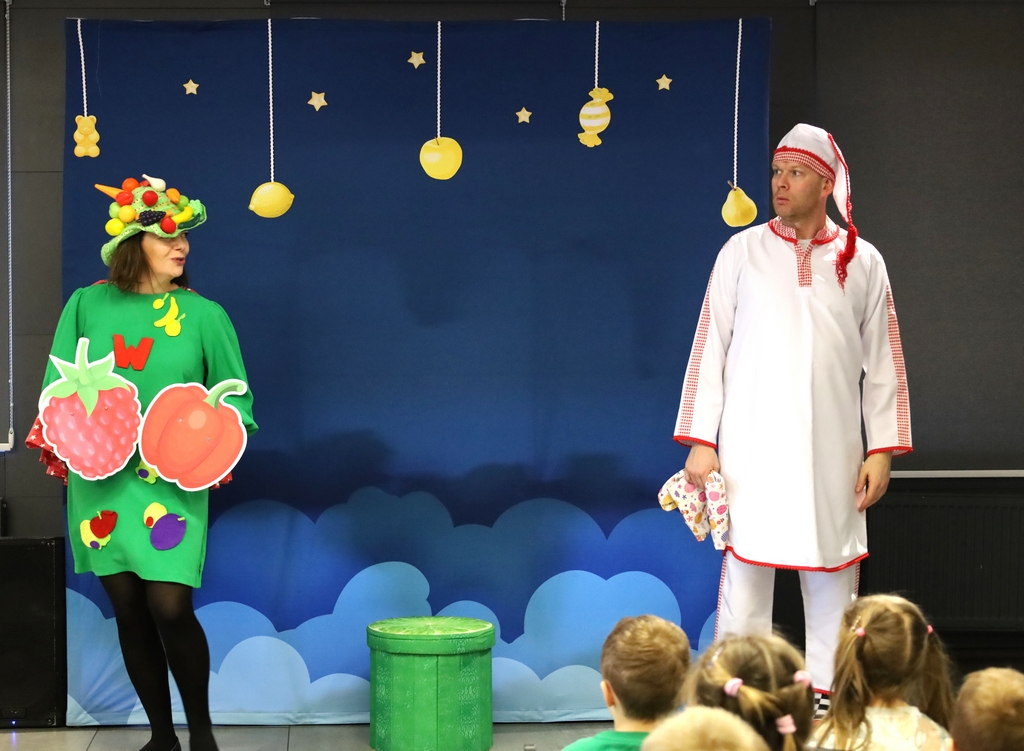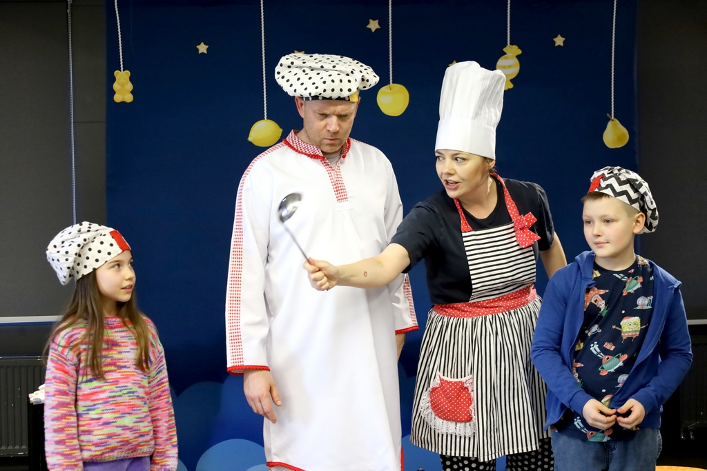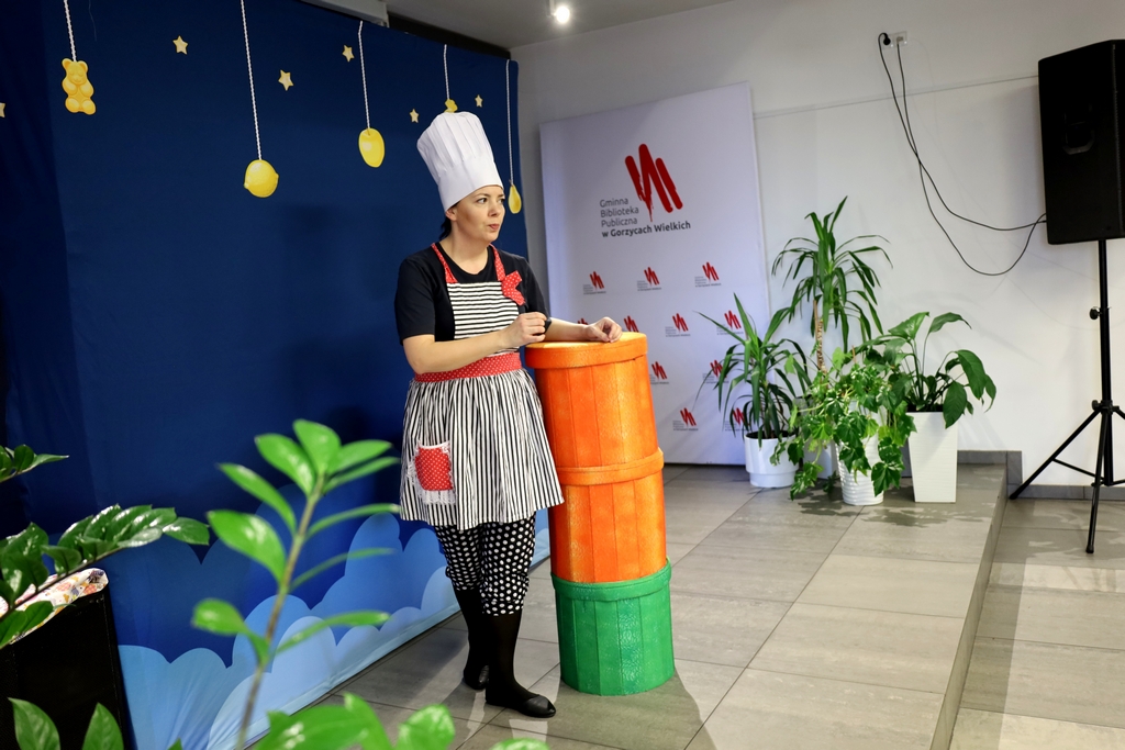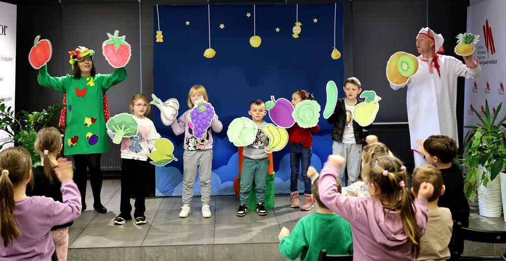 W gorzyckiej książnicy dzieci obejrzały spektakl „Bajka do zjedzenia”. To pełna humoru i niespodzianek opowieść, w której historia nabiera smaków. Mali odbiorcy dowiedzieli się, co warto jeść, a czego się wystrzegać. Pod szatą dowcipnej fabuły ukryto wiele ważnych zasad dotyczących prawidłowego żywienia. Posiłkując się najnowszą piramidą żywienia w prosty i przyjemny sposób dzieci dowiedziały się, dlaczego cukier jest zły, czy podjadanie jest zdrowe, jakie moce mają warzywa i owoce i dlaczego tak ważny jest ruch. Akcja dzieje się we śnie. W pokoju śpiącego Kalorka dzieją się nadzwyczajne rzeczy. Pan Cukier kusi słodyczami, Superwitamina rozdaje witaminowe moce i zabiera dzieci na wojnę z Cukrem, kucharz gotuje jarzynową zupę, żongluje czapkami, dzwonkami i pytaniami, a Kulturka Fizyczna zaraża ruchem wszystkie super dzieci. Spektakl był bardzo zdrowy, lekkostrawny, pełen witamin i endorfin.