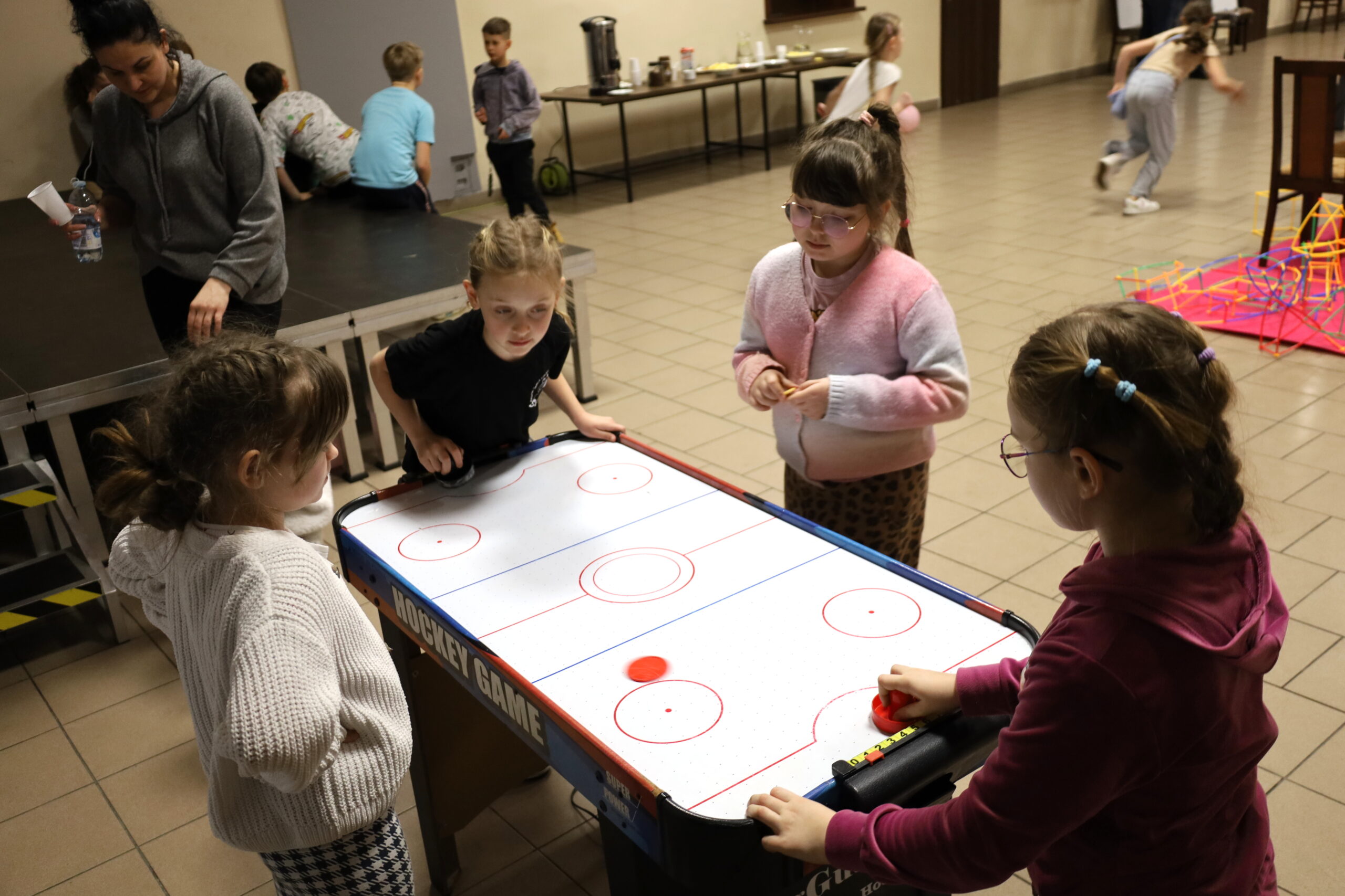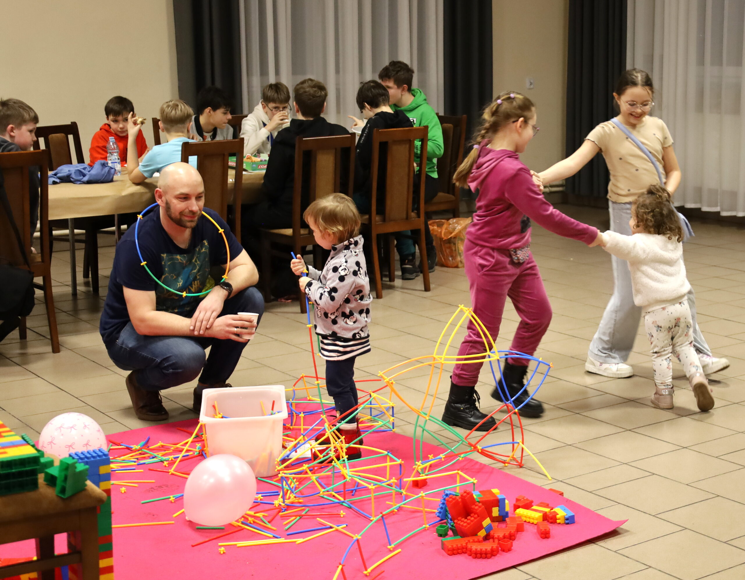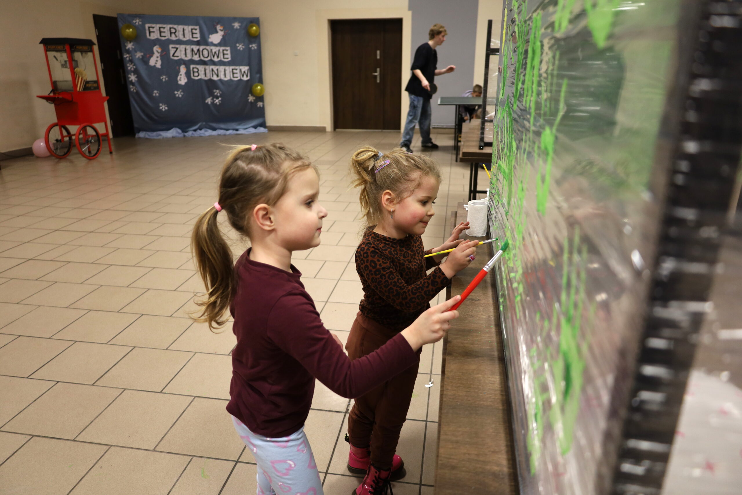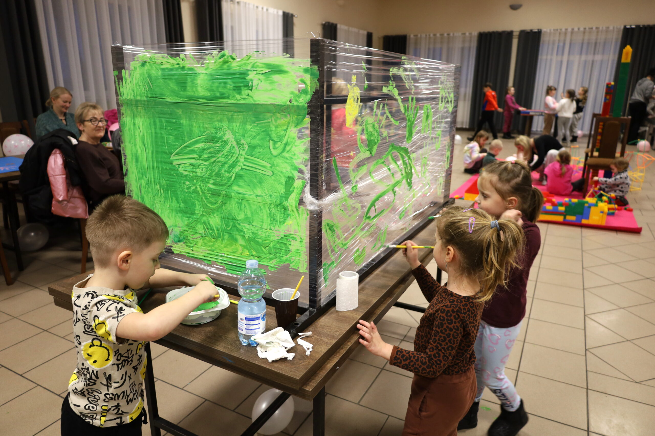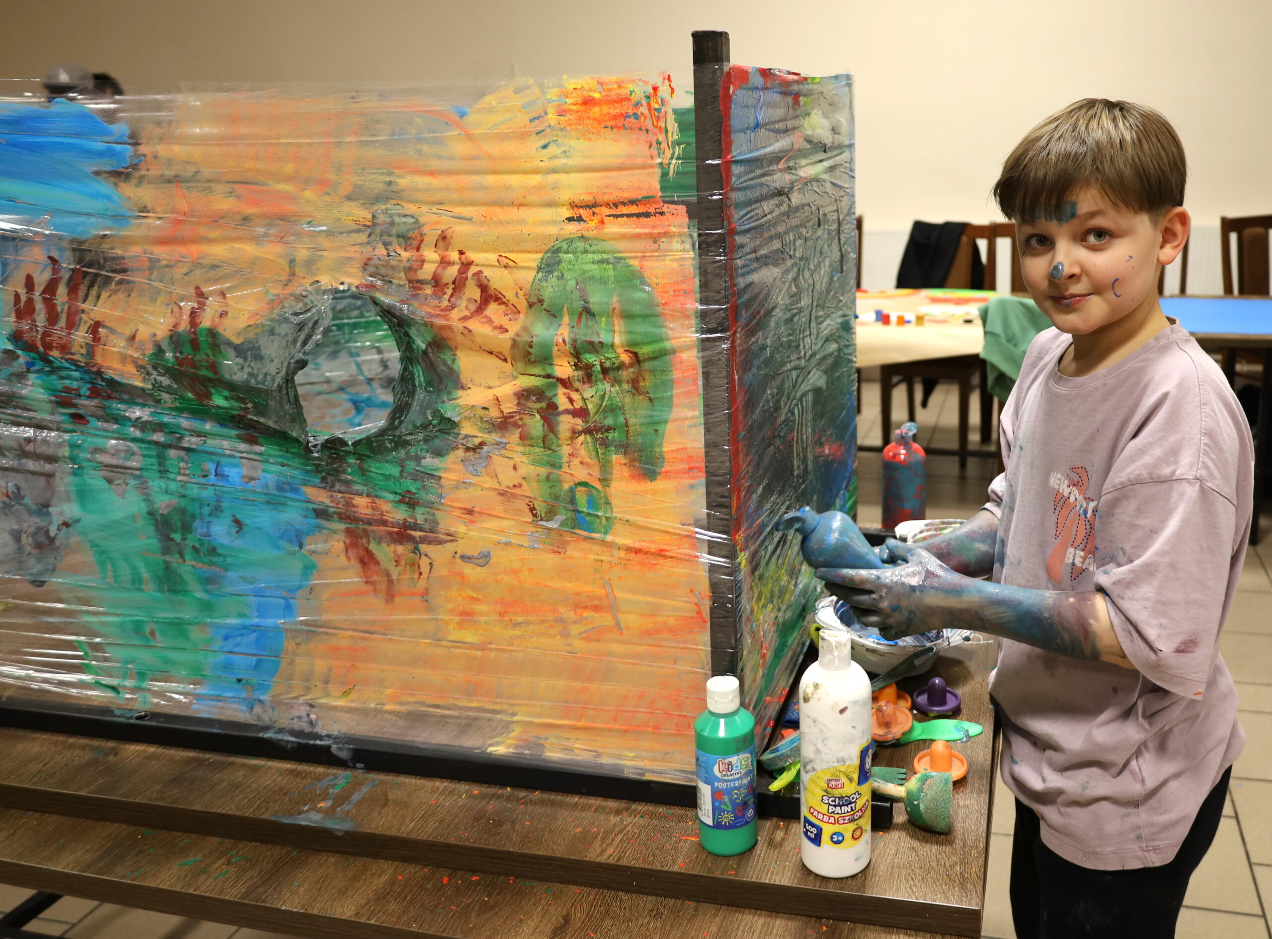 Na uczestników czekało mnóstwo atrakcji i różnorodnych zajęć. Organizatorzy zadbali o to, aby każdy dzień był wypełniony ciekawymi propozycjami. Dużym zainteresowaniem cieszyły się zabawy sensoryczne z masy solnej. Nie zabrakło również malowania farbami na folii strechowej. W programie znalazły się także sportowe emocje przy ping-pongu, cymbergaju i grach stolikowych. Wiele radości przyniosła zabawa ruchowa „taneczne posągi”. Dzieci z zaangażowaniem układały słomki konstrukcyjne oraz klocki, tworząc ciekawe budowle. Na wszystkich uczestników czekały również pieczone kiełbaski oraz popcorn.