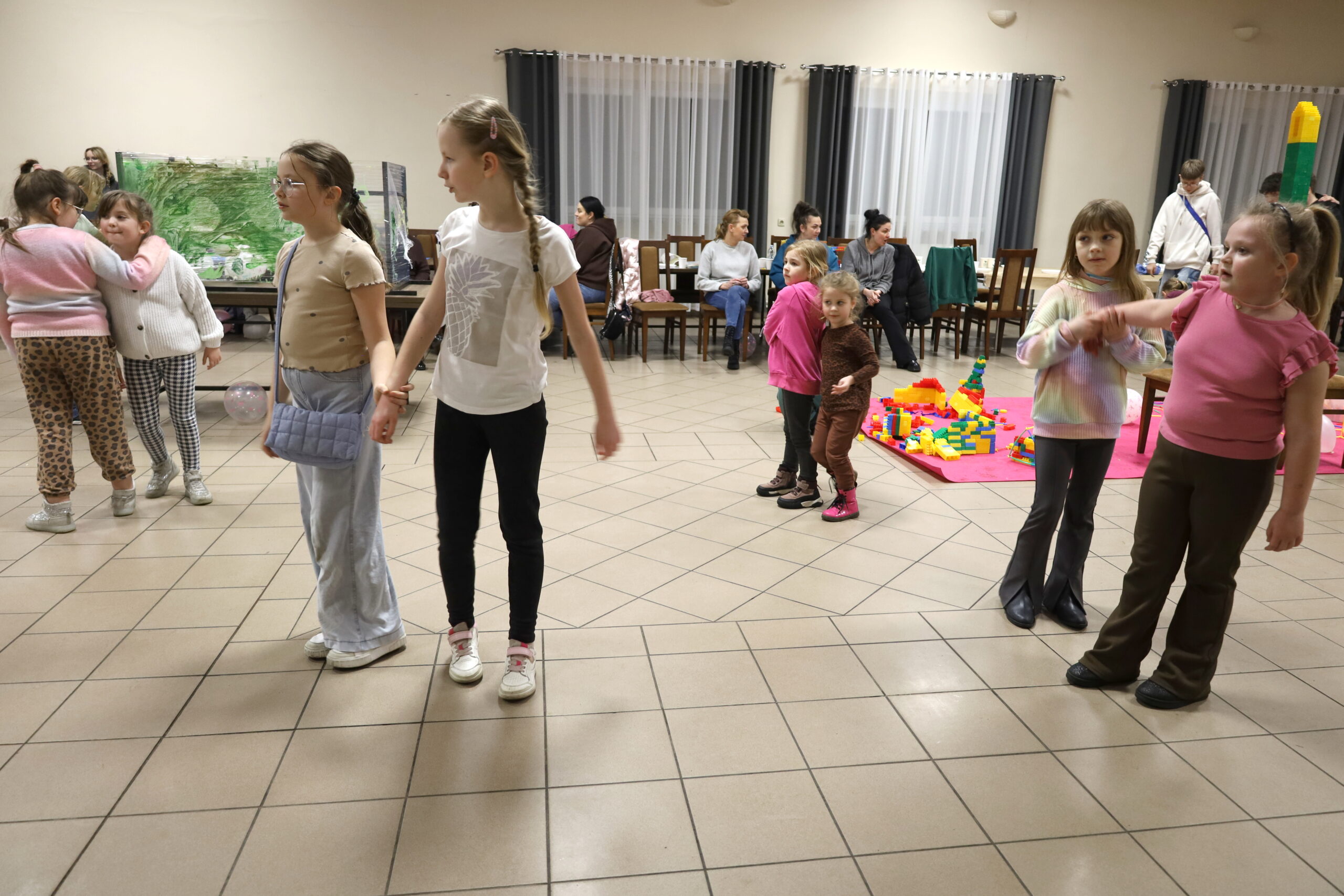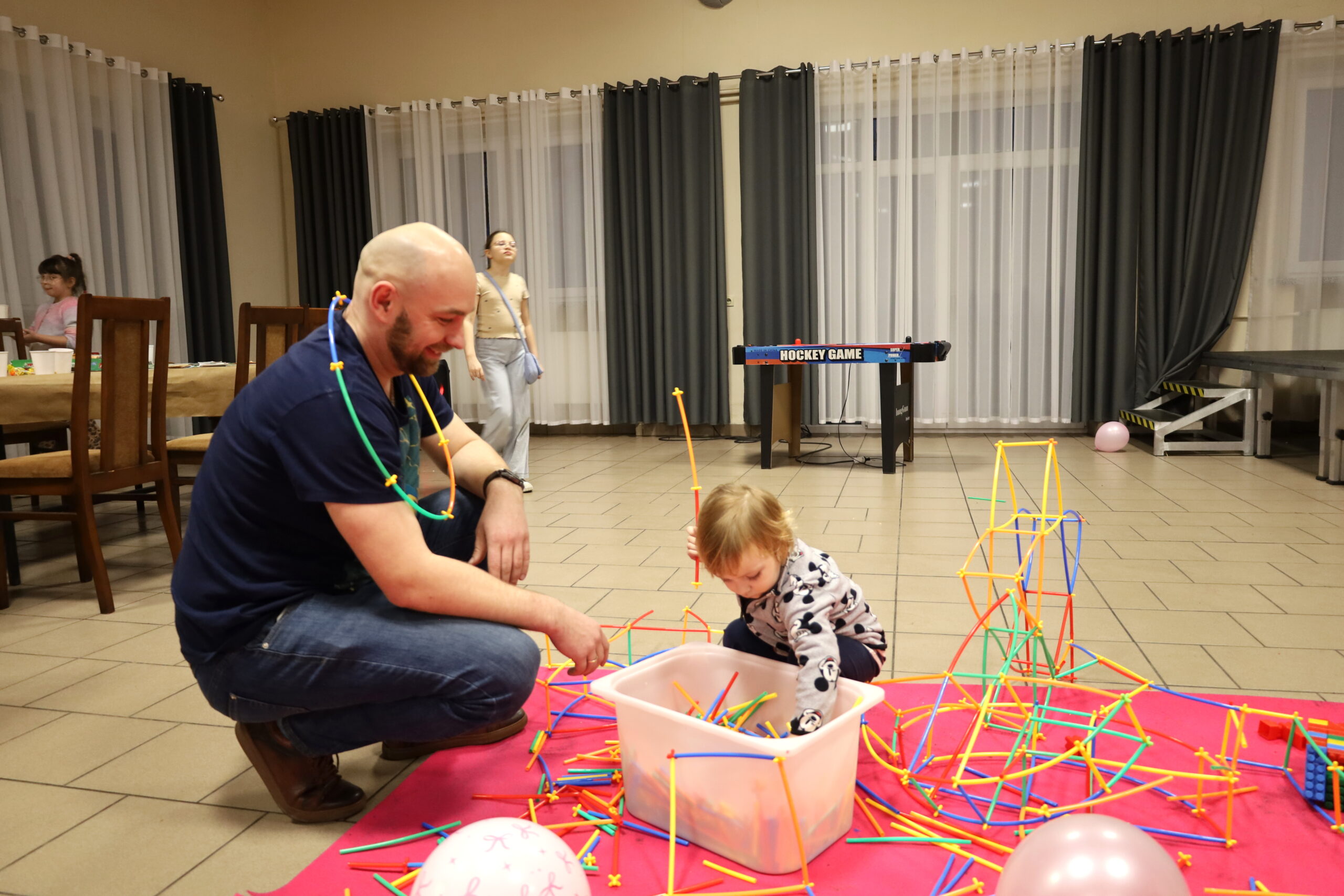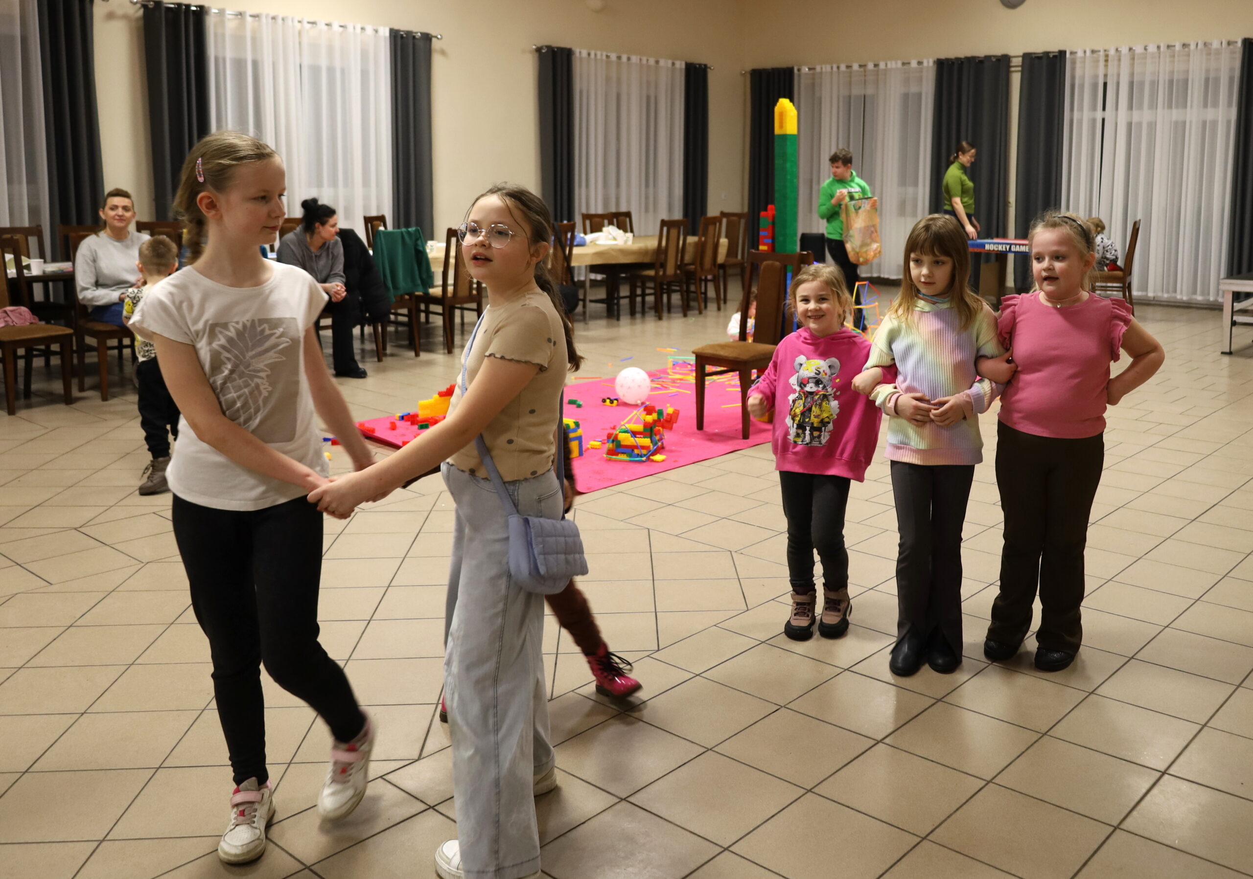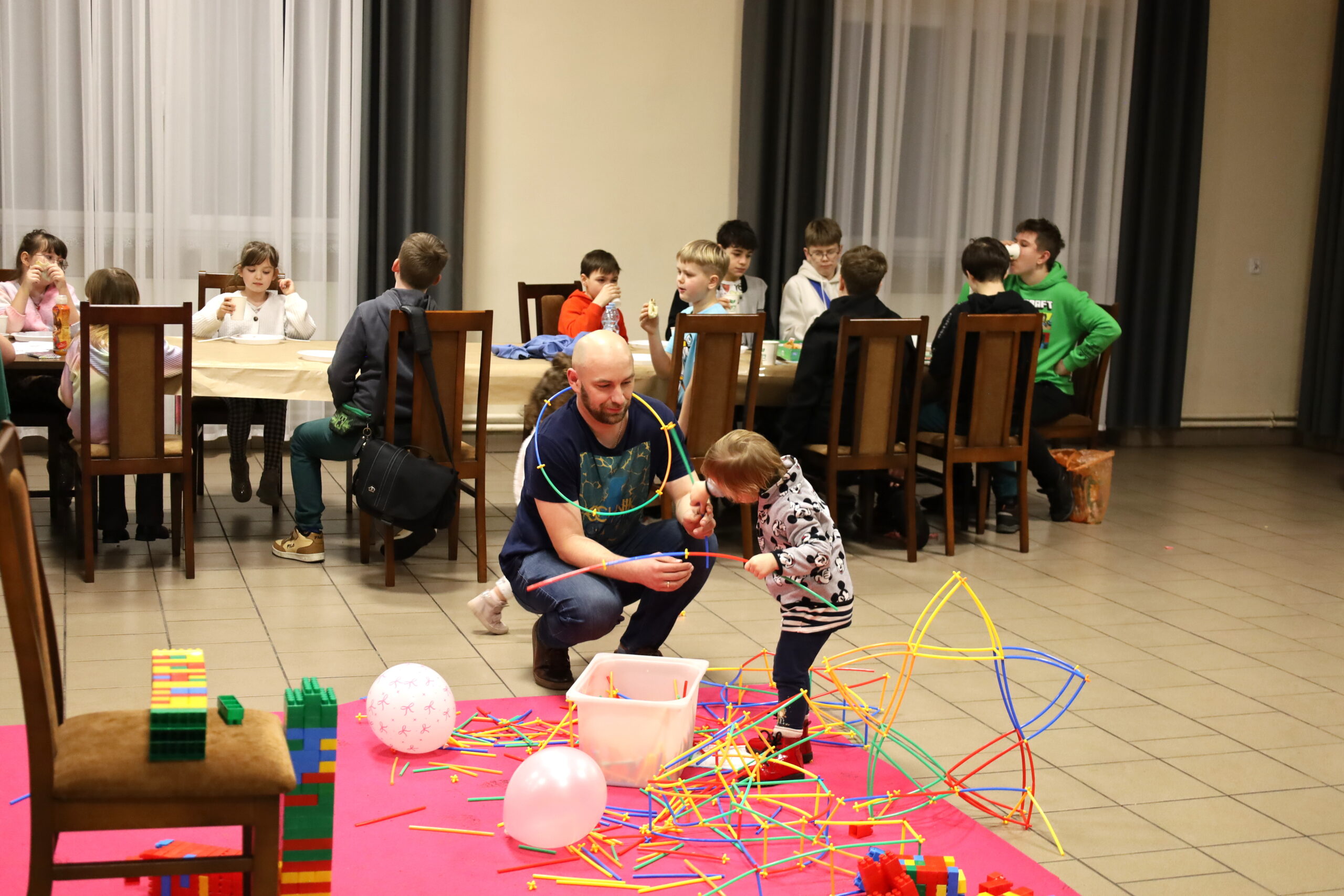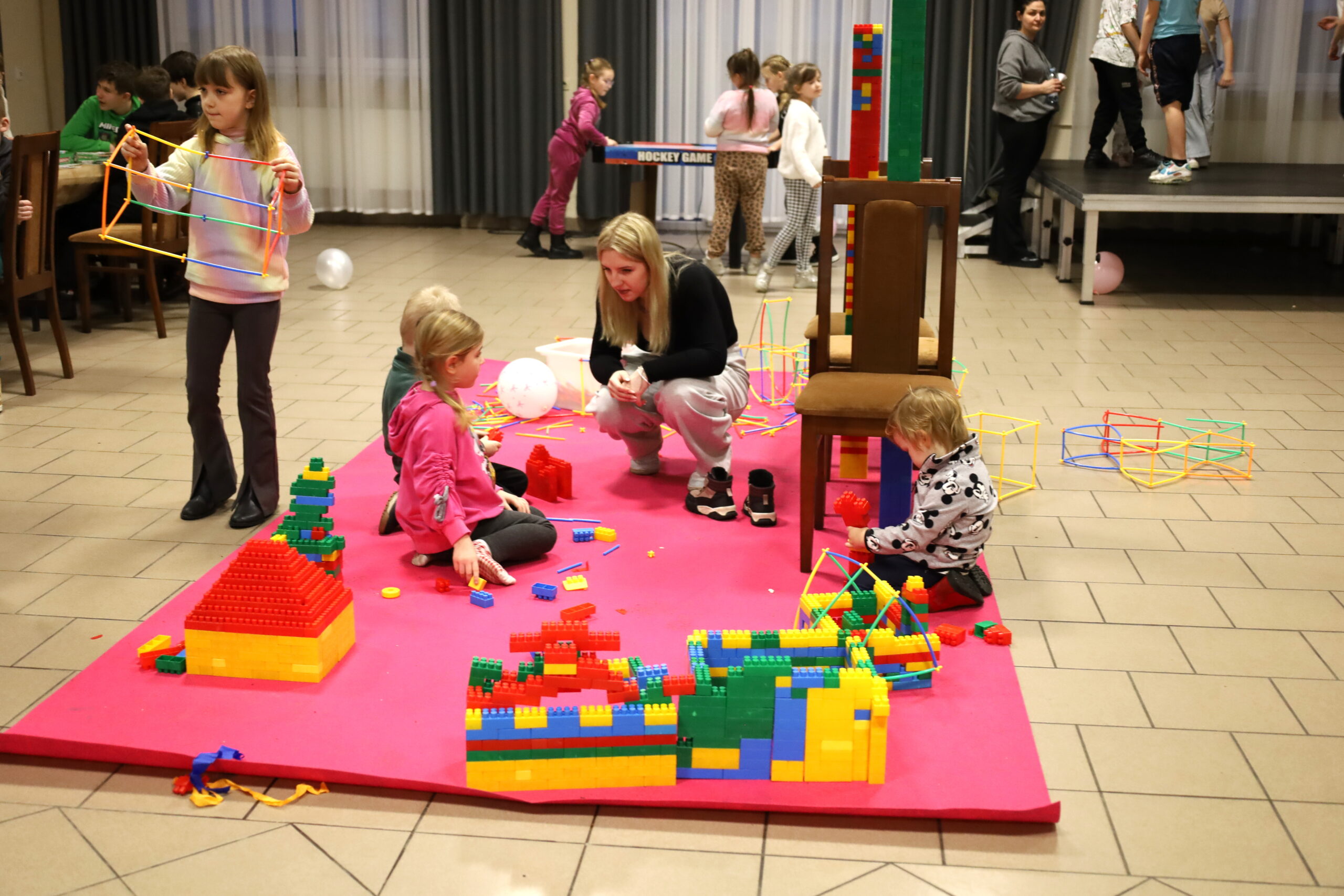 Na uczestników czekało mnóstwo atrakcji i różnorodnych zajęć. Organizatorzy zadbali o to, aby każdy dzień był wypełniony ciekawymi propozycjami. Dużym zainteresowaniem cieszyły się zabawy sensoryczne z masy solnej. Nie zabrakło również malowania farbami na folii strechowej. W programie znalazły się także sportowe emocje przy ping-pongu, cymbergaju i grach stolikowych. Wiele radości przyniosła zabawa ruchowa „taneczne posągi”. Dzieci z zaangażowaniem układały słomki konstrukcyjne oraz klocki, tworząc ciekawe budowle. Na wszystkich uczestników czekały również pieczone kiełbaski oraz popcorn.
