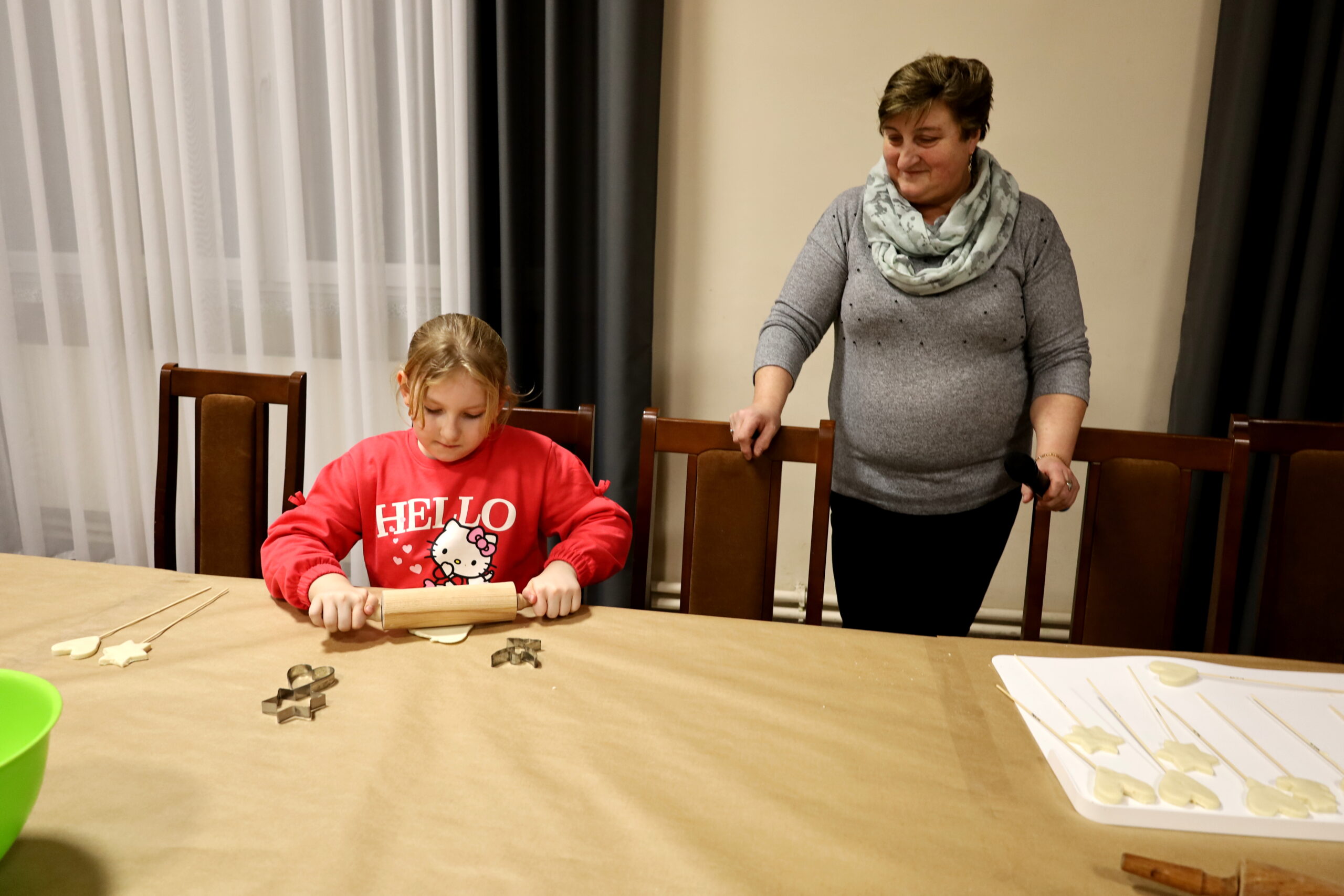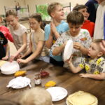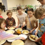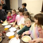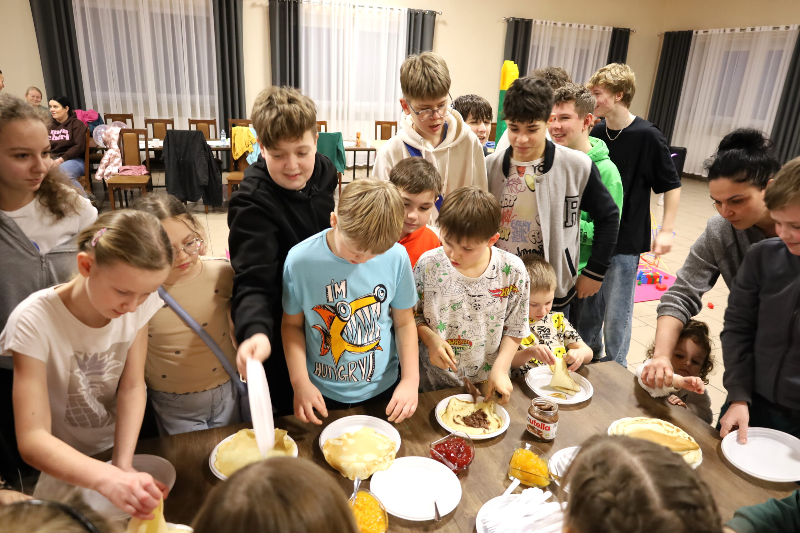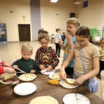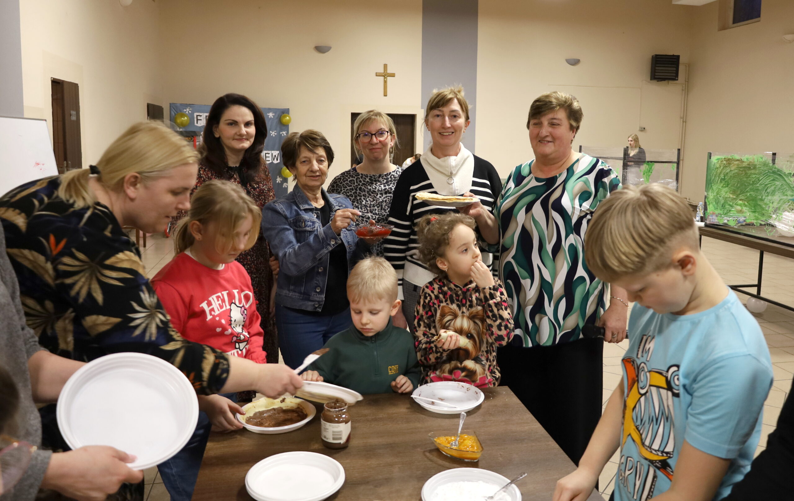 Panie z Koła Gospodyń Wiejskich chętnie zaangażowały się w organizację warsztatów kulinarnych. Na uczestników czekało ciepłe kakao oraz naleśniki z cukrem pudrem, konfiturą i nutellą.