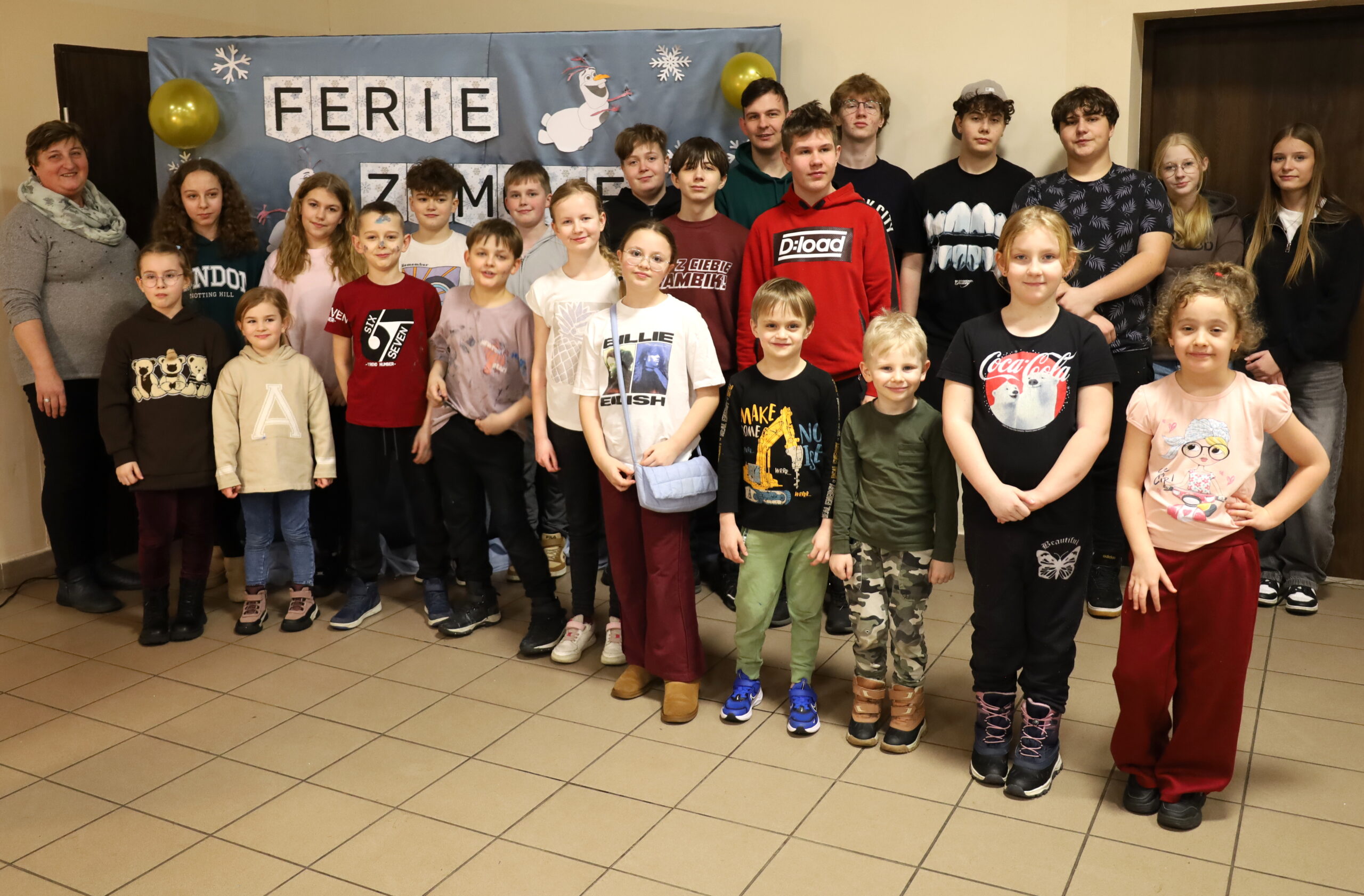 Na zakończenie nie zabrakło wspólnych pamiątkowych zdjęć, które będą pięknym wspomnieniem ferii. Były to dni pełne kreatywności i dobrej zabawy. Zajęcia były doskonałą okazją, by spędzić czas w gronie rówieśników i aktywnie odpocząć.