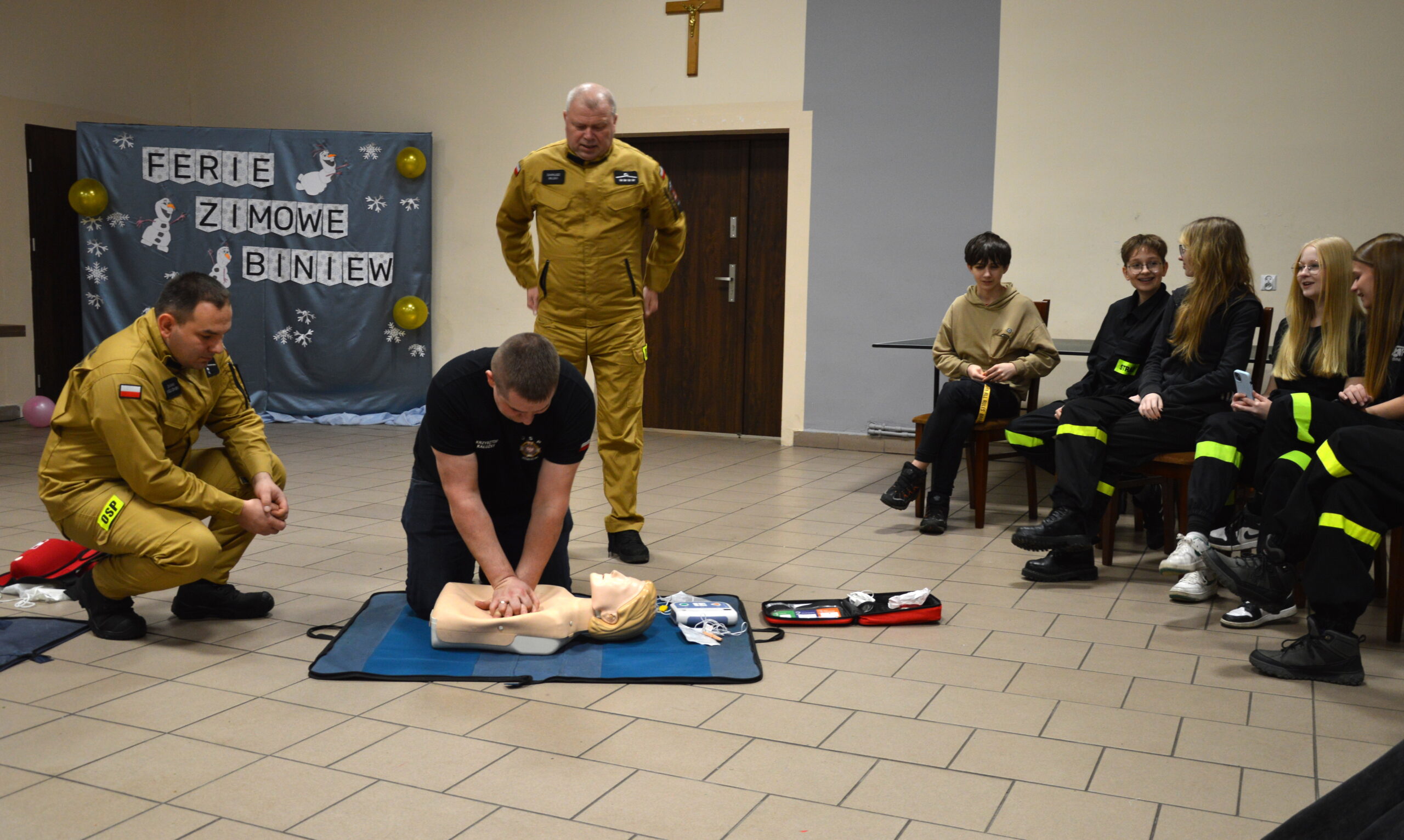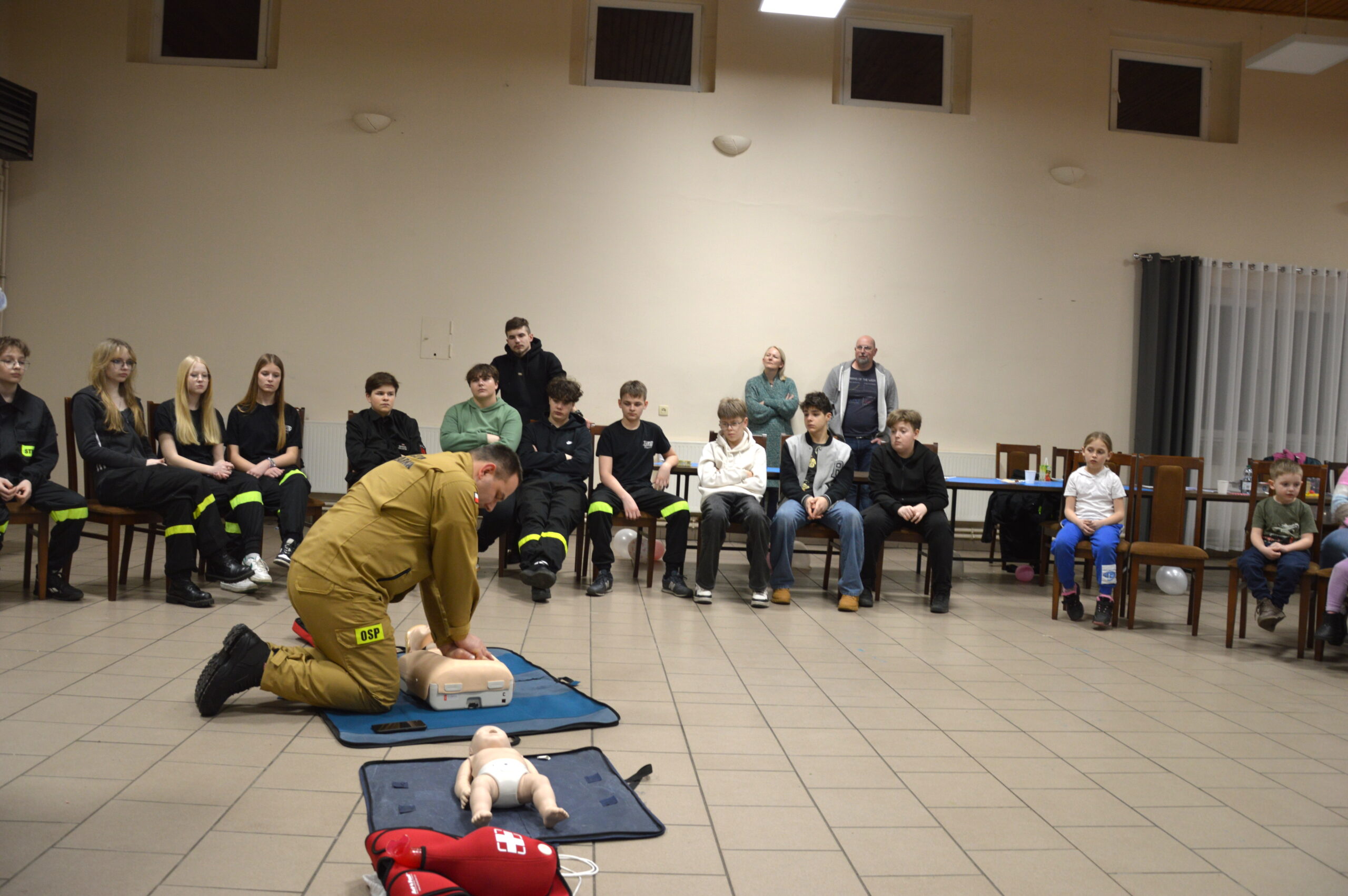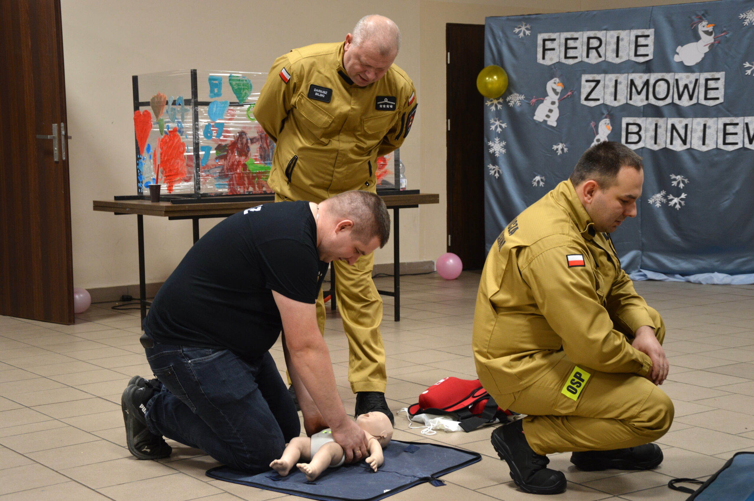 Miejscowa Ochotnicza Straż Pożarna zorganizowała pokaz pierwszej pomocy przedmedycznej. Uczestnicy warsztatów, w tym również druhowie z Młodzieżowej Drużyny Pożarniczej w Biniewie dowiedzieli się jak prawidłowo wezwać pomoc oraz jak skutecznie reagować w sytuacjach kryzysowych. Omówiono resuscytację krążeniowo-oddechową z użyciem defibrylatora AED na osobie dorosłej i dziecku oraz zadławienia. Po części teoretycznej uczestnicy mogli praktycznie przećwiczyć udzielanie pierwszej pomocy na fantomie. Kurs prowadzili druhowie z OSP Kraski: dh Dariusz Bilski oraz dh Damian Królikowski.