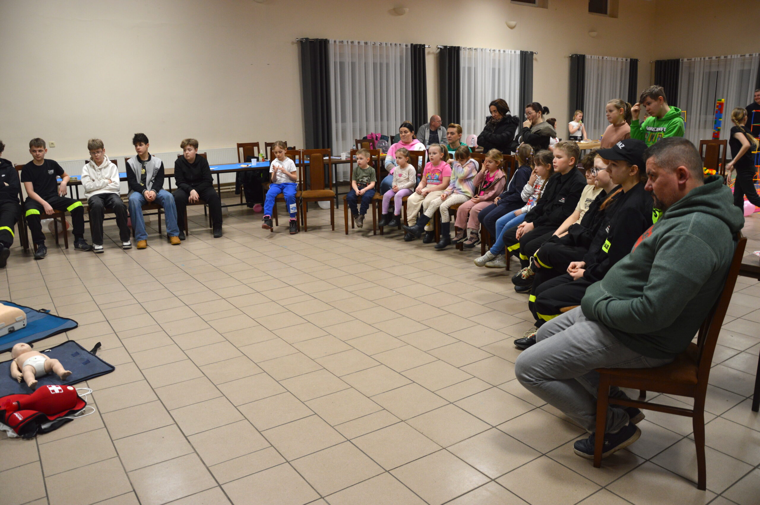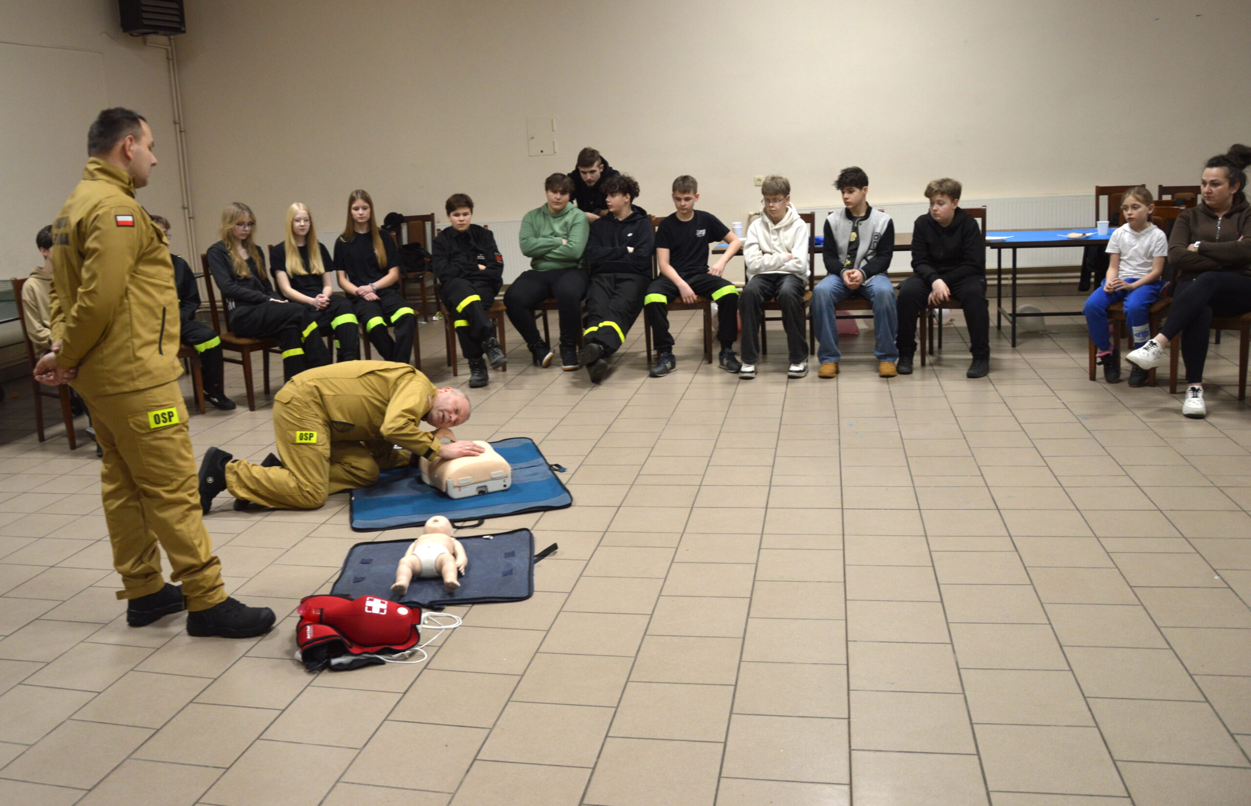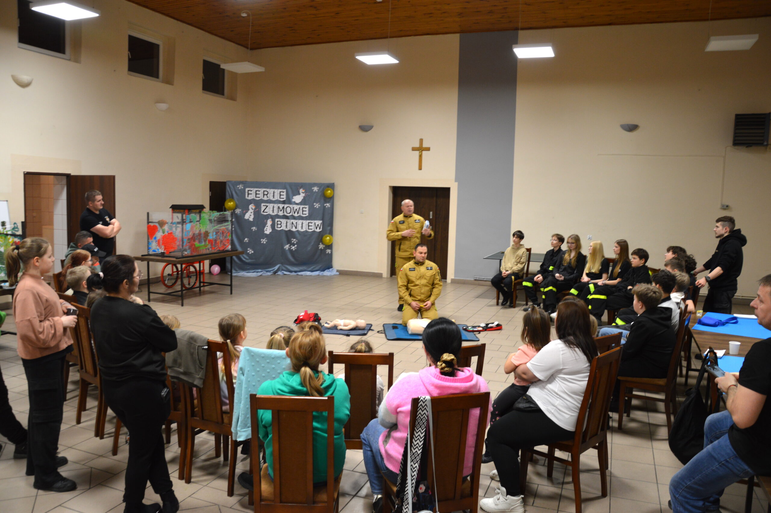 Miejscowa Ochotnicza Straż Pożarna zorganizowała pokaz pierwszej pomocy przedmedycznej. Uczestnicy warsztatów, w tym również druhowie z Młodzieżowej Drużyny Pożarniczej w Biniewie dowiedzieli się jak prawidłowo wezwać pomoc oraz jak skutecznie reagować w sytuacjach kryzysowych. Omówiono resuscytację krążeniowo-oddechową z użyciem defibrylatora AED na osobie dorosłej i dziecku oraz zadławienia. Po części teoretycznej uczestnicy mogli praktycznie przećwiczyć udzielanie pierwszej pomocy na fantomie. Kurs prowadzili druhowie z OSP Kraski: dh Dariusz Bilski oraz dh Damian Królikowski.