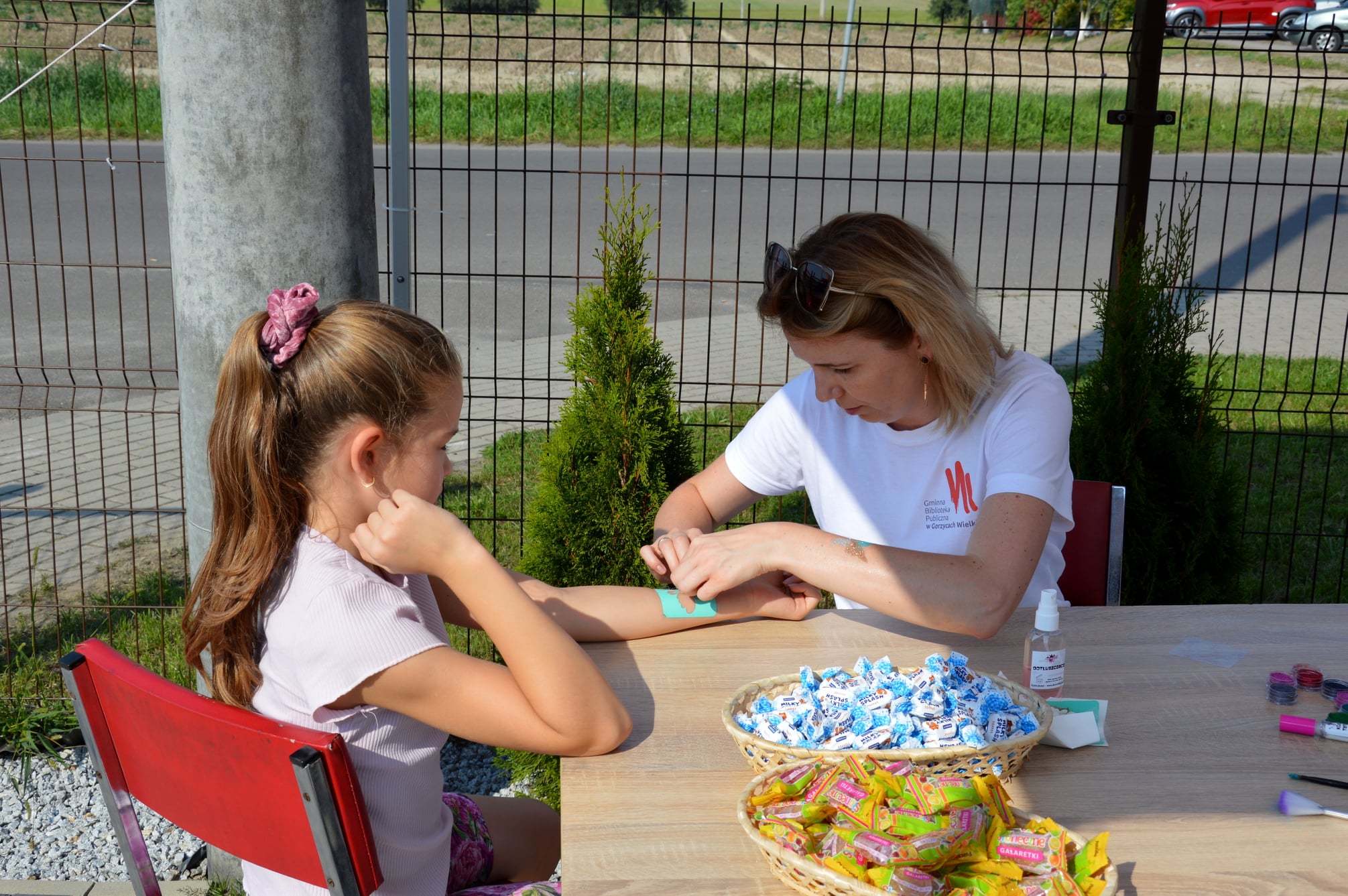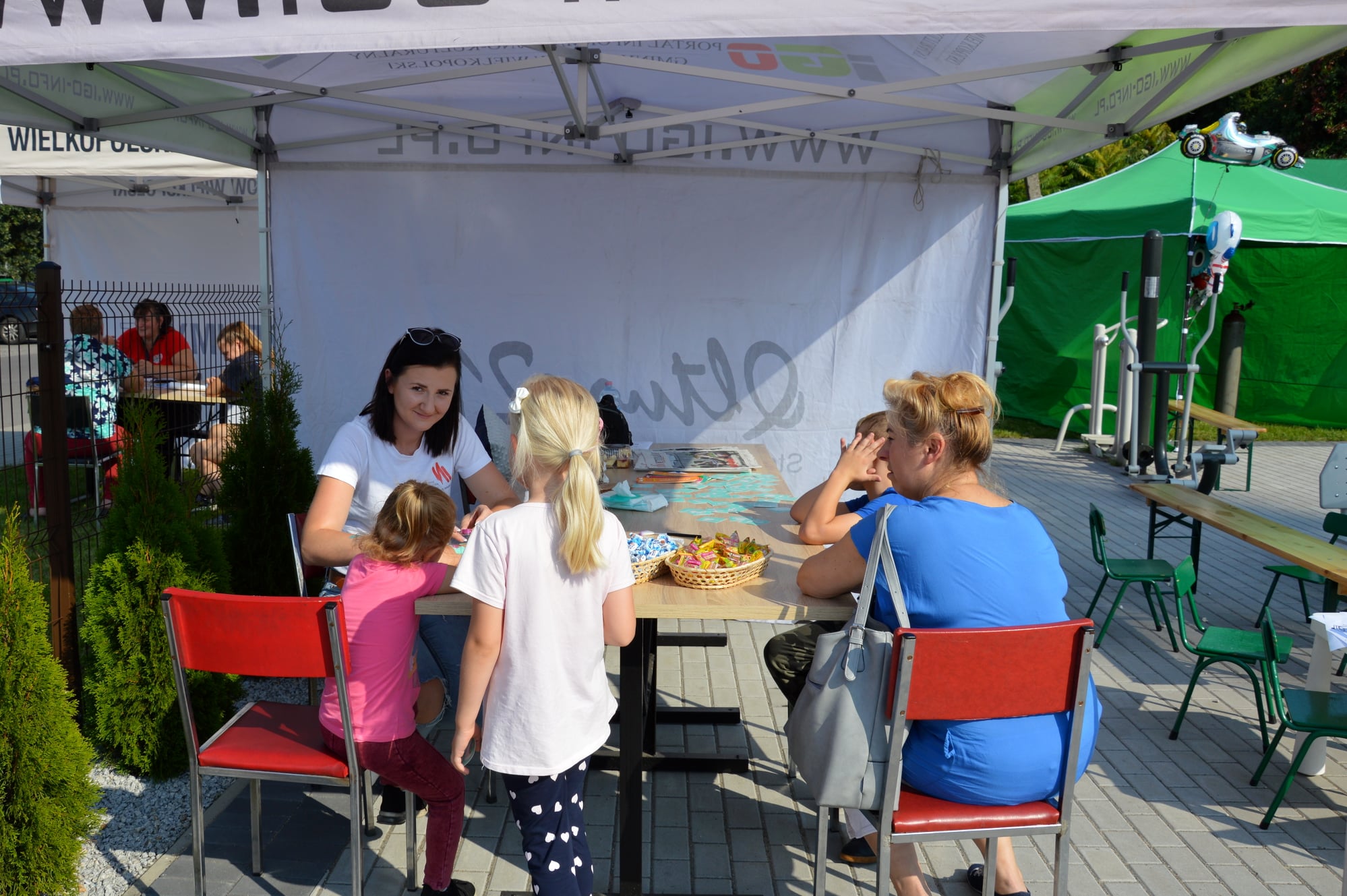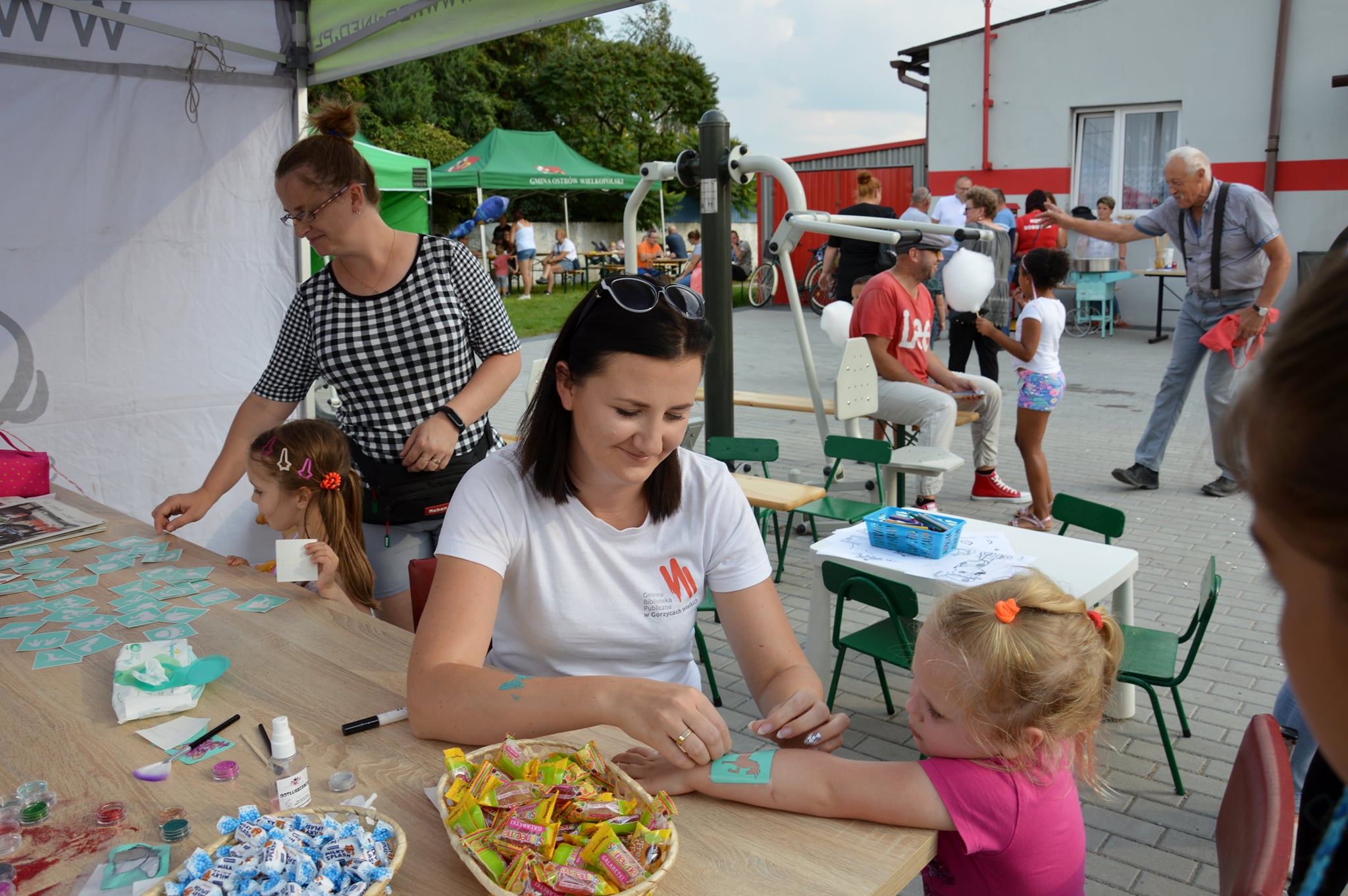 Wiele radości dzieciom sprawiła zabawa na zamkach dmuchanych. Czas najmłodszym umiliły zorganizowane zabawy i animacje. Biblioteka Publiczna również przygotowała stoisko, przy którym można było zrobić sobie brokatowy tatuaż. Na stoisku czekały kolorowanki oraz słodkie upominki.