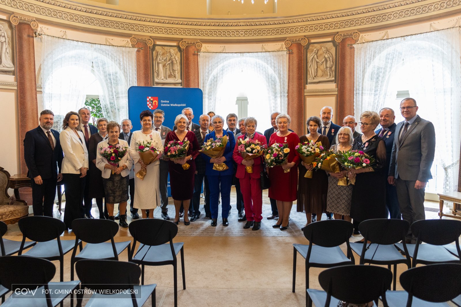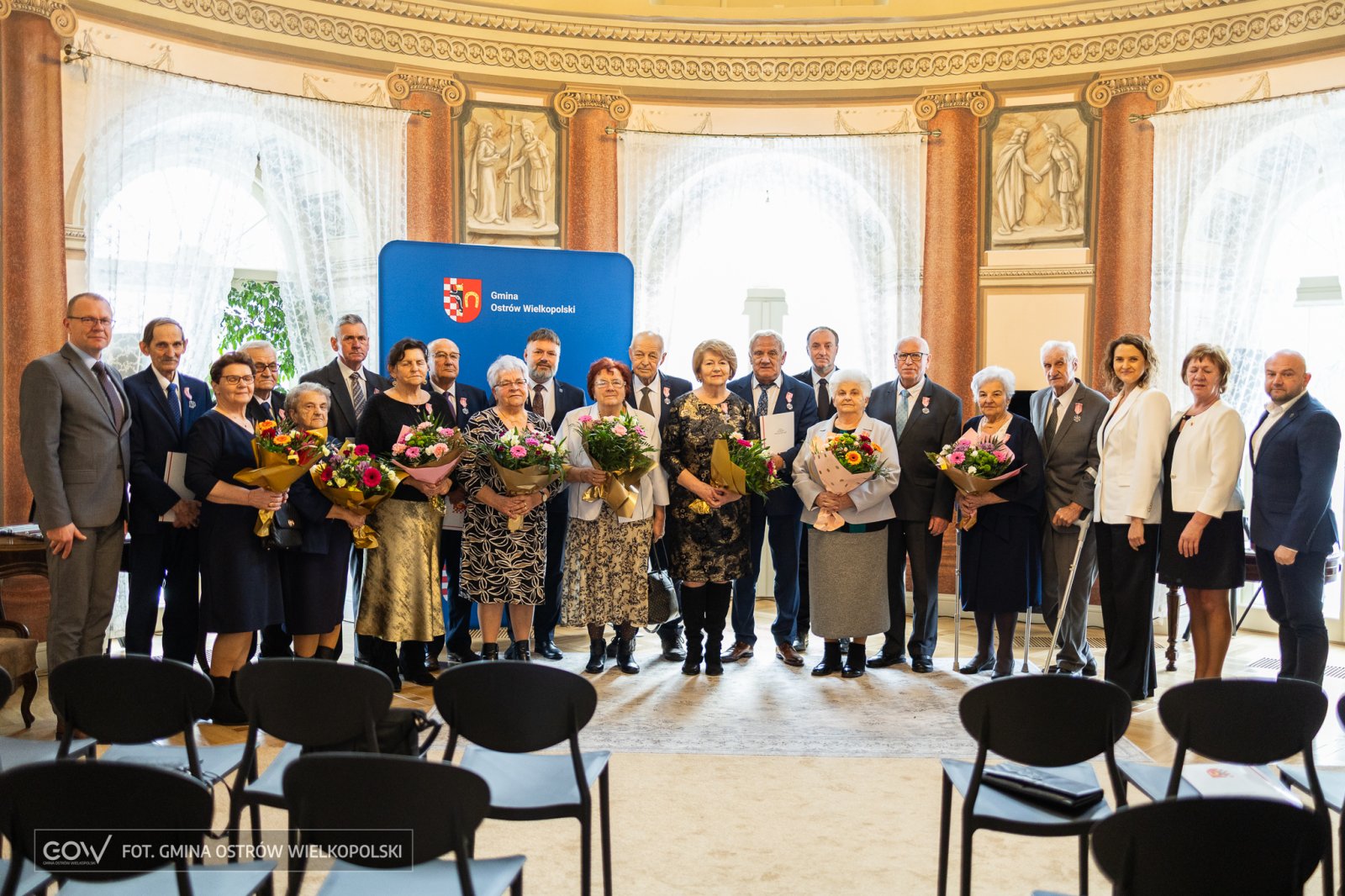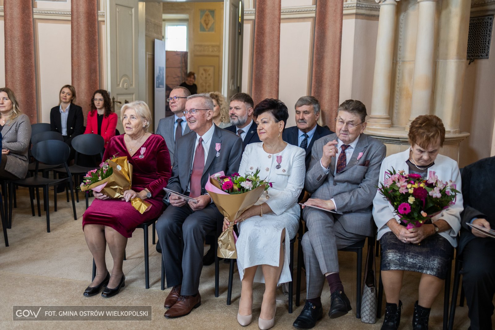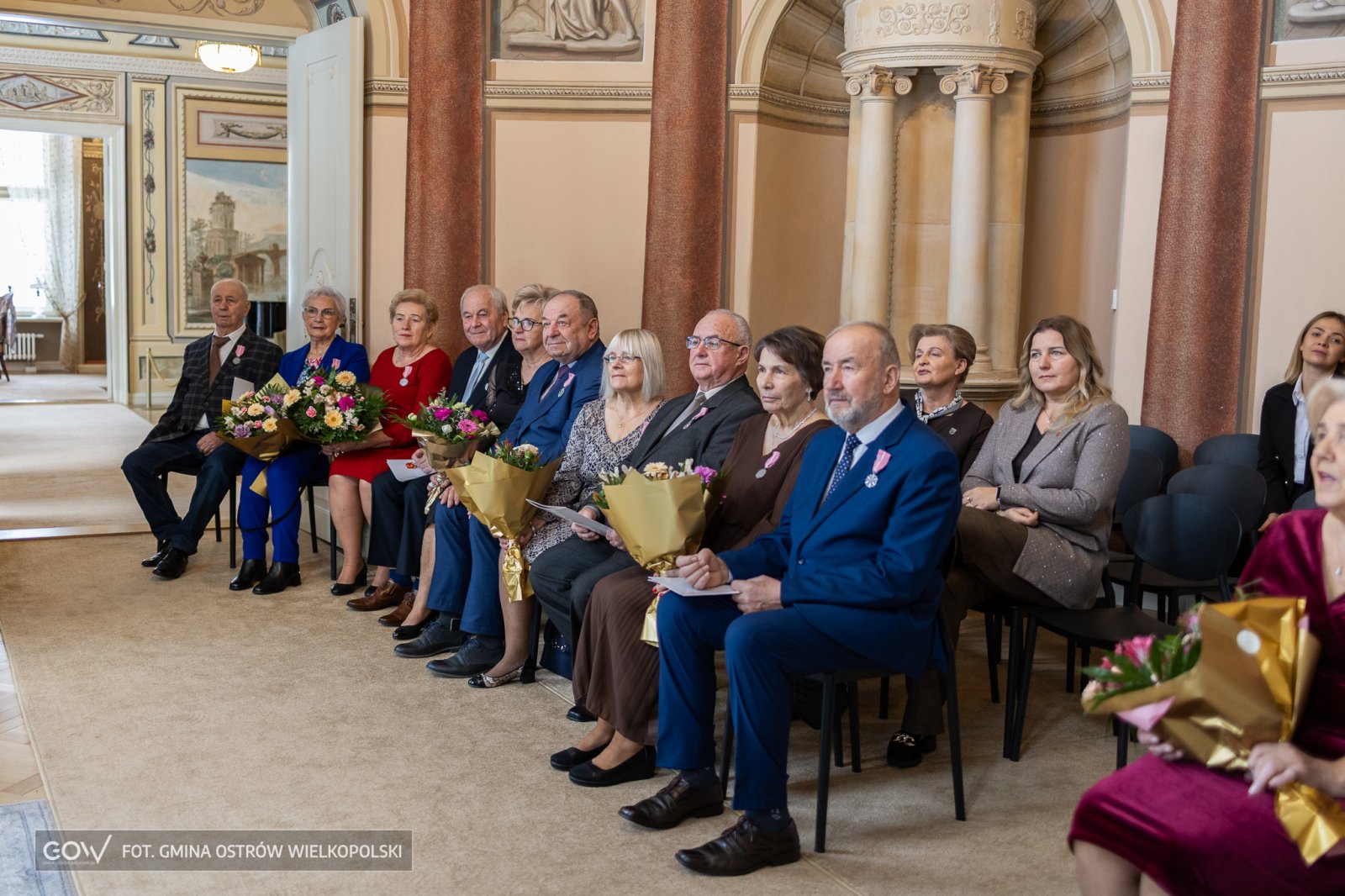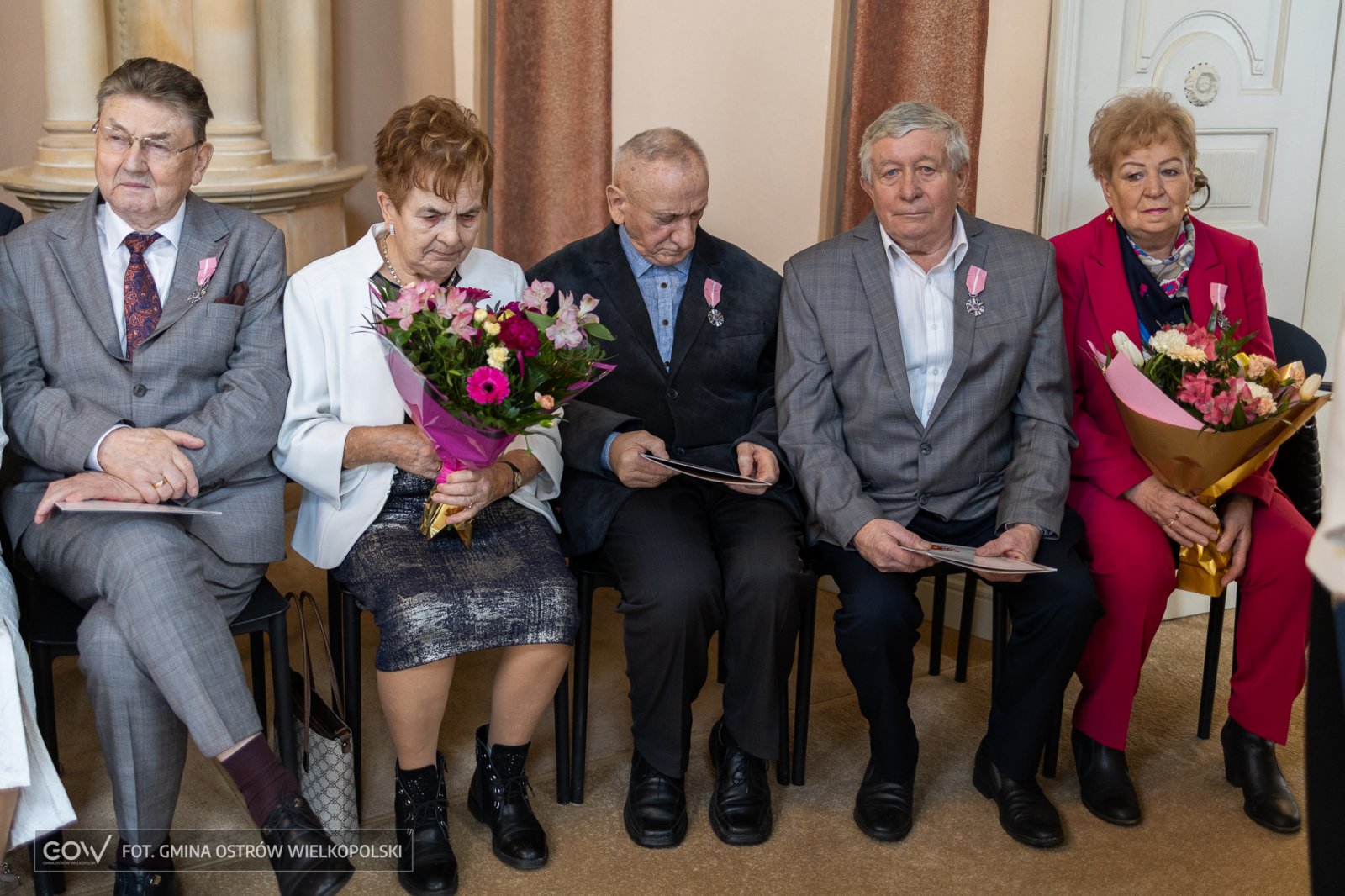 Do jubilatów zwrócił się wójt Gminy Ostrów Wielkopolski Dariusz Pryczak, podkreślając wagę trwale budowanych relacji, które przenoszą wartości na kolejne pokolenia. Następnie pary otrzymały odznaczenia za długoletnie pożycie małżeńskie, przyznane przez Prezydenta RP. Nazwiska wyróżnionych odczytała kierownik Urzędu Stanu Cywilnego w Ostrowie Wielkopolskim, Katarzyna Zaremba, a dekoracji dokonał wójt Dariusz Pryczak.