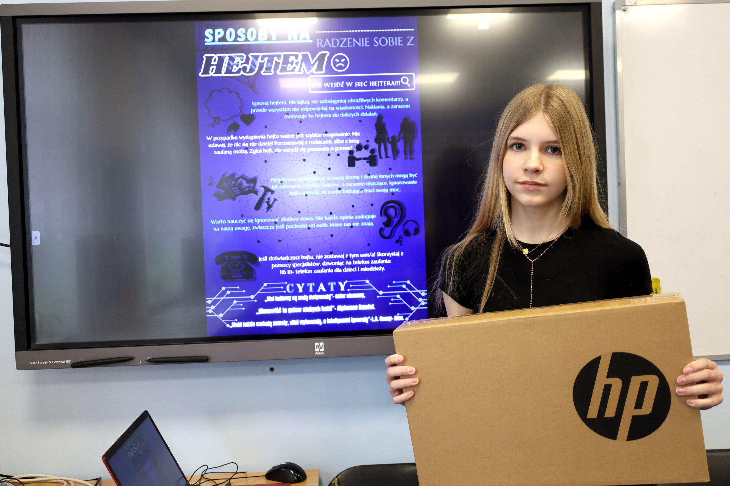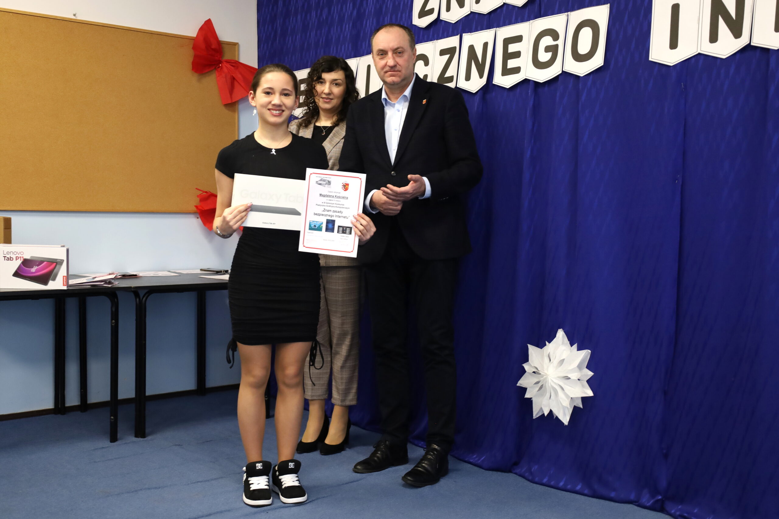 Zwycięscy w obu kategoriach odebrali laptopy, a zdobywcy drugich i trzecich miejsc w nagrodę otrzymali tablety. Na wyróżnione osoby czekały m.in. bezprzewodowe słuchawki, głośniki, biżuteria. Wszyscy uczestnicy otrzymali również upominki za udział w konkursie. Serdecznie dziękujemy wszystkim uczniom, którzy zgłosili swoje prace konkursowe.