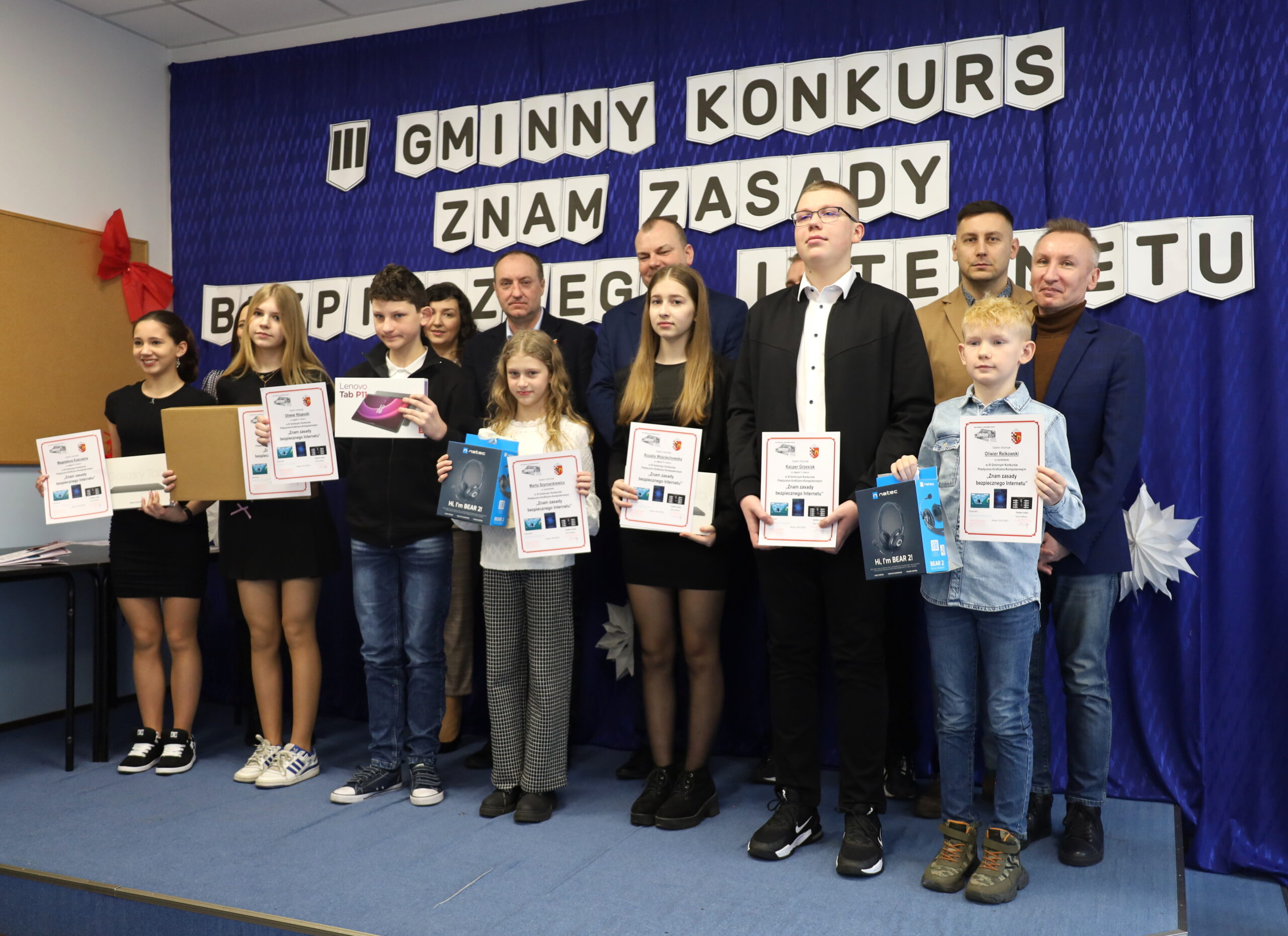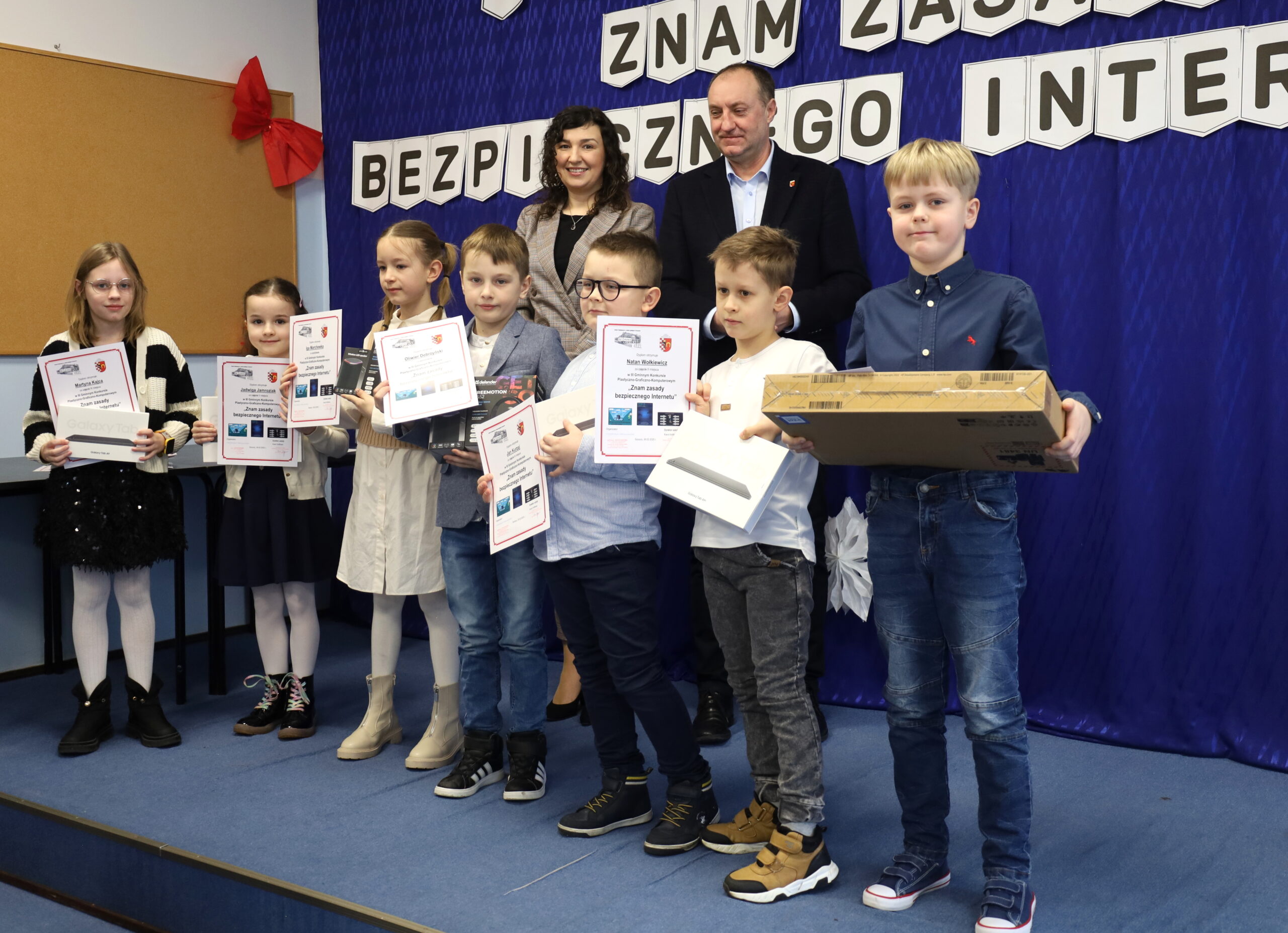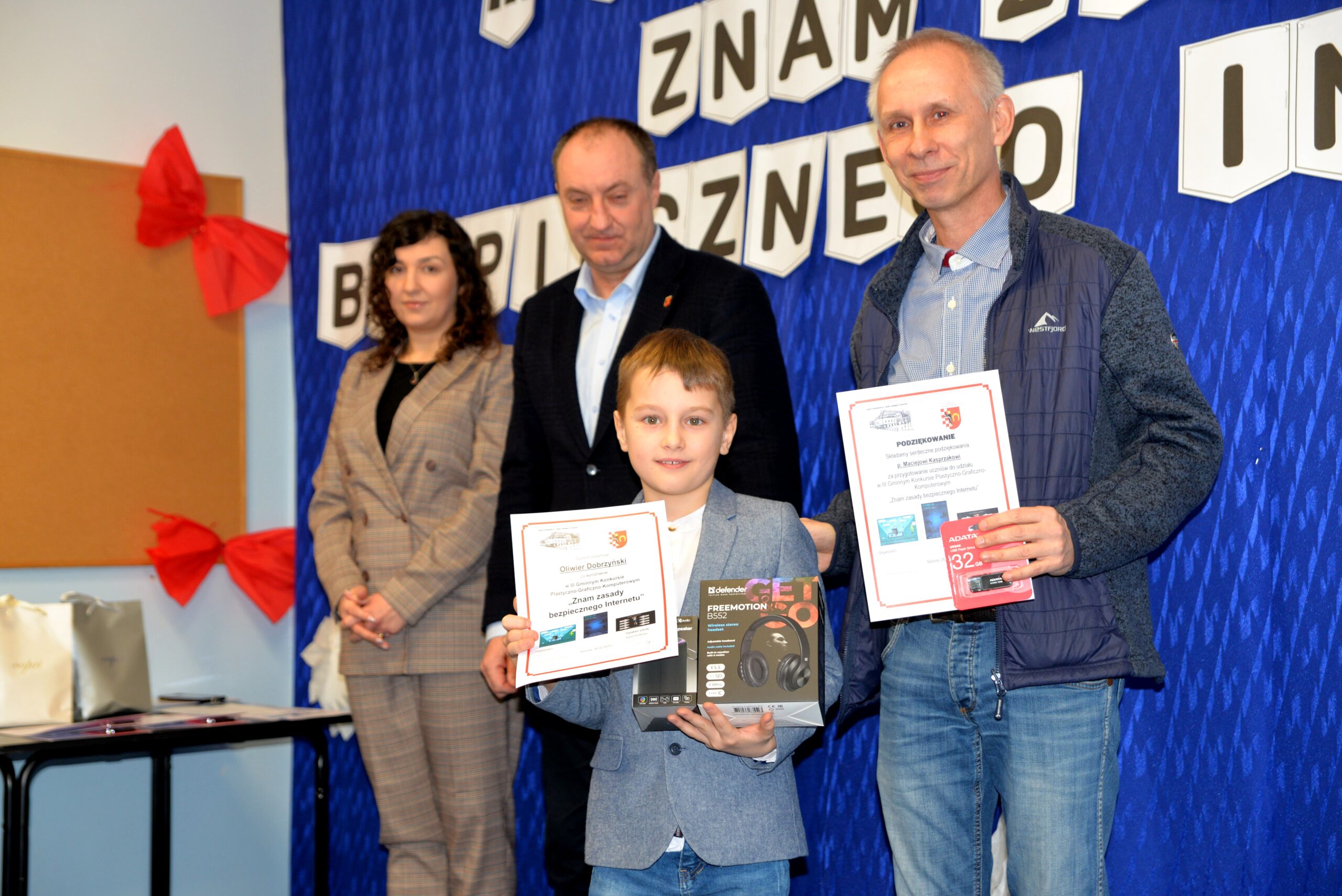 Dnia 26.02.2025 r. odbyło się podsumowanie konkursu i uroczyste rozdanie nagród III Gminnego Konkursu Plastyczno-Graficzno-Multimedialnego pod hasłem „Znam zasady bezpiecznego Internetu”, organizowanym przez Szkołę Podstawową im. Józefa Lipskiego w Szczurach, pod honorowym patronatem Wójta Gminy Ostrów Wielkopolski Dariusza Pryczaka.