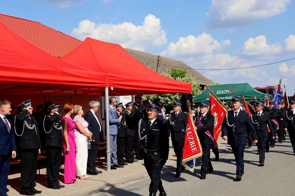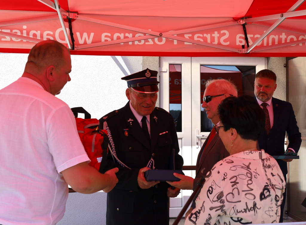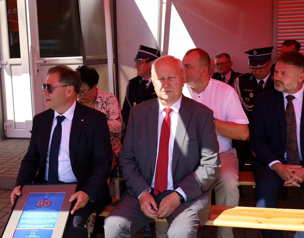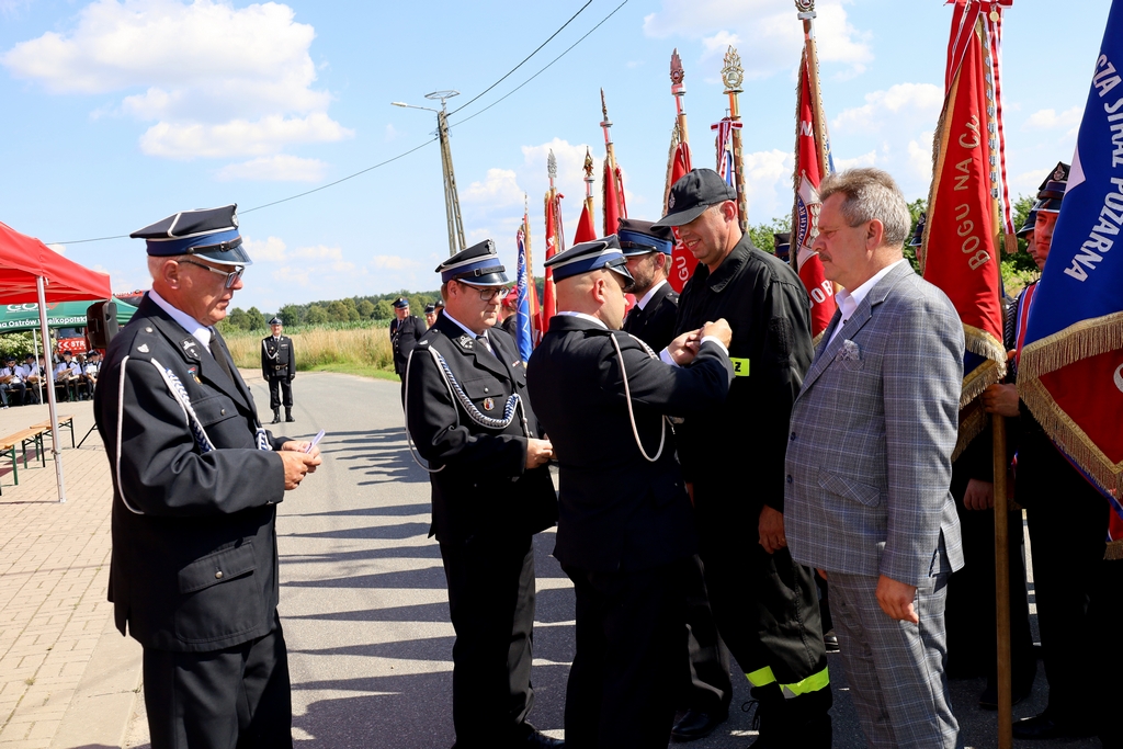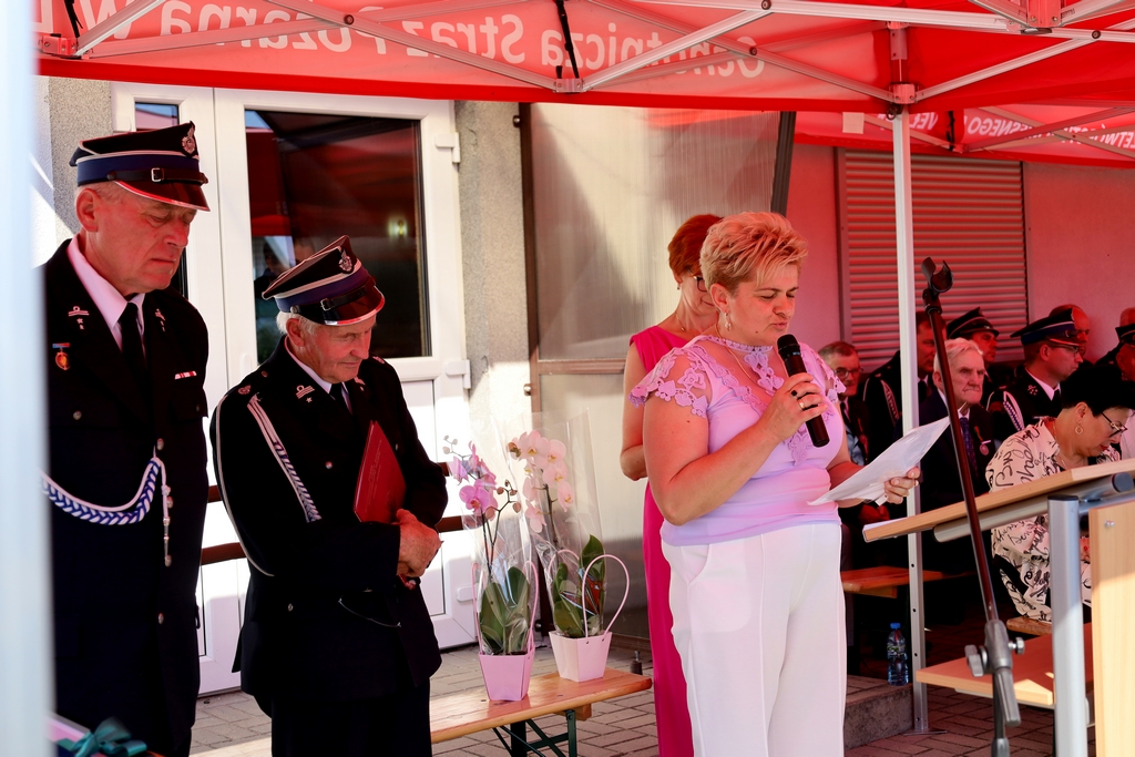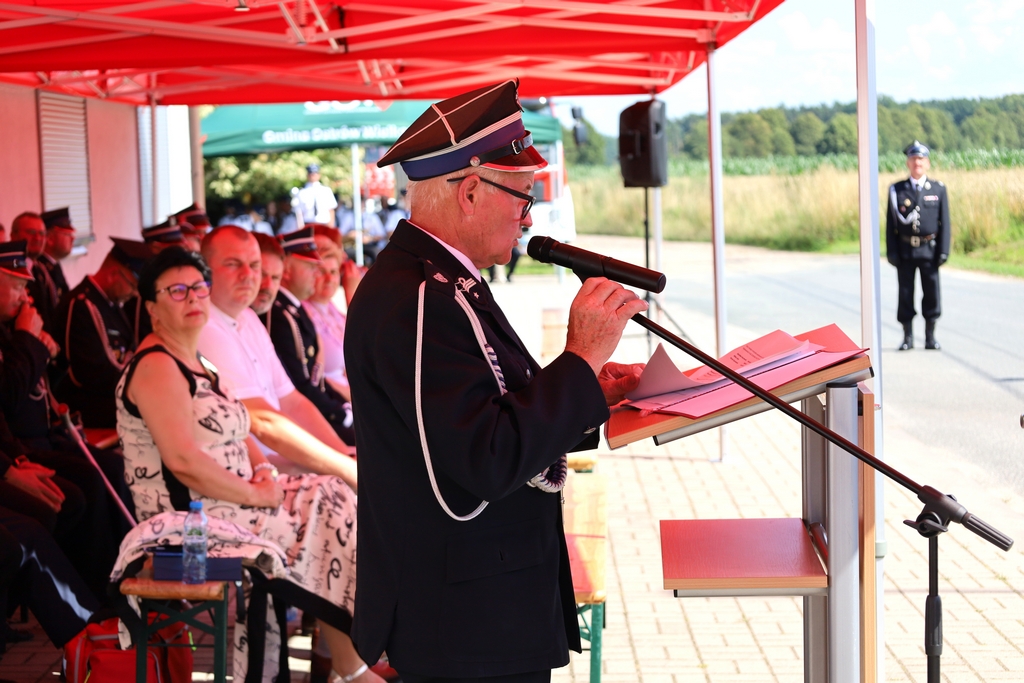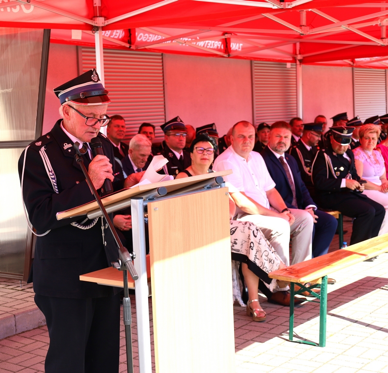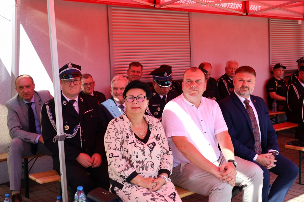 Podczas uroczystości jubileuszowych nie zabrakło słów uznania i podziękowań ze strony zaproszonych gości. Z tej okazji zastępca wójta gminy Ostrów Wielkopolski Paweł Małuszek oraz przewodniczący Rady Gminy Michał Szymoniak przekazali w imieniu gminy voucher o wartości 6000 zł na zakup niezbędnego sprzętu strażackiego.