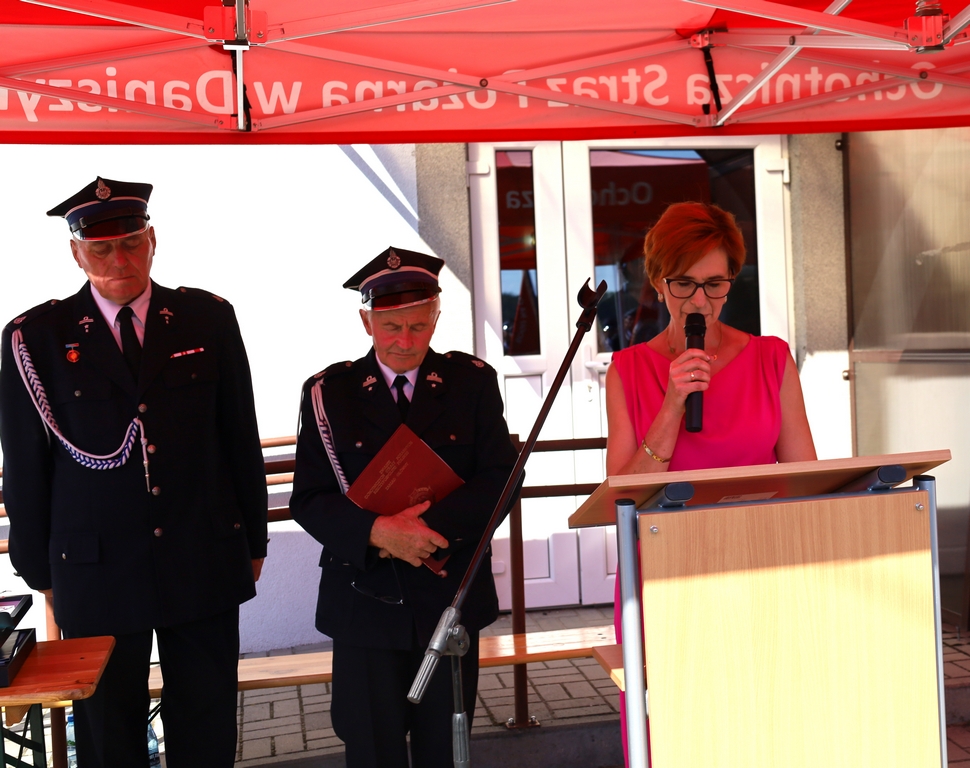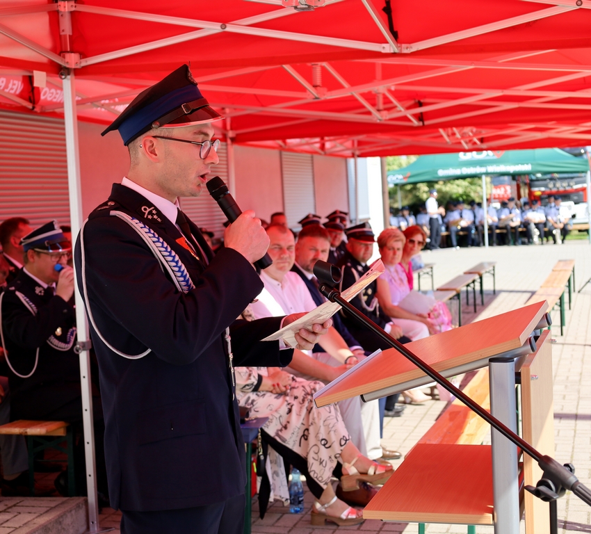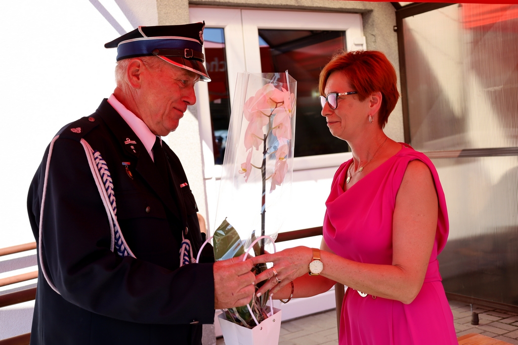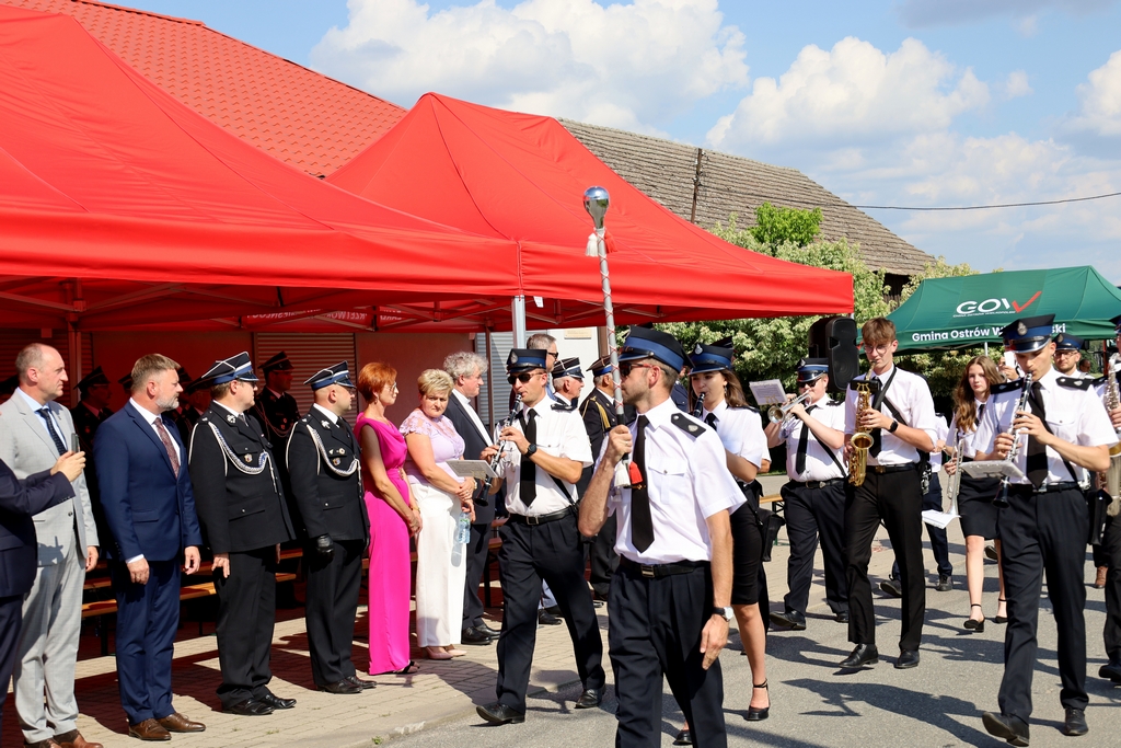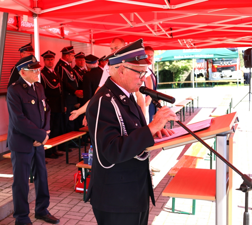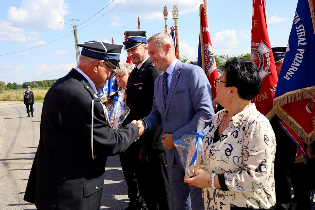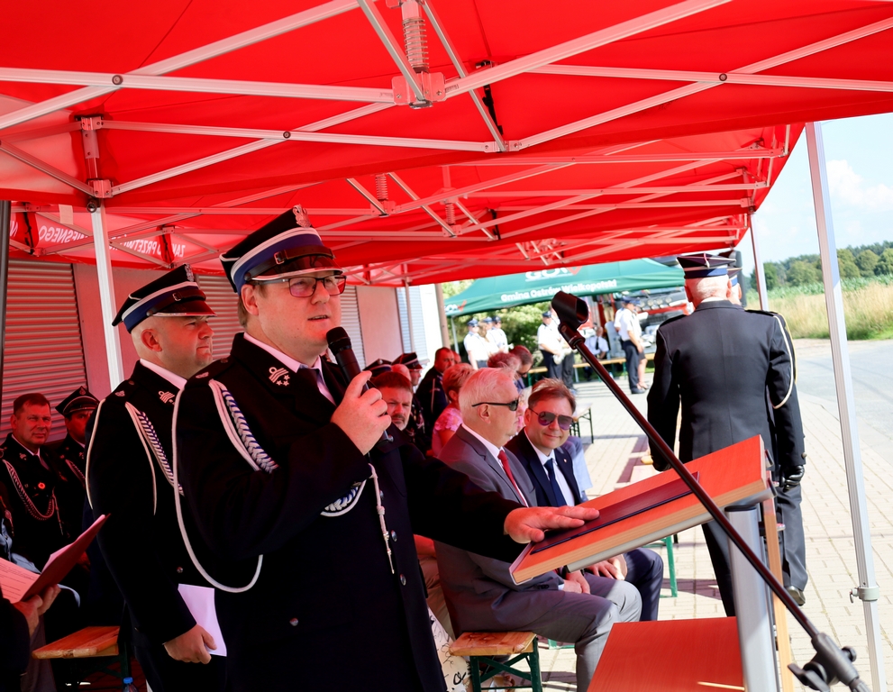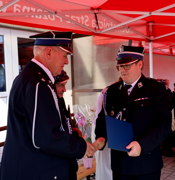 Podczas uroczystości jubileuszowych nie zabrakło słów uznania i podziękowań ze strony zaproszonych gości. Z tej okazji zastępca wójta gminy Ostrów Wielkopolski Paweł Małuszek oraz przewodniczący Rady Gminy Michał Szymoniak przekazali w imieniu gminy voucher o wartości 6000 zł na zakup niezbędnego sprzętu strażackiego.