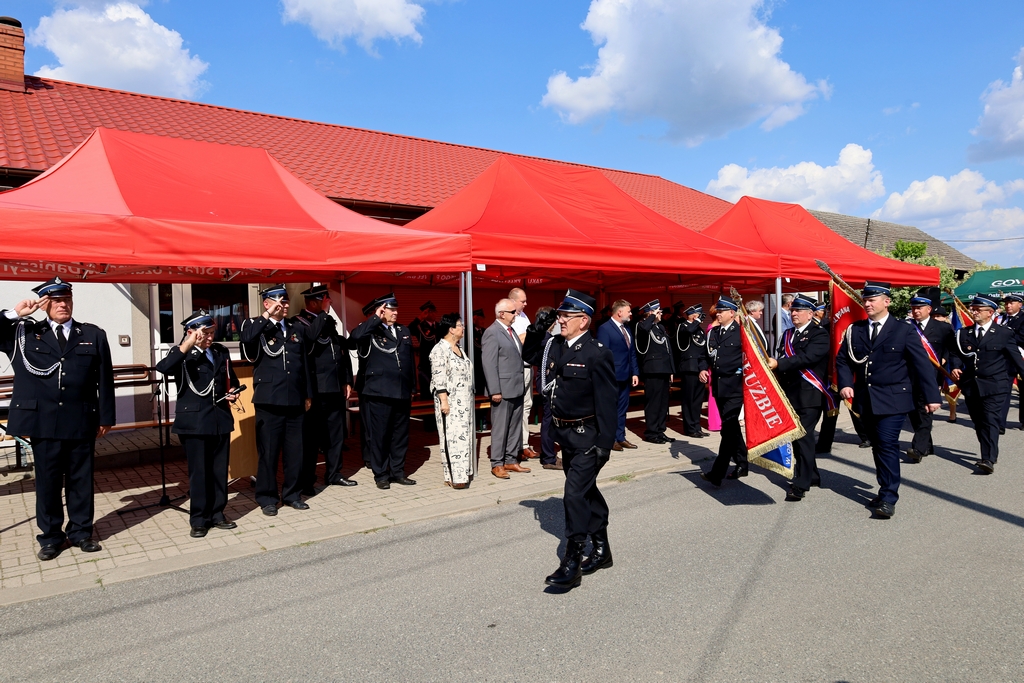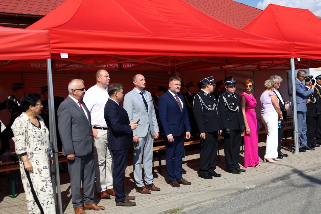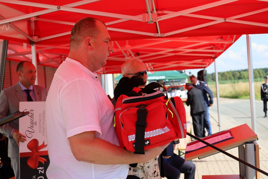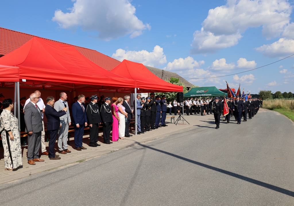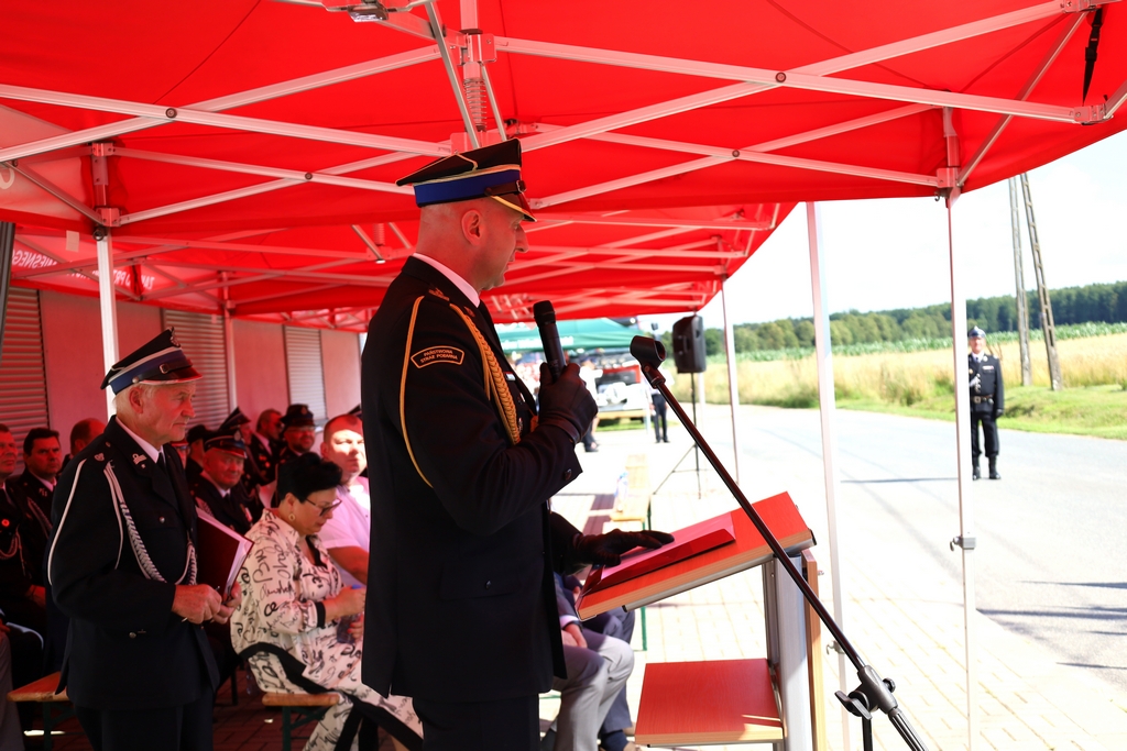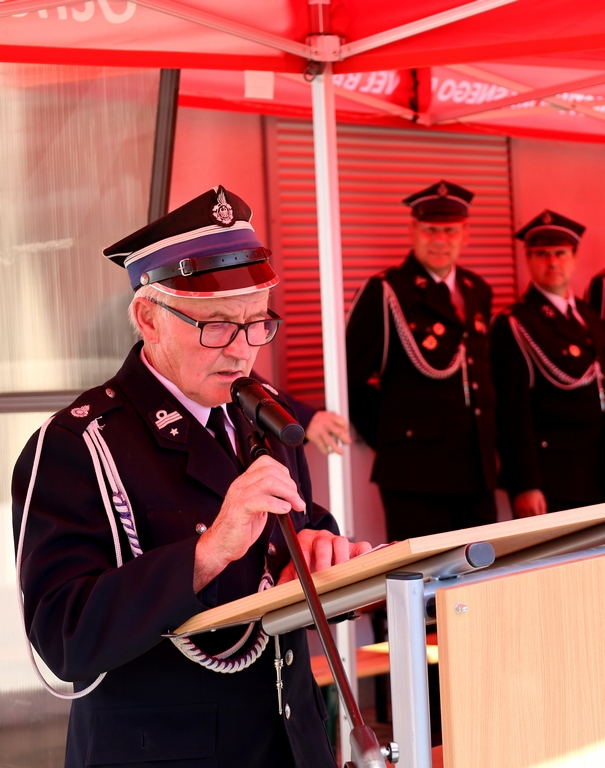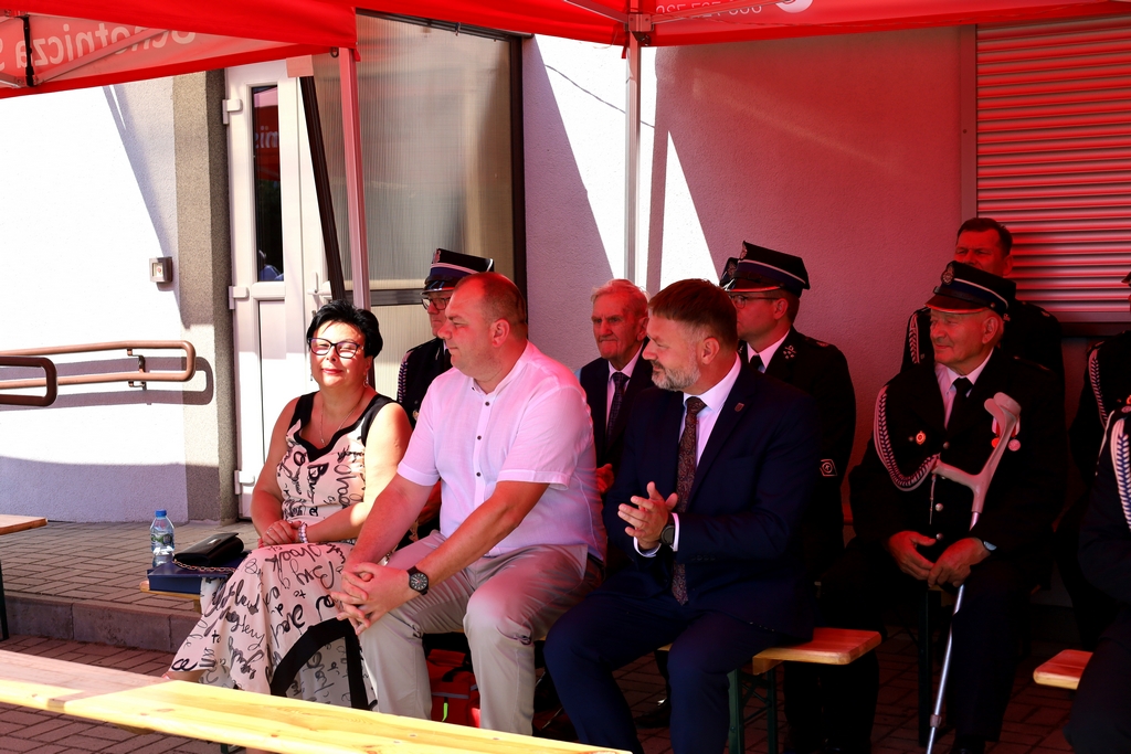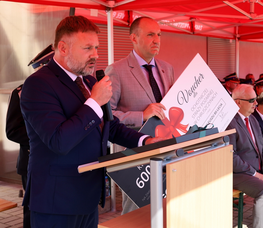 Podczas uroczystości jubileuszowych nie zabrakło słów uznania i podziękowań ze strony zaproszonych gości. Z tej okazji zastępca wójta gminy Ostrów Wielkopolski Paweł Małuszek oraz przewodniczący Rady Gminy Michał Szymoniak przekazali w imieniu gminy voucher o wartości 6000 zł na zakup niezbędnego sprzętu strażackiego.