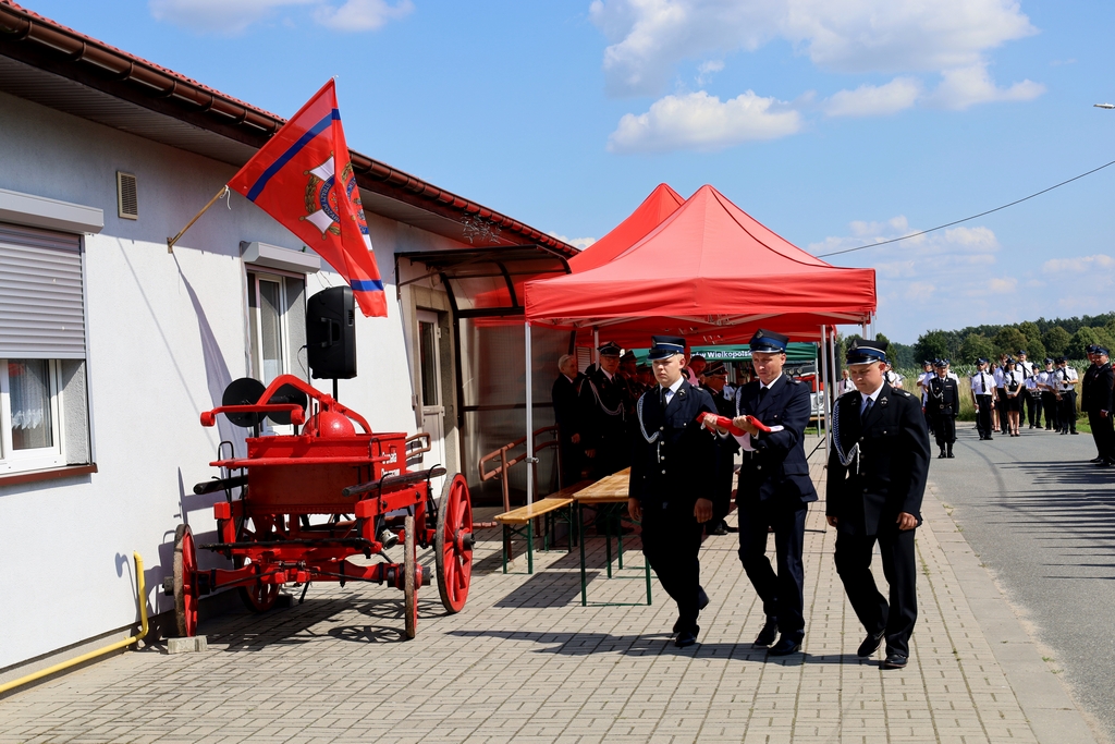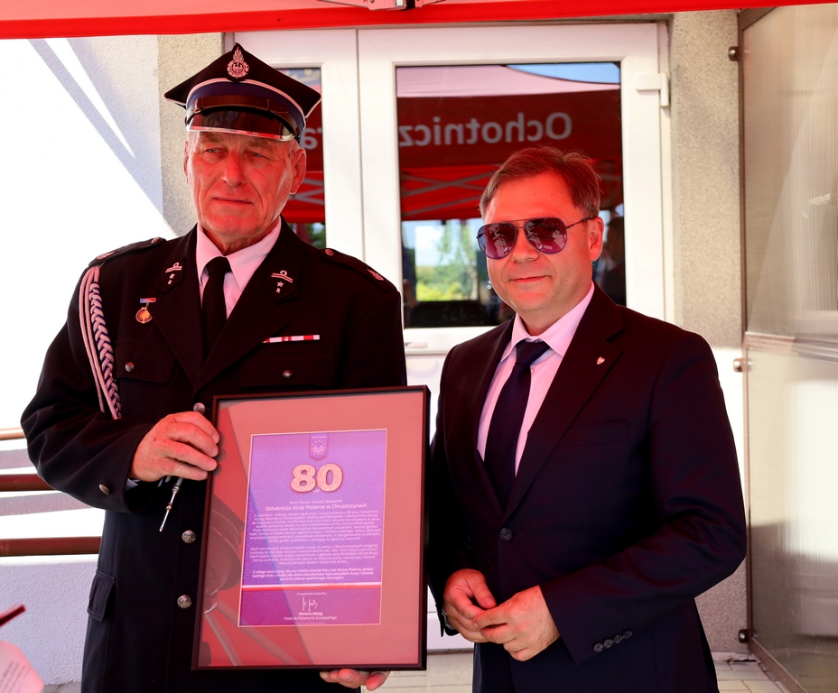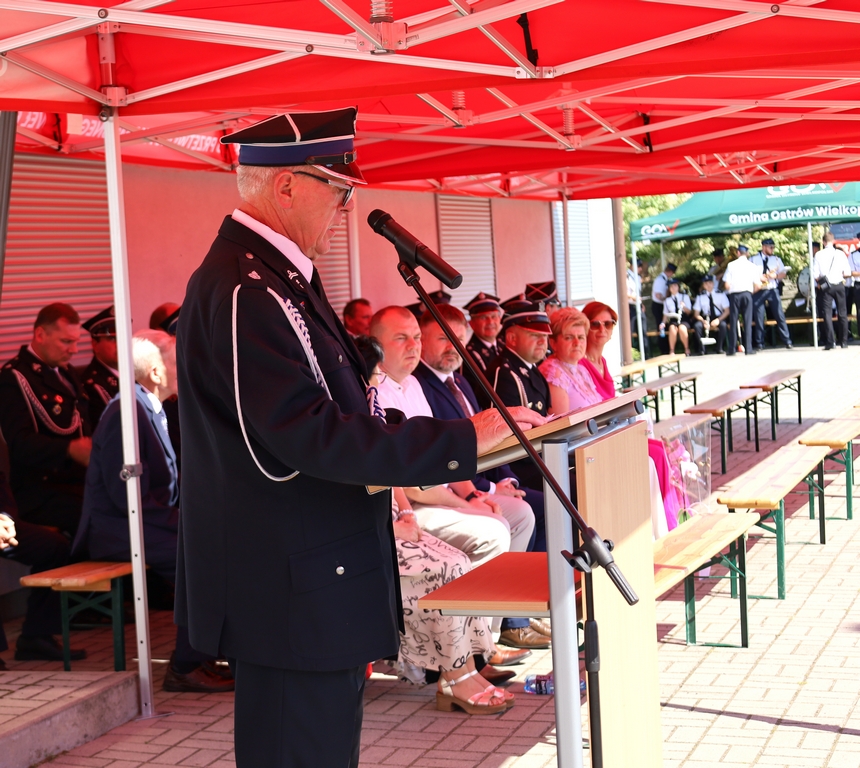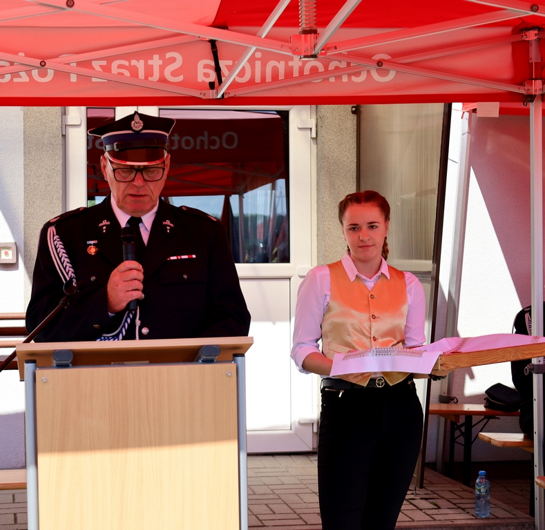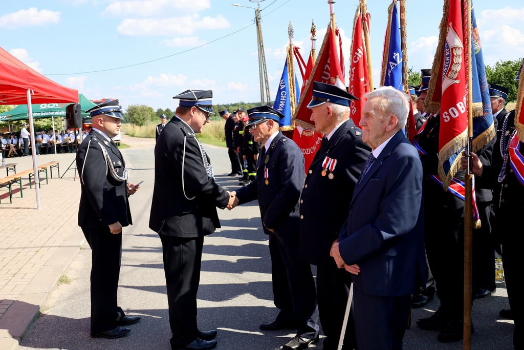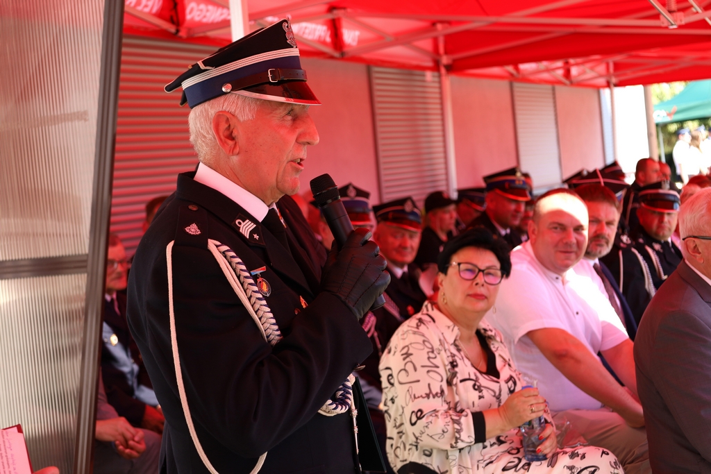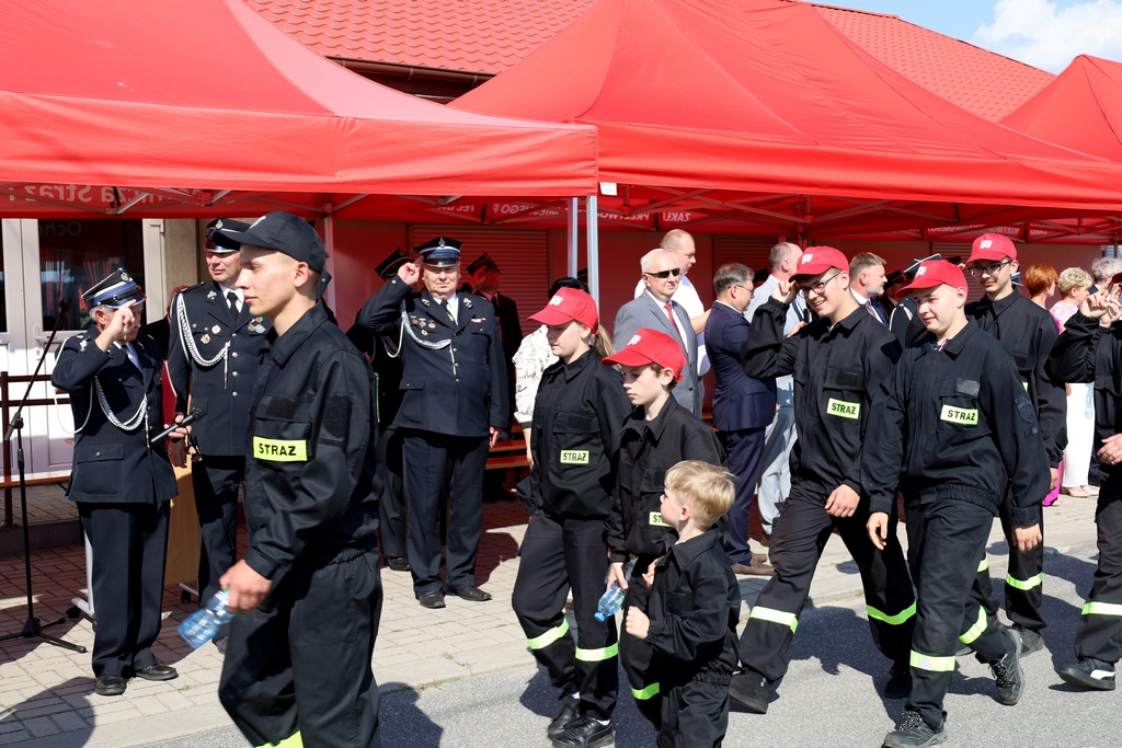 Podczas uroczystości jubileuszowych nie zabrakło słów uznania i podziękowań ze strony zaproszonych gości. Z tej okazji zastępca wójta gminy Ostrów Wielkopolski Paweł Małuszek oraz przewodniczący Rady Gminy Michał Szymoniak przekazali w imieniu gminy voucher o wartości 6000 zł na zakup niezbędnego sprzętu strażackiego.