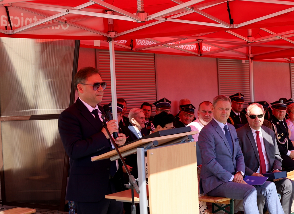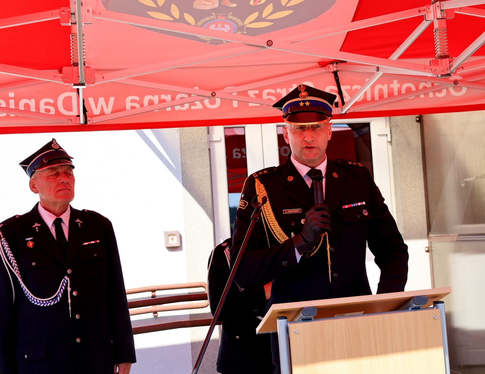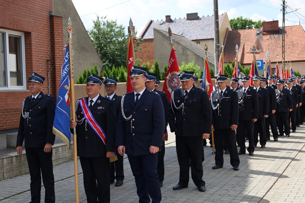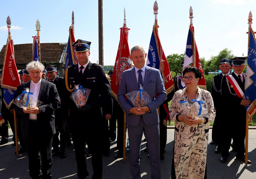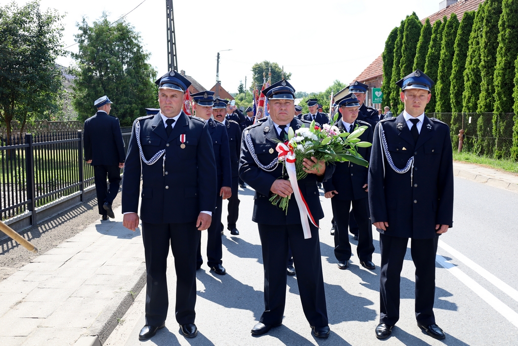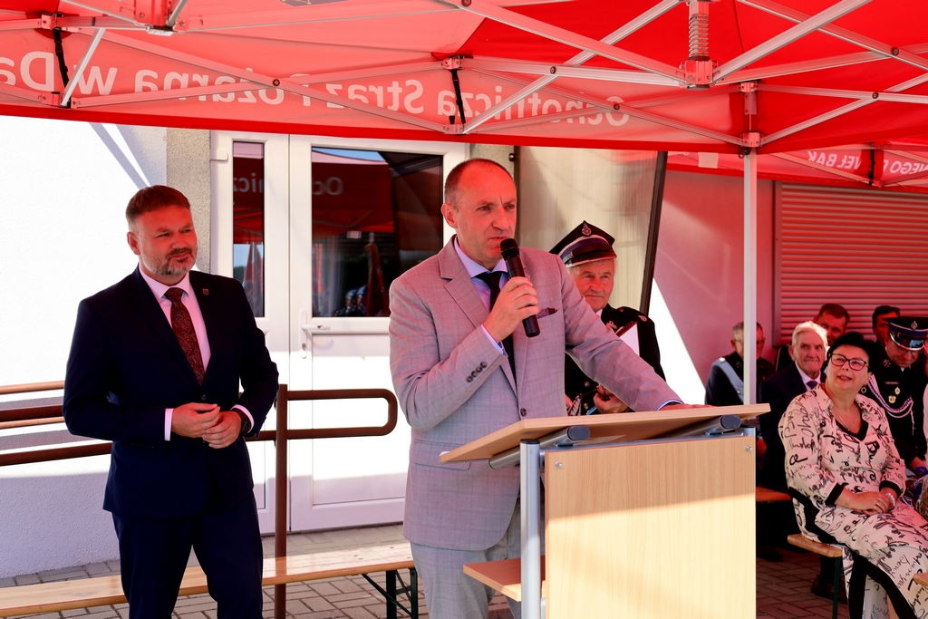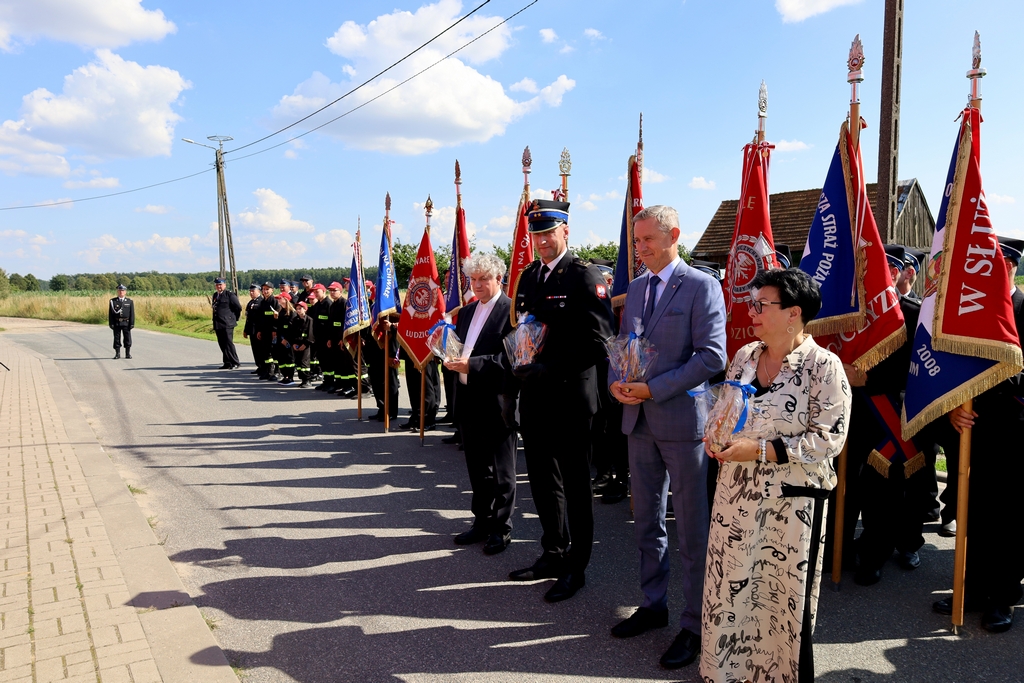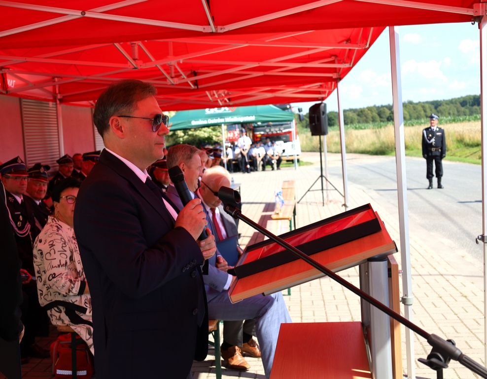 Podczas uroczystości jubileuszowych nie zabrakło słów uznania i podziękowań ze strony zaproszonych gości. Z tej okazji zastępca wójta gminy Ostrów Wielkopolski Paweł Małuszek oraz przewodniczący Rady Gminy Michał Szymoniak przekazali w imieniu gminy voucher o wartości 6000 zł na zakup niezbędnego sprzętu strażackiego.