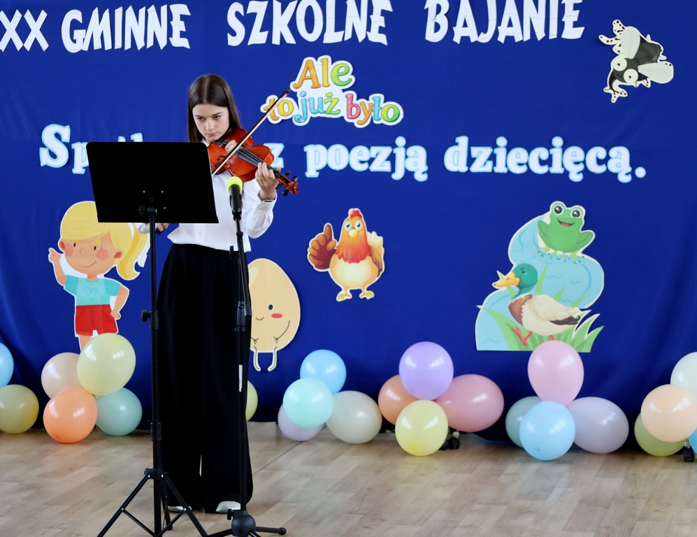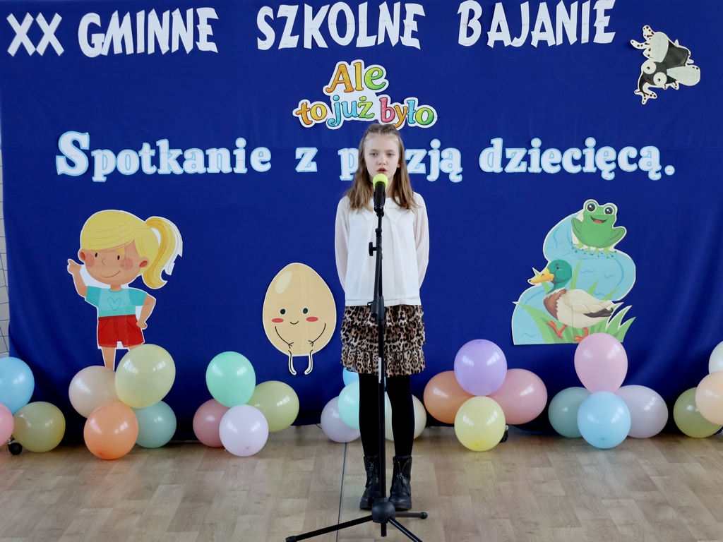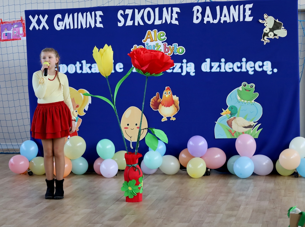 Poziom XX Gminnego konkursu „Szkolne Bajanie” był bardzo wysoki, uczniowie zainspirowali się poezją i udowodnili, że „Poezji nie tworzy się po to, by ją analizować; poezja ma po prostu inspirować, wzruszać, nie powinna być odbierana umysłem.”