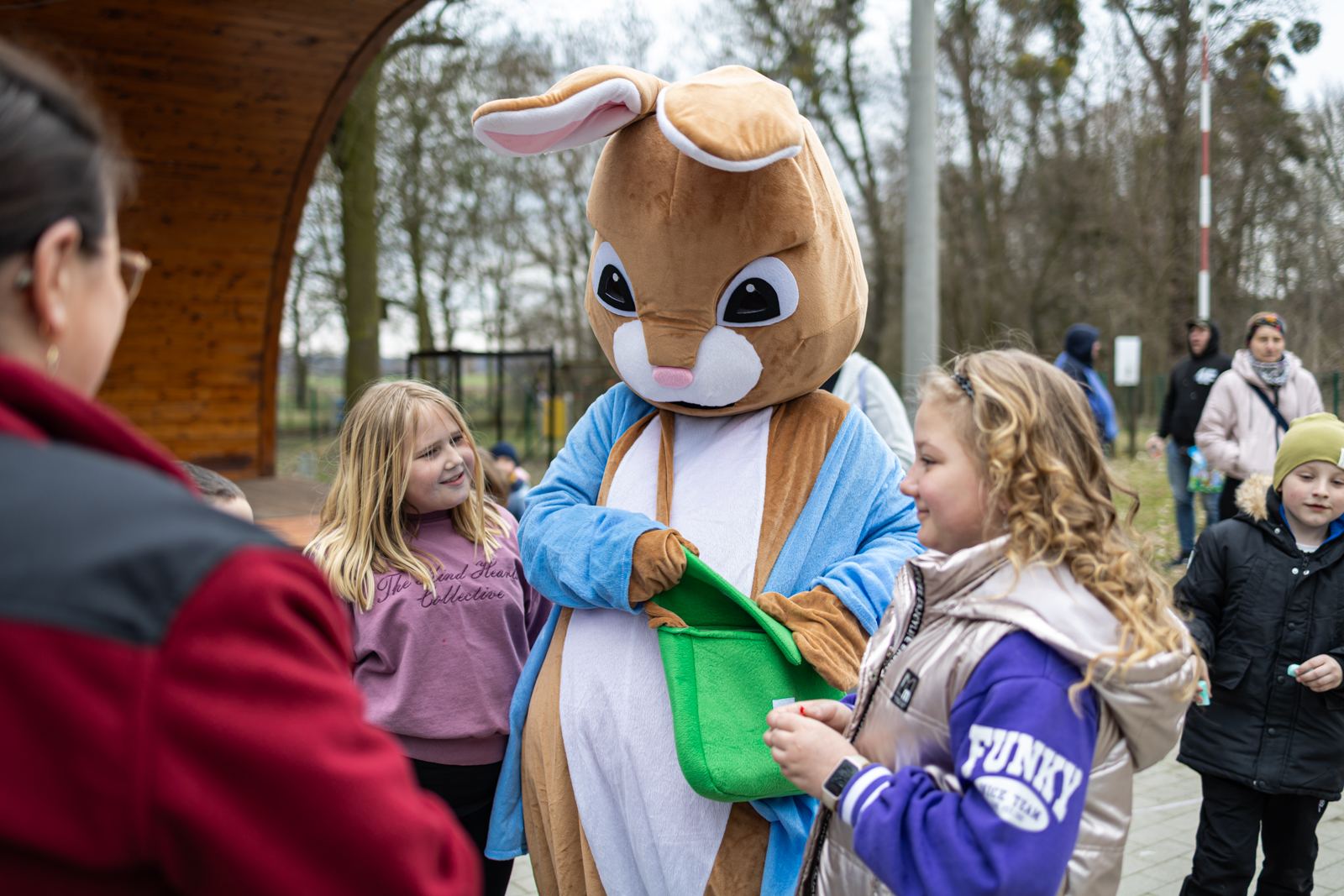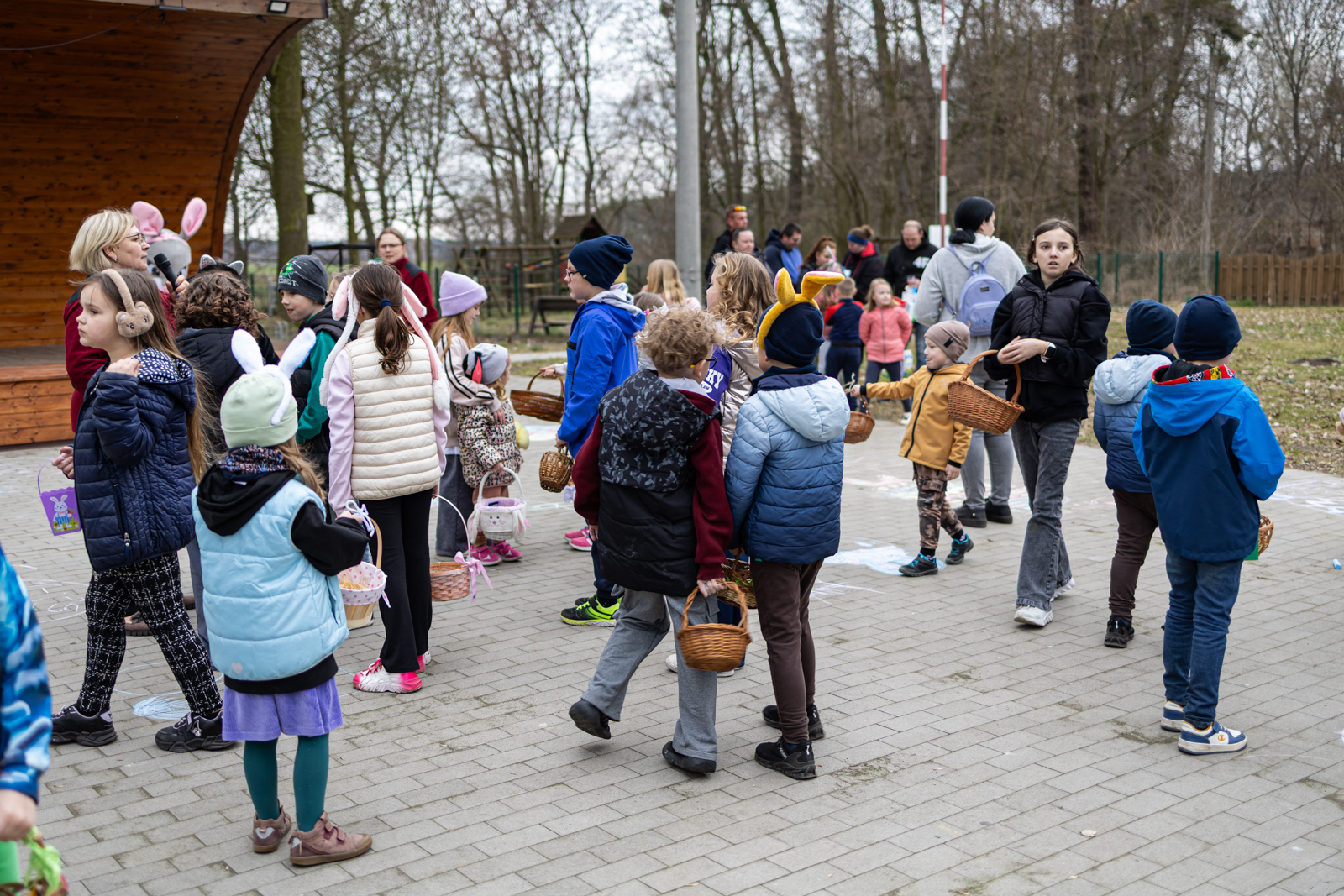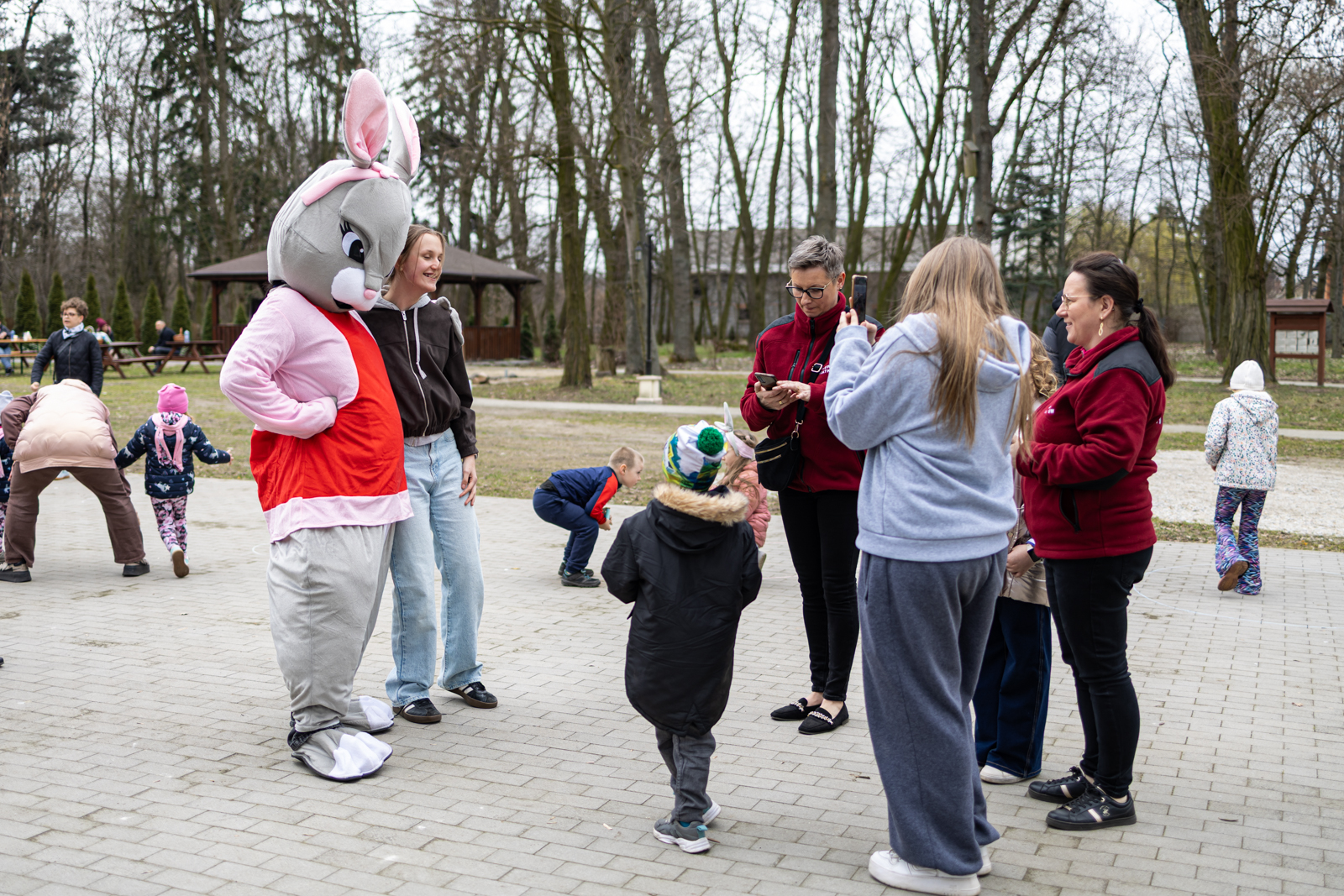 Wydarzenie przygotowano z myślą o dzieciach, które mogły spędzić czas na wspólnej zabawie w przedświątecznej atmosferze. Najmłodszych mieszkańców odwiedziły króliki z bajki „Piotruś Królik”, a jednym z głównych punktów programu było szukanie niespodzianek ukrytych przez uszatych gości. Obok animacji uczestnicy wzięli również udział w konkursie na najpiękniejszą kartkę wielkanocną. Wszystkie przygotowane prace zostały nagrodzone. Dzieci uczestniczyły także w zajęciach plastycznych, podczas których malowały pisanki kredą, a później mogły sprawdzić się w roli poszukiwaczy jajek.