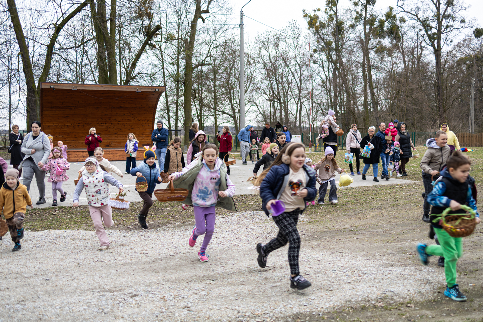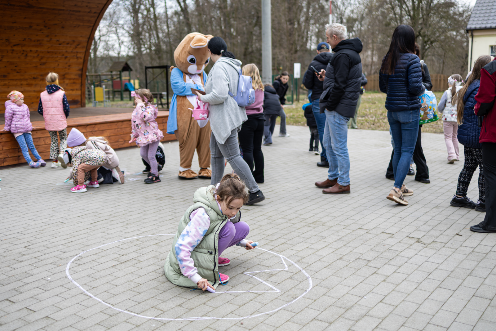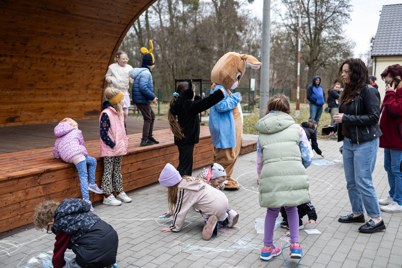 Wydarzenie przygotowano z myślą o dzieciach, które mogły spędzić czas na wspólnej zabawie w przedświątecznej atmosferze. Najmłodszych mieszkańców odwiedziły króliki z bajki „Piotruś Królik”, a jednym z głównych punktów programu było szukanie niespodzianek ukrytych przez uszatych gości. Obok animacji uczestnicy wzięli również udział w konkursie na najpiękniejszą kartkę wielkanocną. Wszystkie przygotowane prace zostały nagrodzone. Dzieci uczestniczyły także w zajęciach plastycznych, podczas których malowały pisanki kredą, a później mogły sprawdzić się w roli poszukiwaczy jajek.