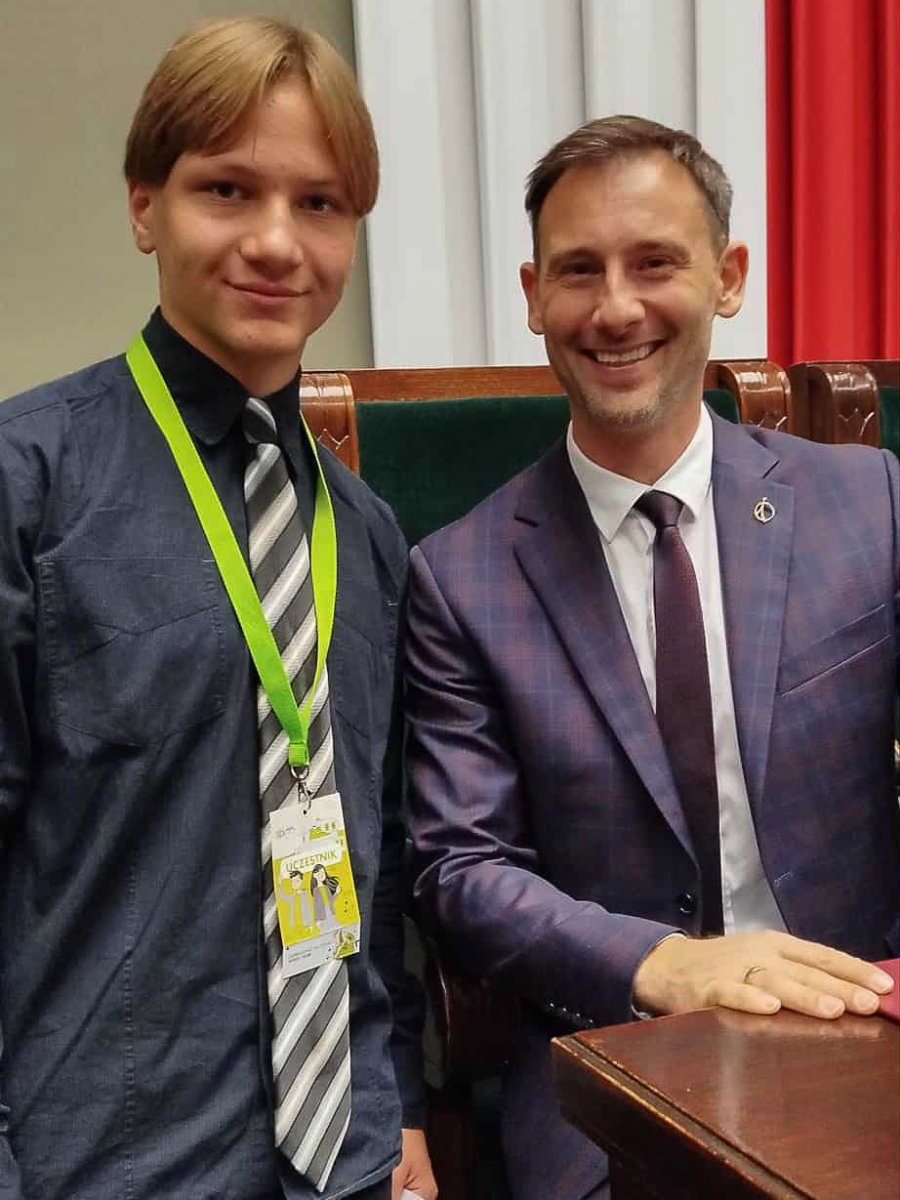 Hubert Saczuk, uczeń 8. klasy w swojej wypowiedzi zaapelował o wzmocnienie praktycznego wymiaru edukacji i o większe zaangażowanie polityków w sprawy obywateli. Mówił szczerze, z punktu widzenia młodego człowieka, który obserwuje rzeczywistość publiczną z dystansem, ale i dużą troską.