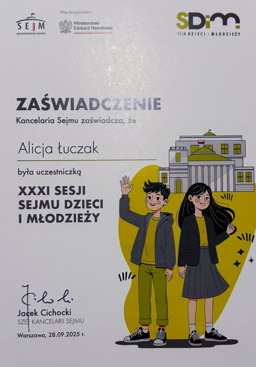 To prestiżowe wydarzenie organizowane przez Kancelarię Sejmu pod patronatem Ministerstwa Edukacji Narodowej zgromadziło młodych przedstawicieli z całej Polski, dając im realną przestrzeń do zabrania głosu na forum parlamentarnym. Swoją obecność w stolicy zaznaczyli Alicja Łuczak, Amelia Wachowiak oraz Hubert Saczuk. Każdej młodzieżowej reprezentacji towarzyszył nauczyciel–koordynator, którym z ramienia szkoły Podstawowej w Lewkowie była Emilia Banaszak.