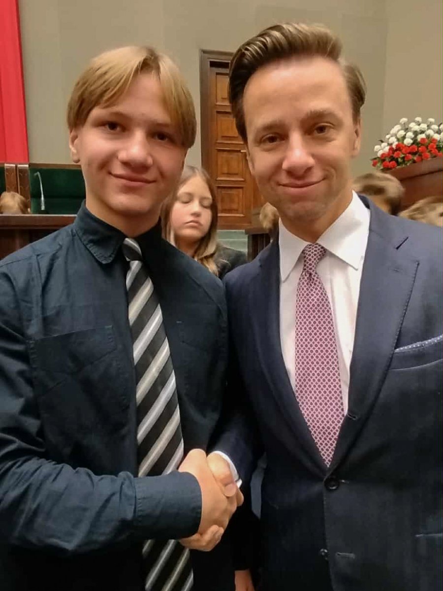 — Chciałbym się dzisiaj przede wszystkim zwrócić do prawdziwych polityków, aby stanęli ponad podziałami i zrobili coś dobrego dla Polski. By przestali się kłócić i zrobili coś konkretnego. Jako młody człowiek uważam, że nie chodzi o to, kto wygra wybory, żeby potem całą kadencję się obijać. Posłowie, jesteście tutaj po to, aby służyć nam i krajowi. Waszym zadaniem jest rozmawiać między sobą, a nie tylko przepychać swoje ustawy większością. Pamiętajcie: bez wspólnoty nie ma patriotyzmu, a bez patriotyzmu nie ma silnej Polski – powiedział Saczuk.