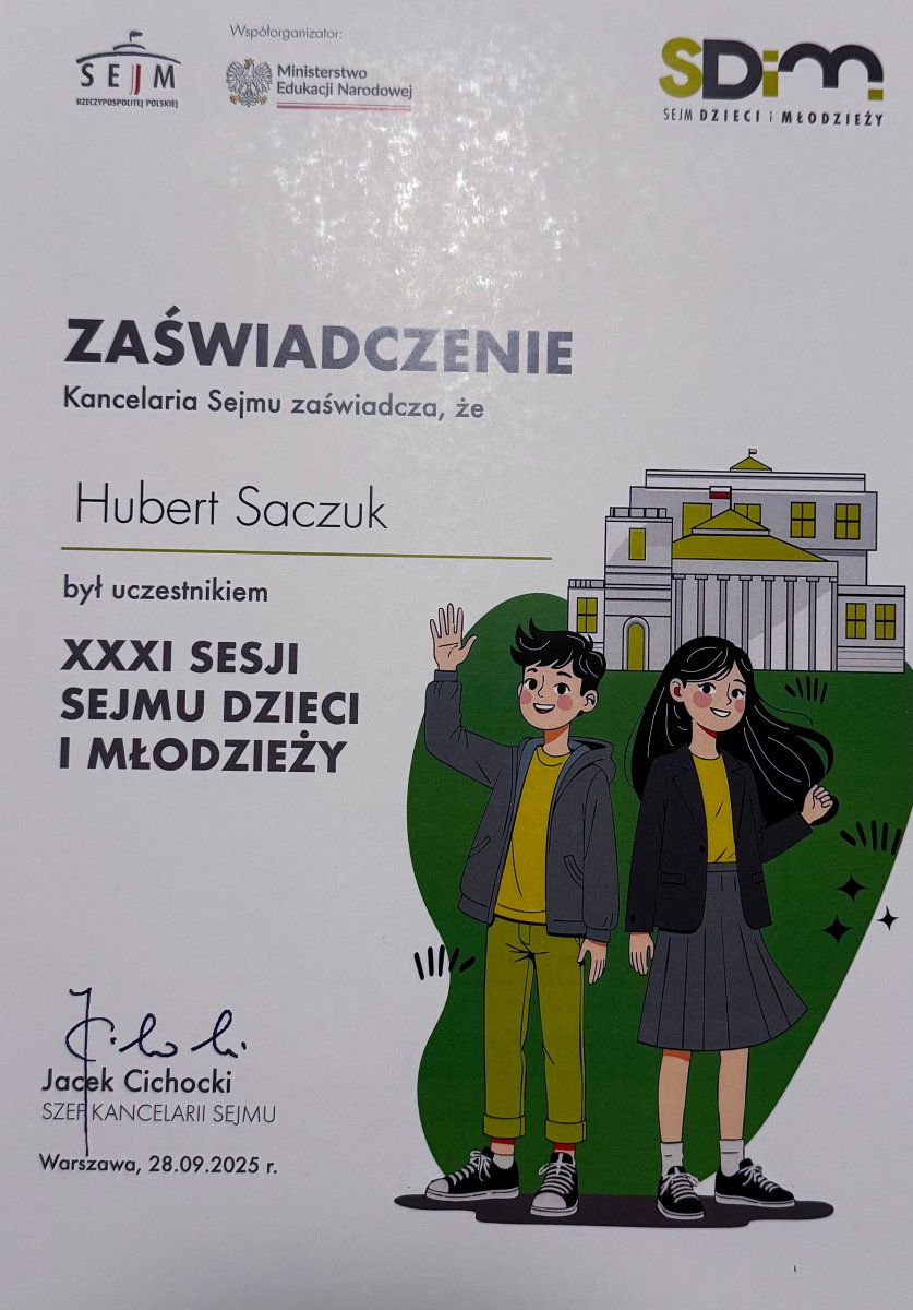 Głos z Gminy Ostrów Wielkopolski niezwykle słyszalny w stolicy Polski. Trzyosobowa delegacja uczniów ze Szkoły Podstawowej im. Wojciecha Lipskiego w Lewkowie wzięła udział w XXXI sesji Sejmu Dzieci i Młodzieży, która odbyła się 28 września 2025 roku w Warszawie.
