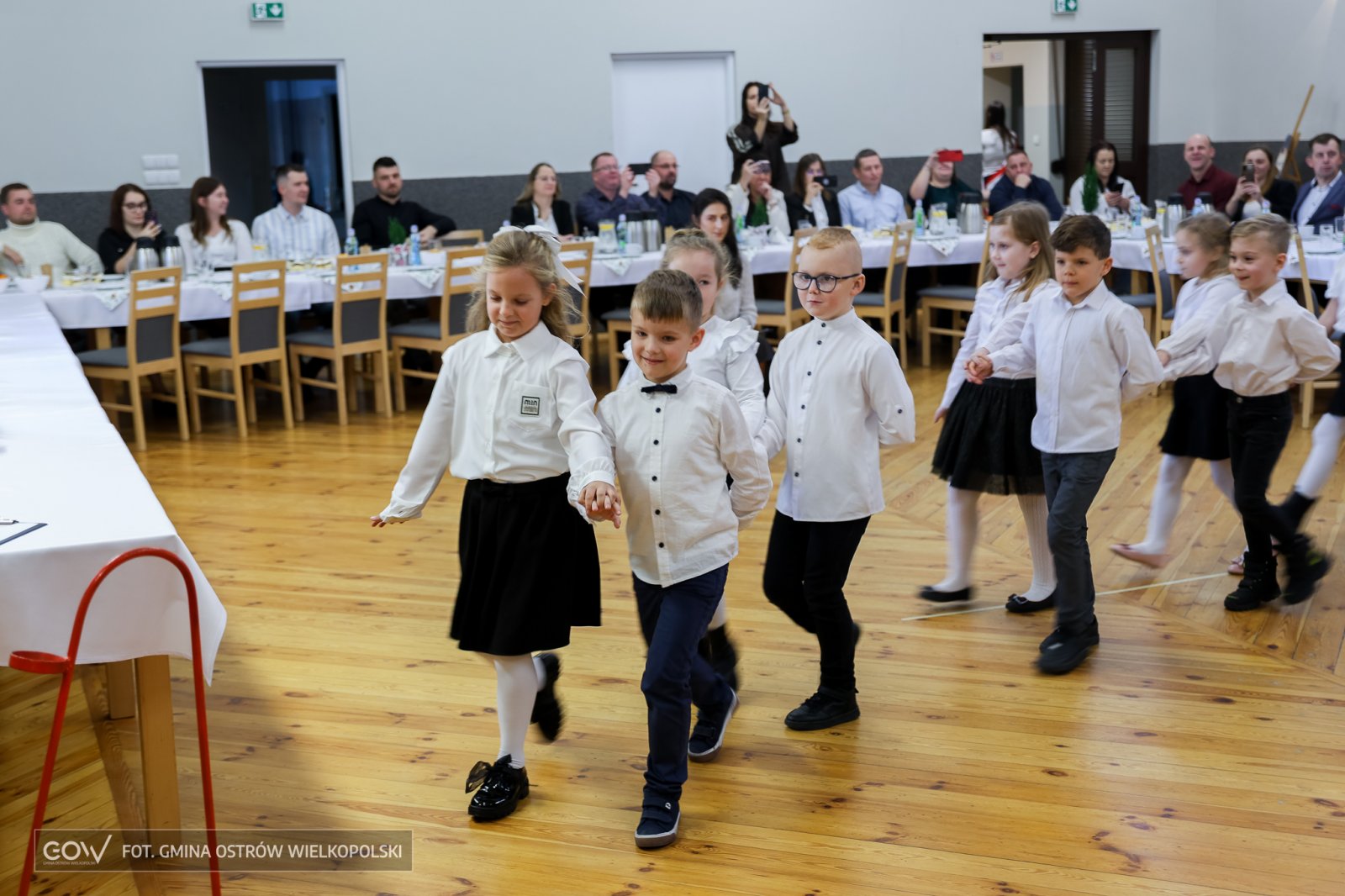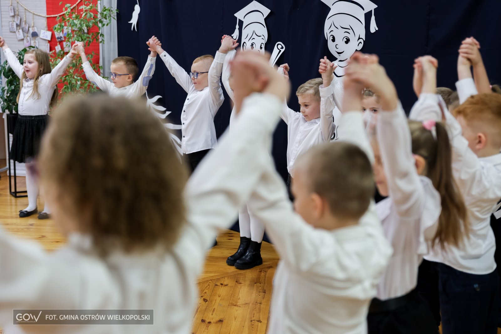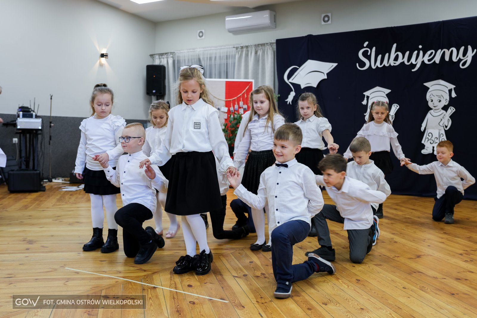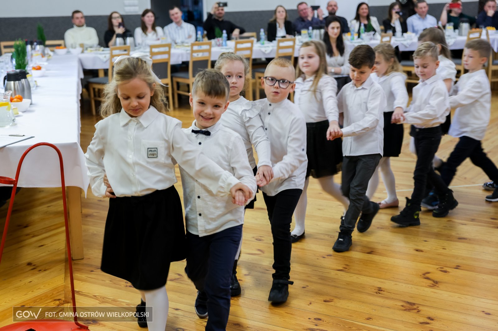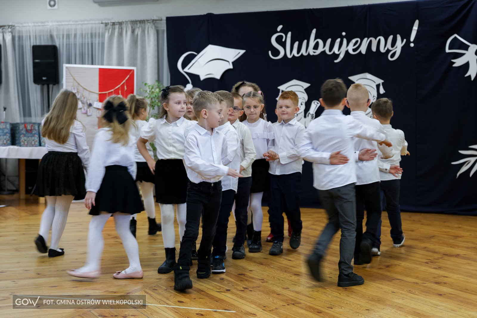A jeśliby tak krok po kroku analizować tę szkolno-artystyczną inicjację, to polonez w wykonaniu pierwszaków zasługuje na szczególne podkreślenie. Ani na moment pierwszoklasistom nie zadrżała ręka, ani przez chwilę noga nie zboczyła z wyznaczonego przez rytm i choreografię kursu. Ponad wszystko na twarzach dzieci z Sobótki widać było prawdziwą dumę z wykonanego zadania – i jeśli trzeba by wystawić tej szesnastce ocenę, to z pewnością byłby to celujący.