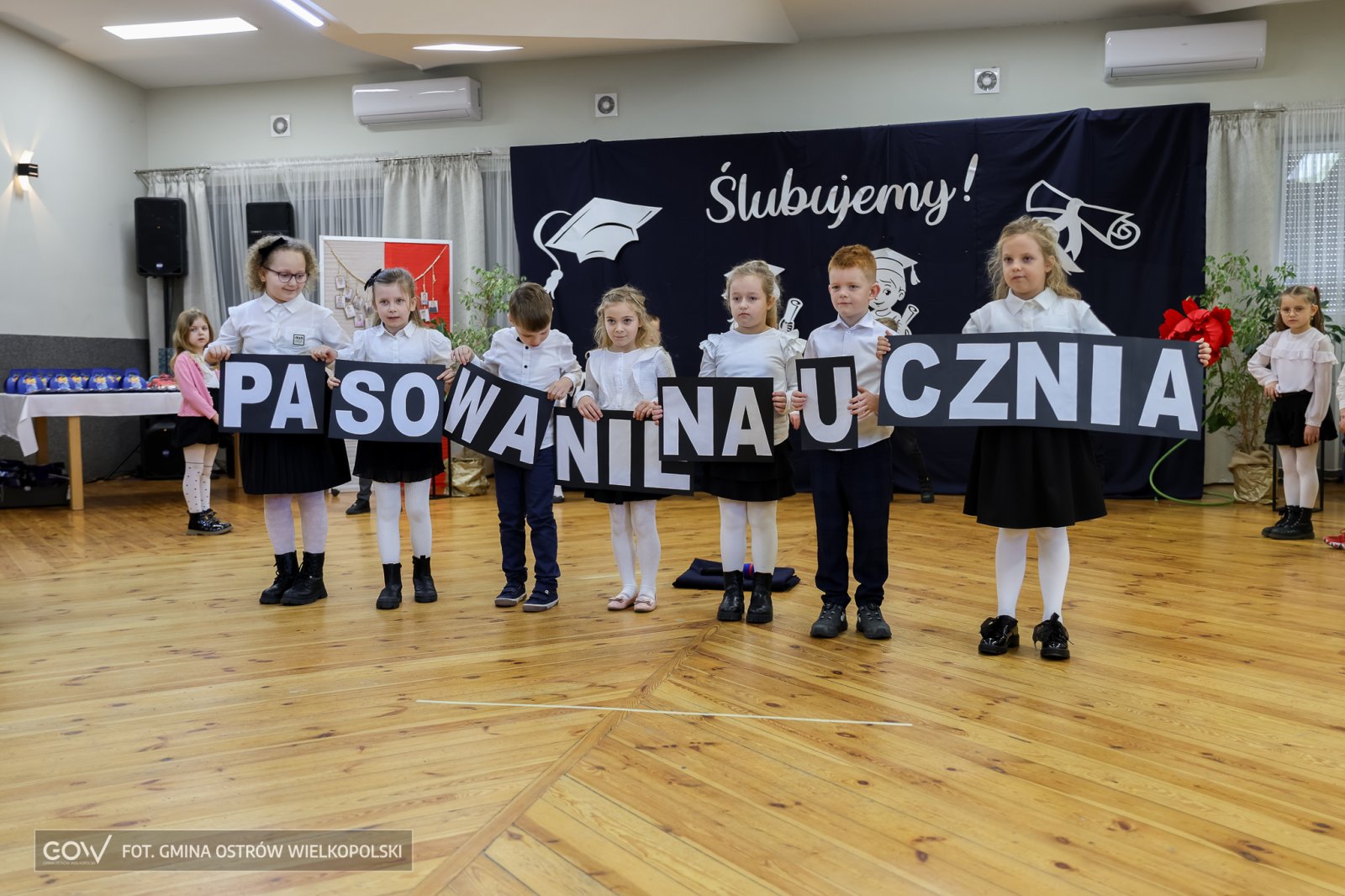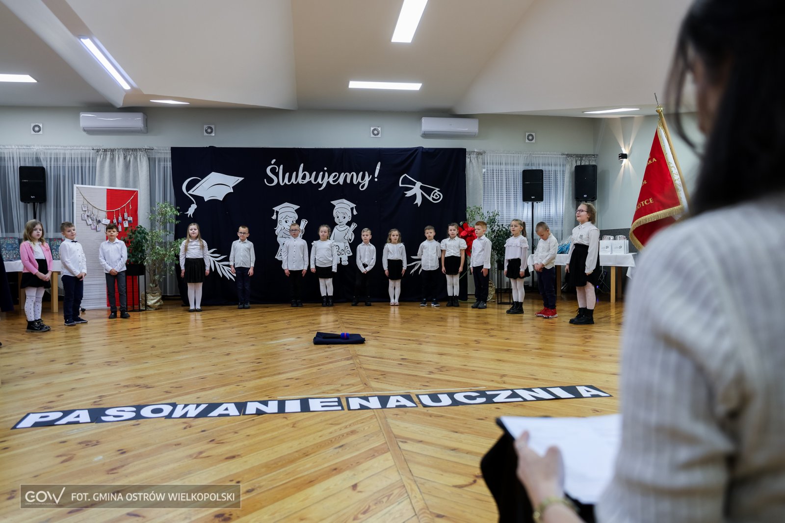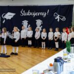 A potem było tylko lepiej. Pierwszaki recytowały jak z nut, śpiewająco zrealizowały repertuar przygotowany dla rodziców, którzy wszystko bacznie rejestrowali smartfonami, a także zaproszonych gości, wśród których znaleźli się liderzy życia społecznego z Sobótki i okolicznych sołectw. Poskładanie sylab z porozrzucanego wyrazu, który brzmiał „Pasowanie na ucznia” stworzyło oficjalnie przestrzeń dla złożenia przysięgi, a następnie oficjalnego pasowania wykonanego przez dyrektor Szkoły Podstawowej im. Ludwika Szymoniaka w Sobótce Gabrieli Wejman.