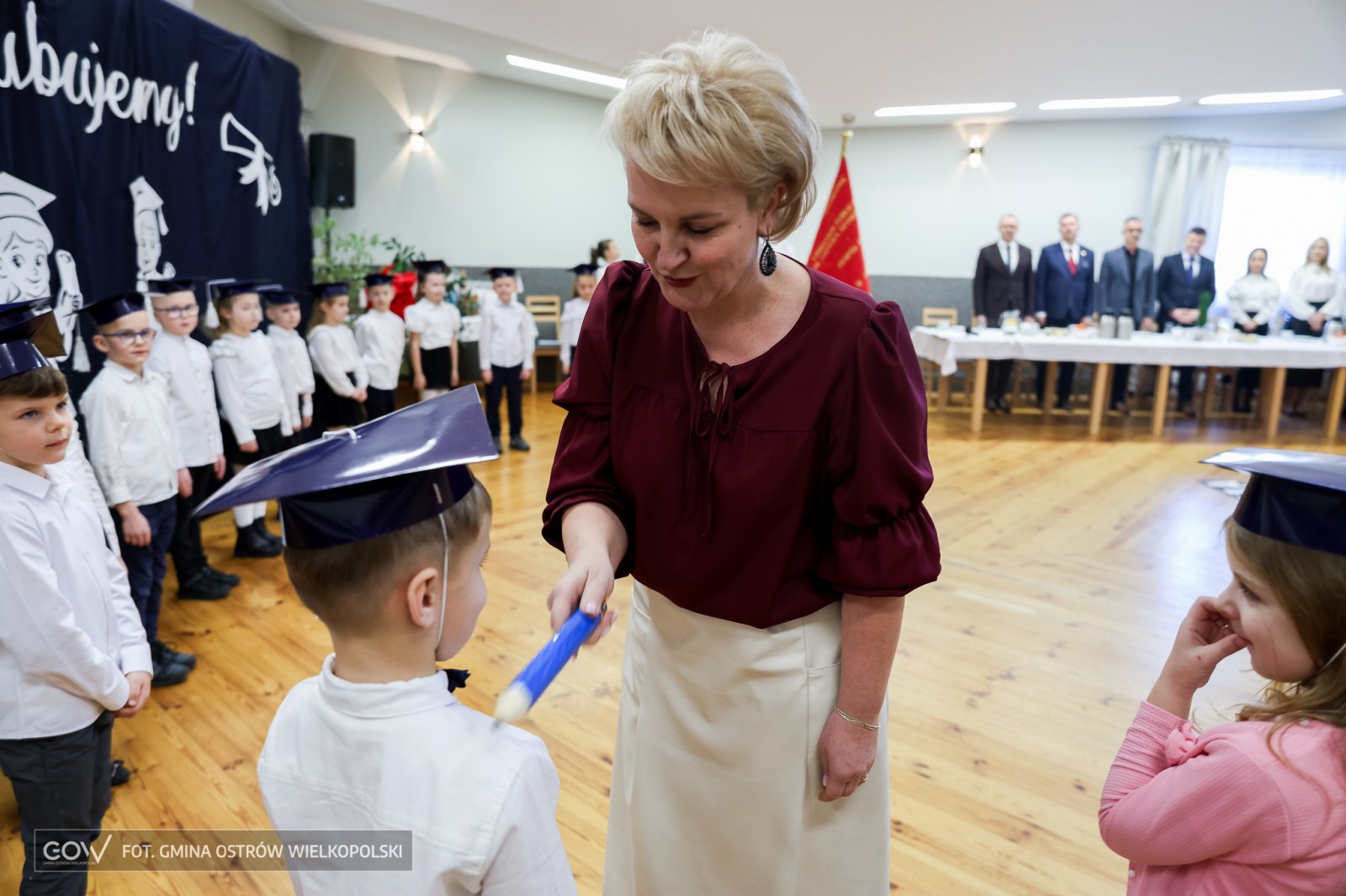 Z życzeniami oraz gratulacjami do Sobótki zawitał wójt Gminy Ostrów Wielkopolski Dariusz Pryczak. Świeżo upieczeni uczniowie otrzymali kilka prezentów, ale tego dnia to oni z sukcesem rozdawali podarki w postaci poczucia dumy rodziców oraz wychowawczyni, która cały ten występ przygotowała.