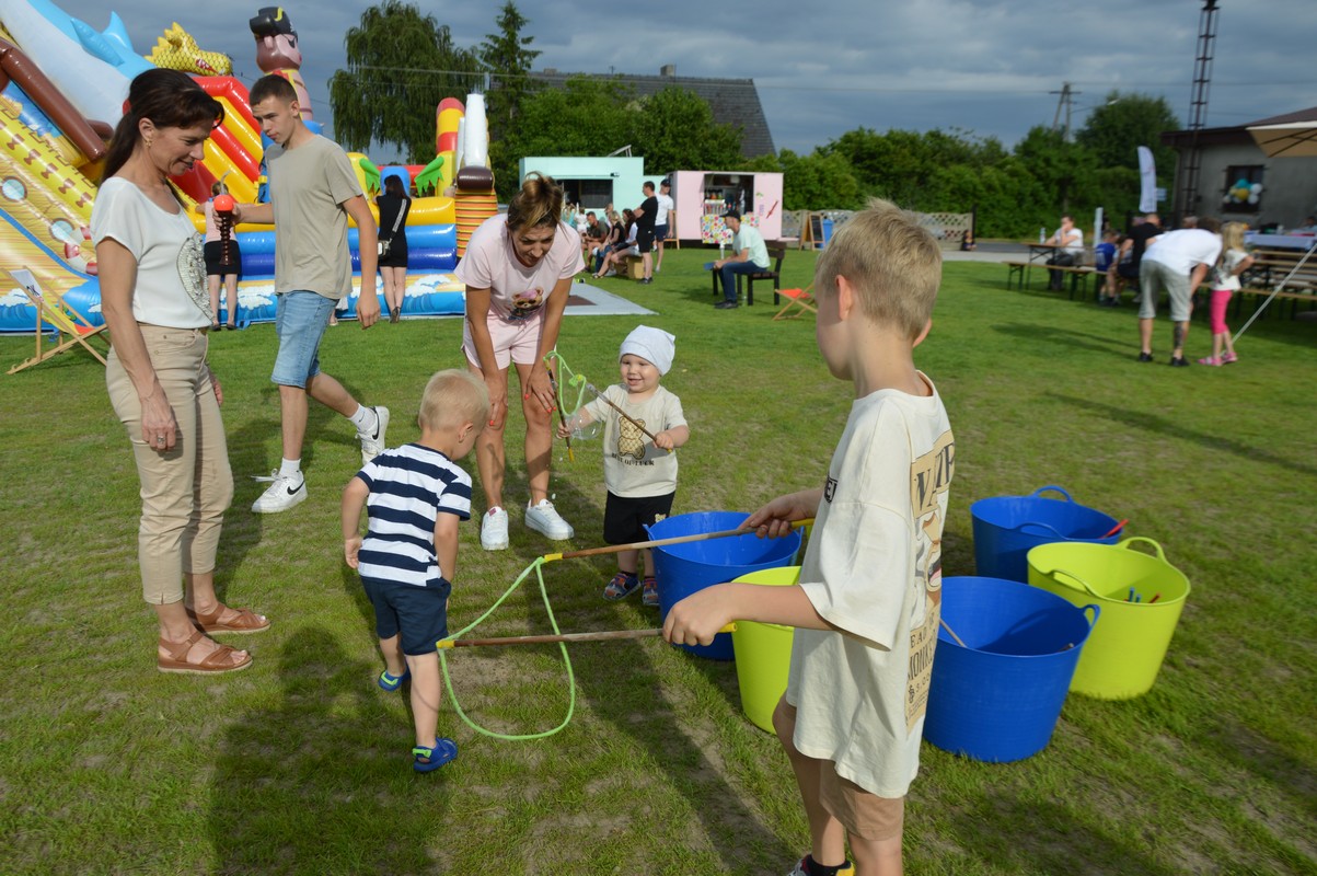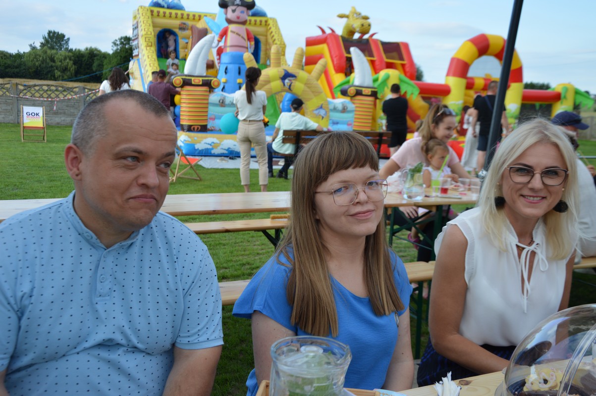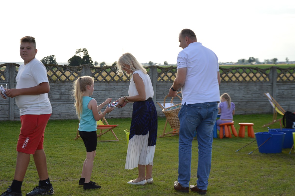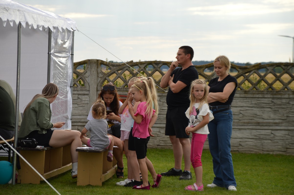 Wśród gości znaleźli się Dariusz Pryczak, wójt Gminy Ostrów Wlkp. oraz Mateusz Kołeczko, radny Powiatu Ostrowskiego i osoba odpowiedzialna za współpracę z organizacjami pozarządowymi w Gminie Ostrów Wlkp. Dla młodszych zostały przygotowane atrakcje w postaci dmuchanego zamku, możliwości pomalowania twarzy i zdobycia ozdoby w postaci tatuażu, a także cukrowej waty. Dzieci mogły robić bańki mydlane, kolorować, grać w piłkę oraz odpoczywać na leżakach użyczonych przez Gminny Ośrodek Kultury w Wysocku Wielkim. Do wspólnych, aranżowanych zdjęć zapraszała fotobudka. Przy muzyce goście delektowali się pysznościami w postaci wypieków, chleba ze smalcem oraz kiełbasek z grilla przygotowanych przez członków koła gospodyń wiejskich. Dodatkowe stoiska gastronomiczne oferowały lody i przekąski. Sołtys Ilona Mikołajczyk oraz radny Mateusz Kołeczko obdarowali dzieci gadżetami i upominkami promującymi Gminę Ostrów Wlkp. Kulminacyjną atrakcją, która spadła na bawiących się prosto z nieba był deszcz cukierków zrzucanych z paralotni. Wspólny czas spędzony na rozmowach, zabawie i biesiadowaniu w gronie rodzinnym, znajomych i przyjaciół z pewnością pozostanie na długo w pamięci wszystkich uczestników festynu wakacyjnego w Będzieszynie.