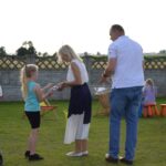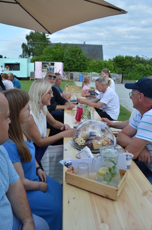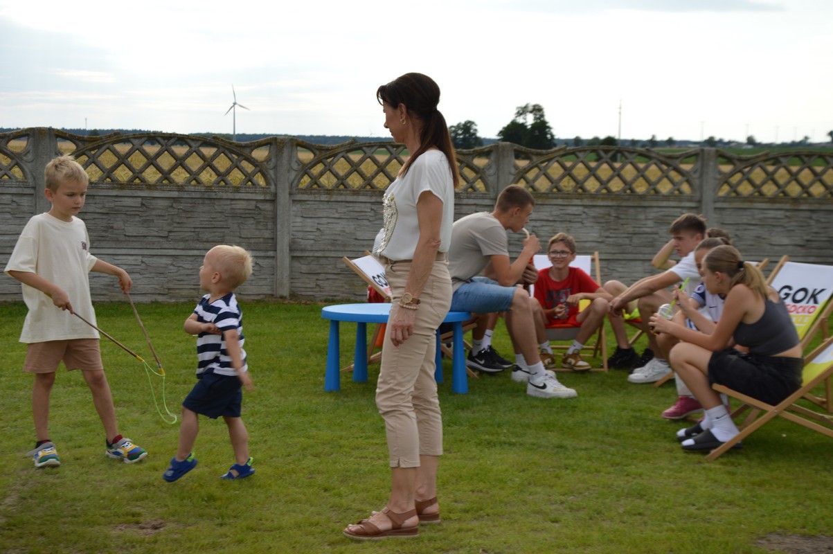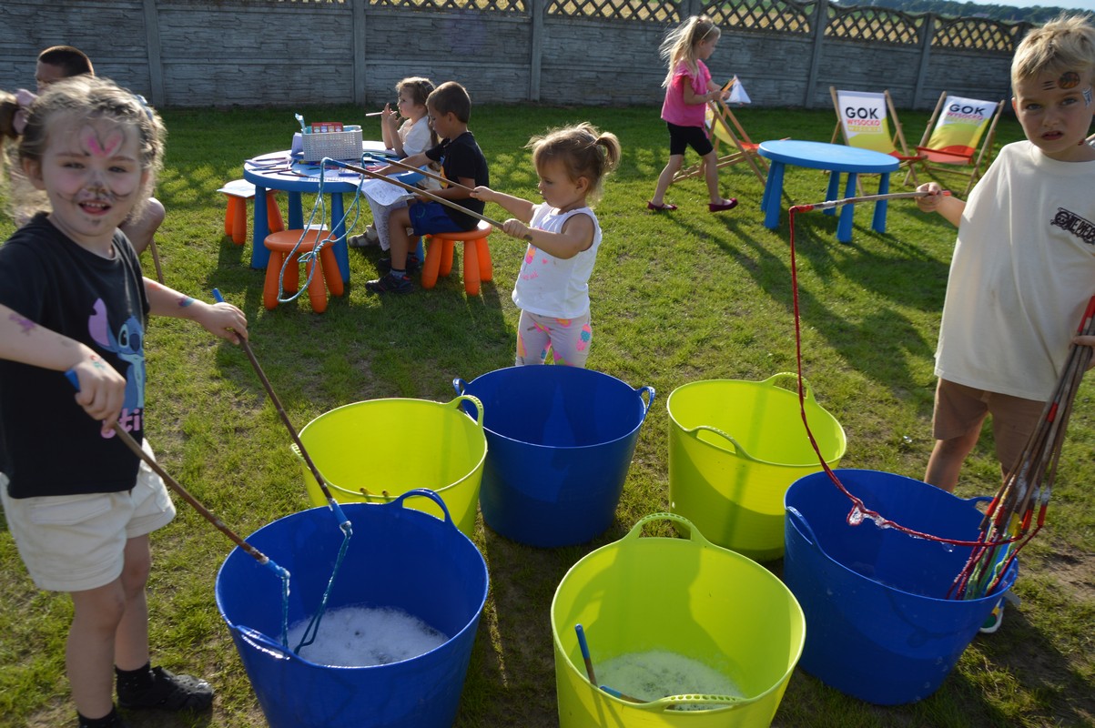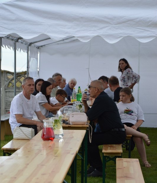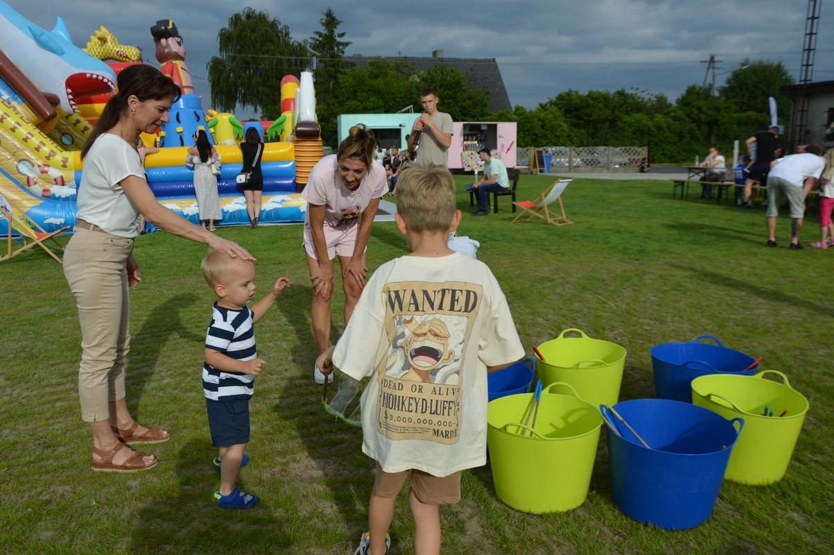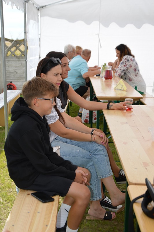 Wśród gości znaleźli się Dariusz Pryczak, wójt Gminy Ostrów Wlkp. oraz Mateusz Kołeczko, radny Powiatu Ostrowskiego i osoba odpowiedzialna za współpracę z organizacjami pozarządowymi w Gminie Ostrów Wlkp. Dla młodszych zostały przygotowane atrakcje w postaci dmuchanego zamku, możliwości pomalowania twarzy i zdobycia ozdoby w postaci tatuażu, a także cukrowej waty. Dzieci mogły robić bańki mydlane, kolorować, grać w piłkę oraz odpoczywać na leżakach użyczonych przez Gminny Ośrodek Kultury w Wysocku Wielkim. Do wspólnych, aranżowanych zdjęć zapraszała fotobudka. Przy muzyce goście delektowali się pysznościami w postaci wypieków, chleba ze smalcem oraz kiełbasek z grilla przygotowanych przez członków koła gospodyń wiejskich. Dodatkowe stoiska gastronomiczne oferowały lody i przekąski. Sołtys Ilona Mikołajczyk oraz radny Mateusz Kołeczko obdarowali dzieci gadżetami i upominkami promującymi Gminę Ostrów Wlkp. Kulminacyjną atrakcją, która spadła na bawiących się prosto z nieba był deszcz cukierków zrzucanych z paralotni. Wspólny czas spędzony na rozmowach, zabawie i biesiadowaniu w gronie rodzinnym, znajomych i przyjaciół z pewnością pozostanie na długo w pamięci wszystkich uczestników festynu wakacyjnego w Będzieszynie.