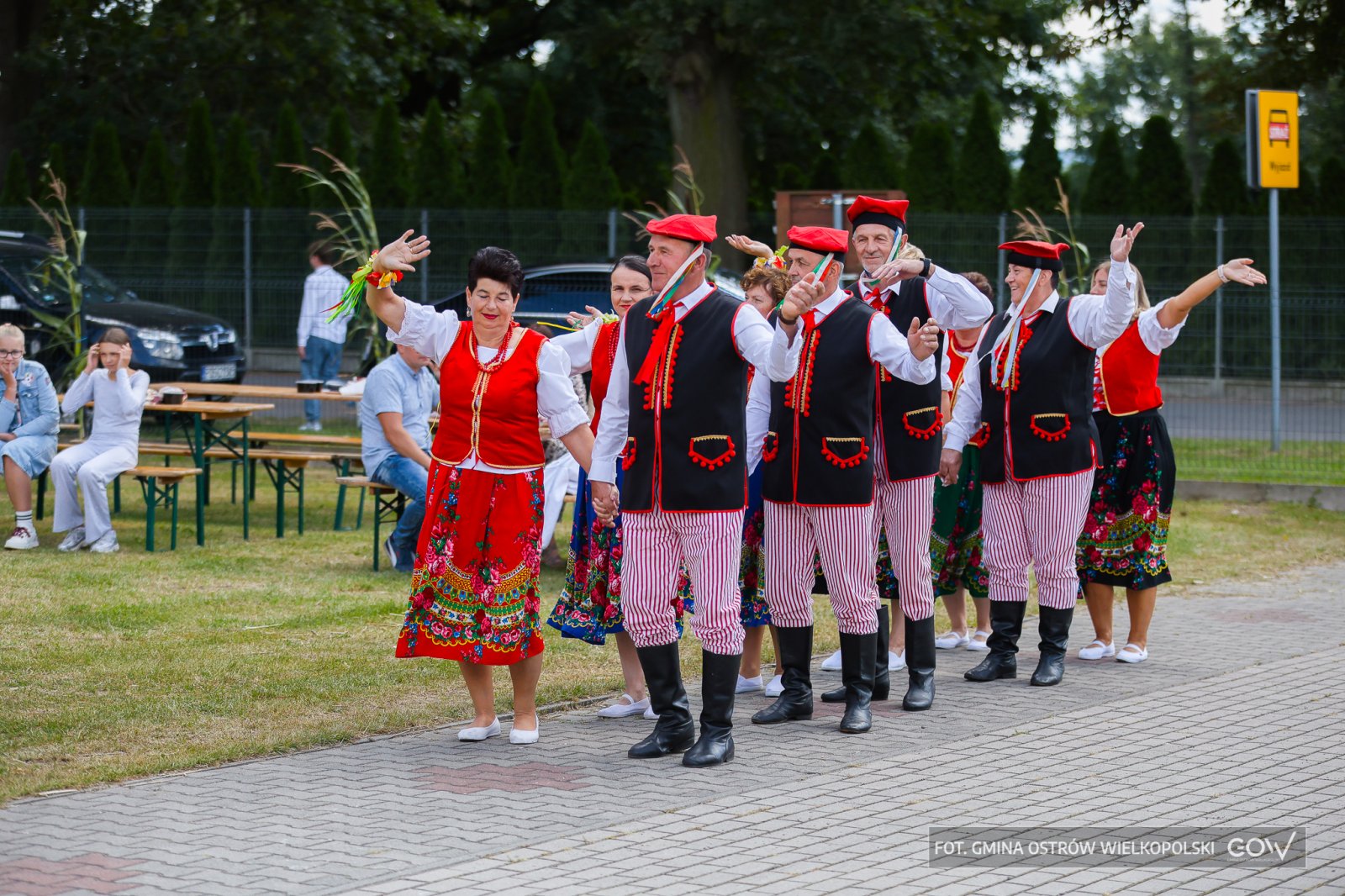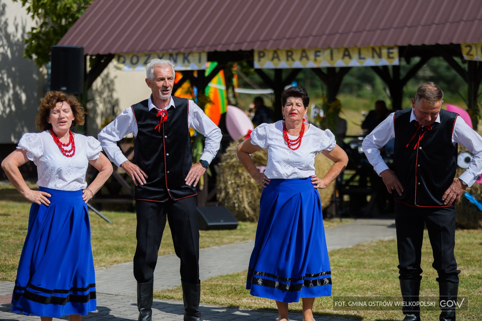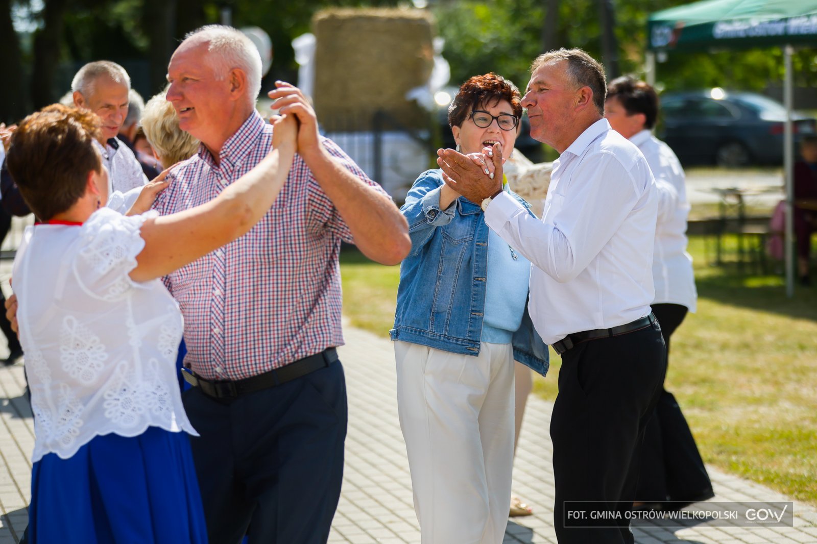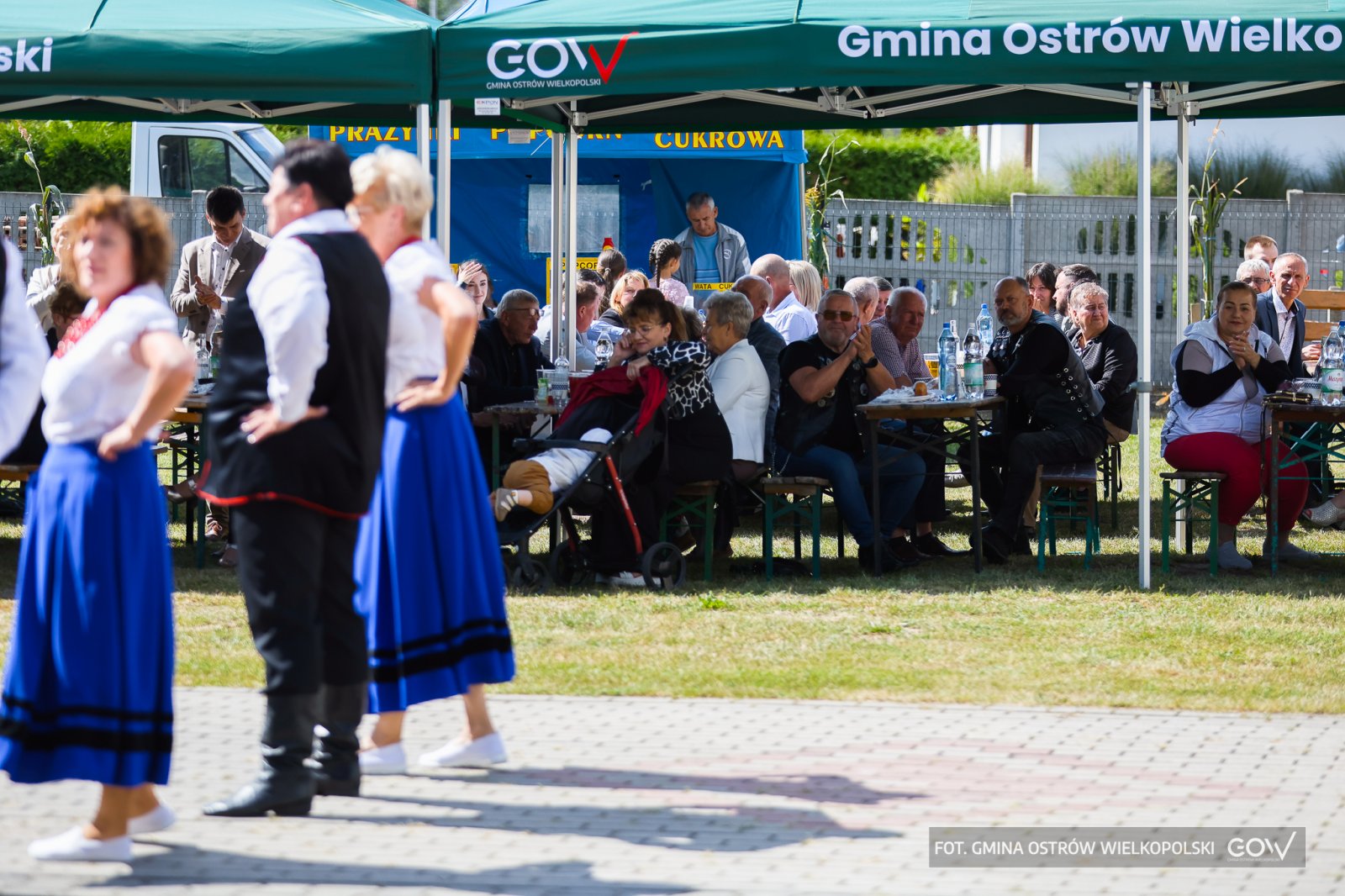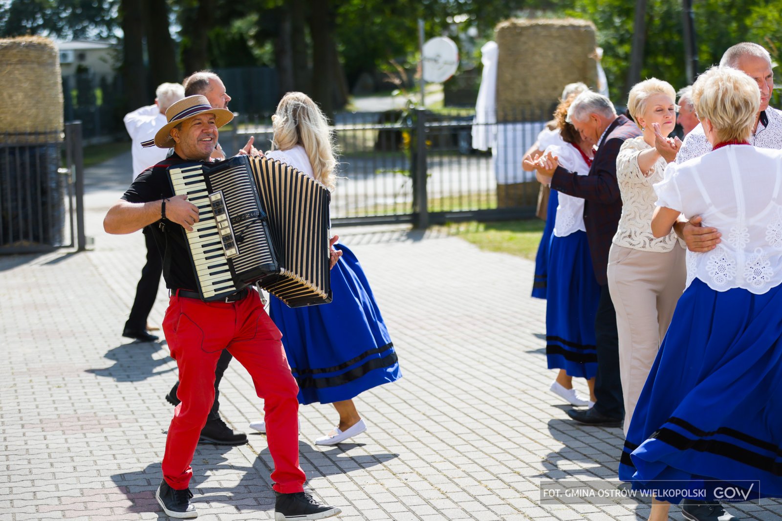 Starostowie dożynek, Magdalena Fibik i Krzysztof Brdęk, podzielili się z mieszkańcami symbolicznym chlebem, co podkreśliło charakter święta plonów.
