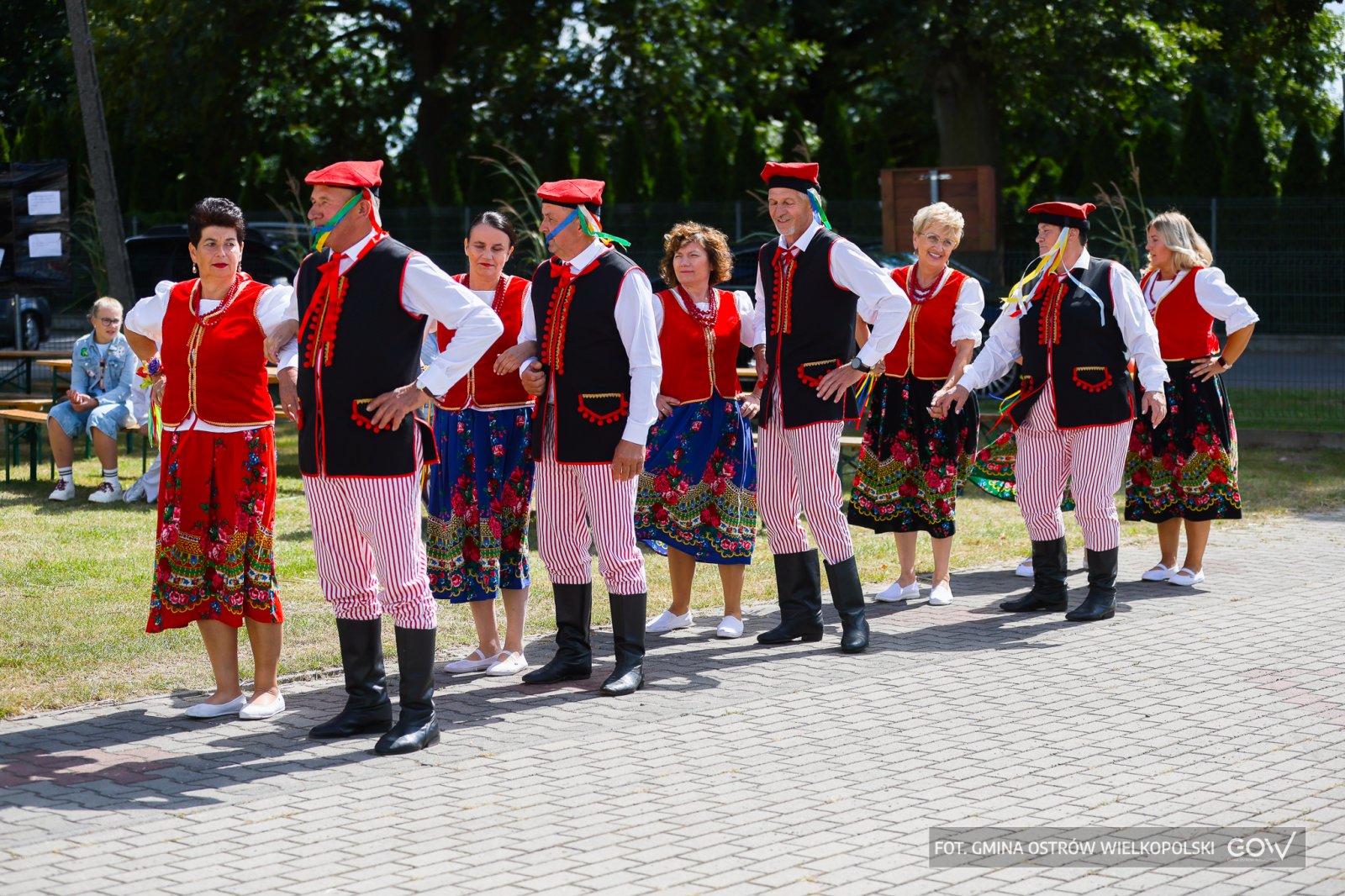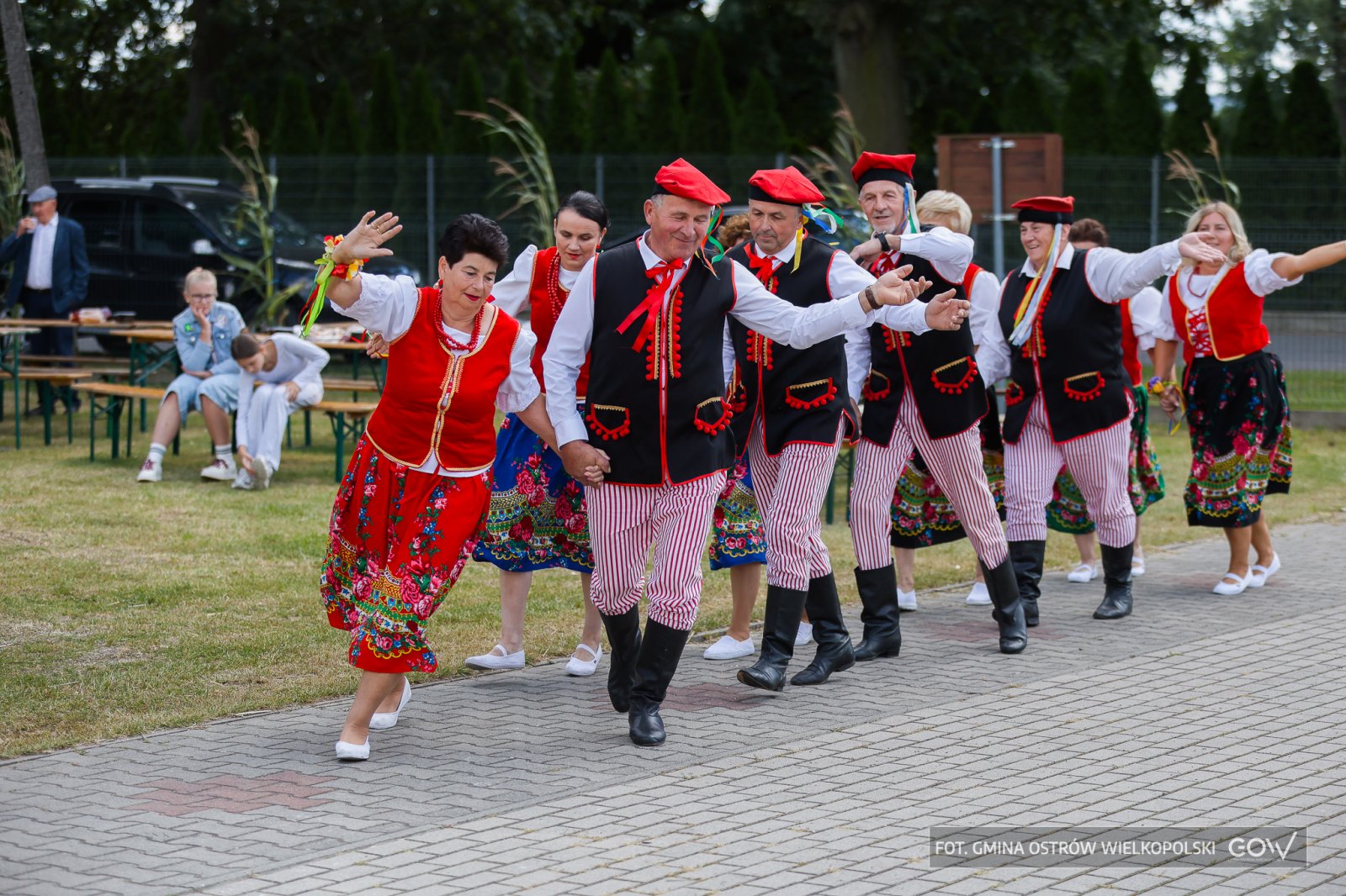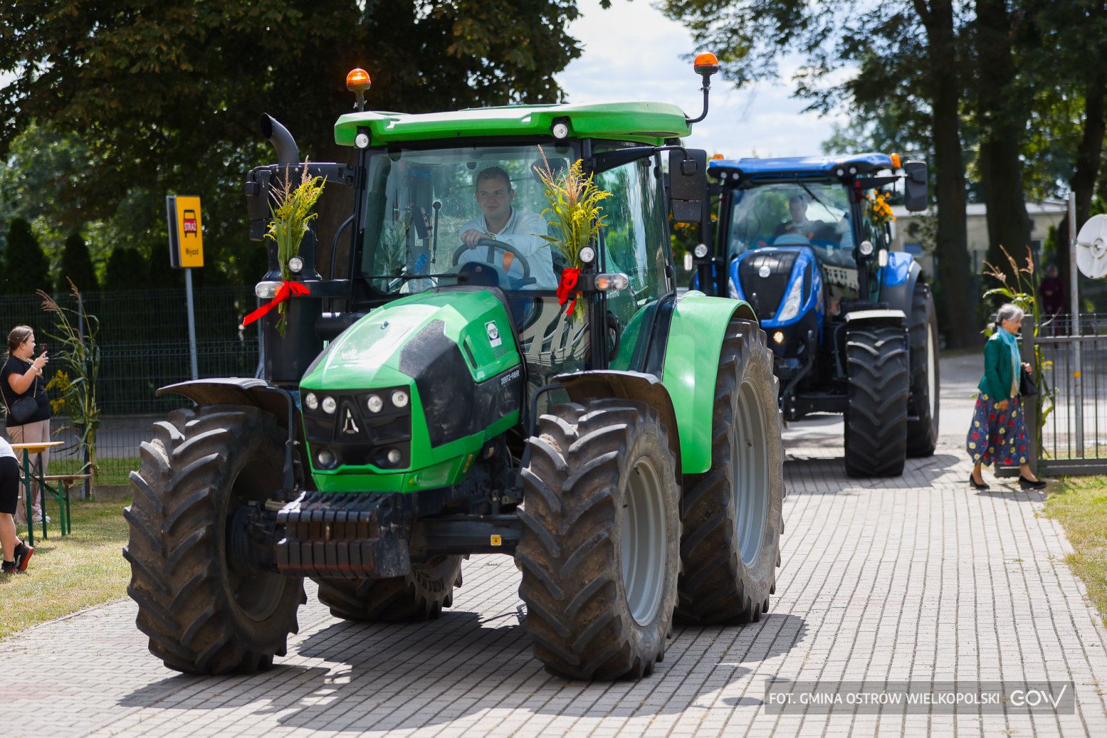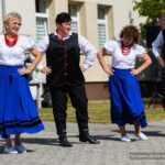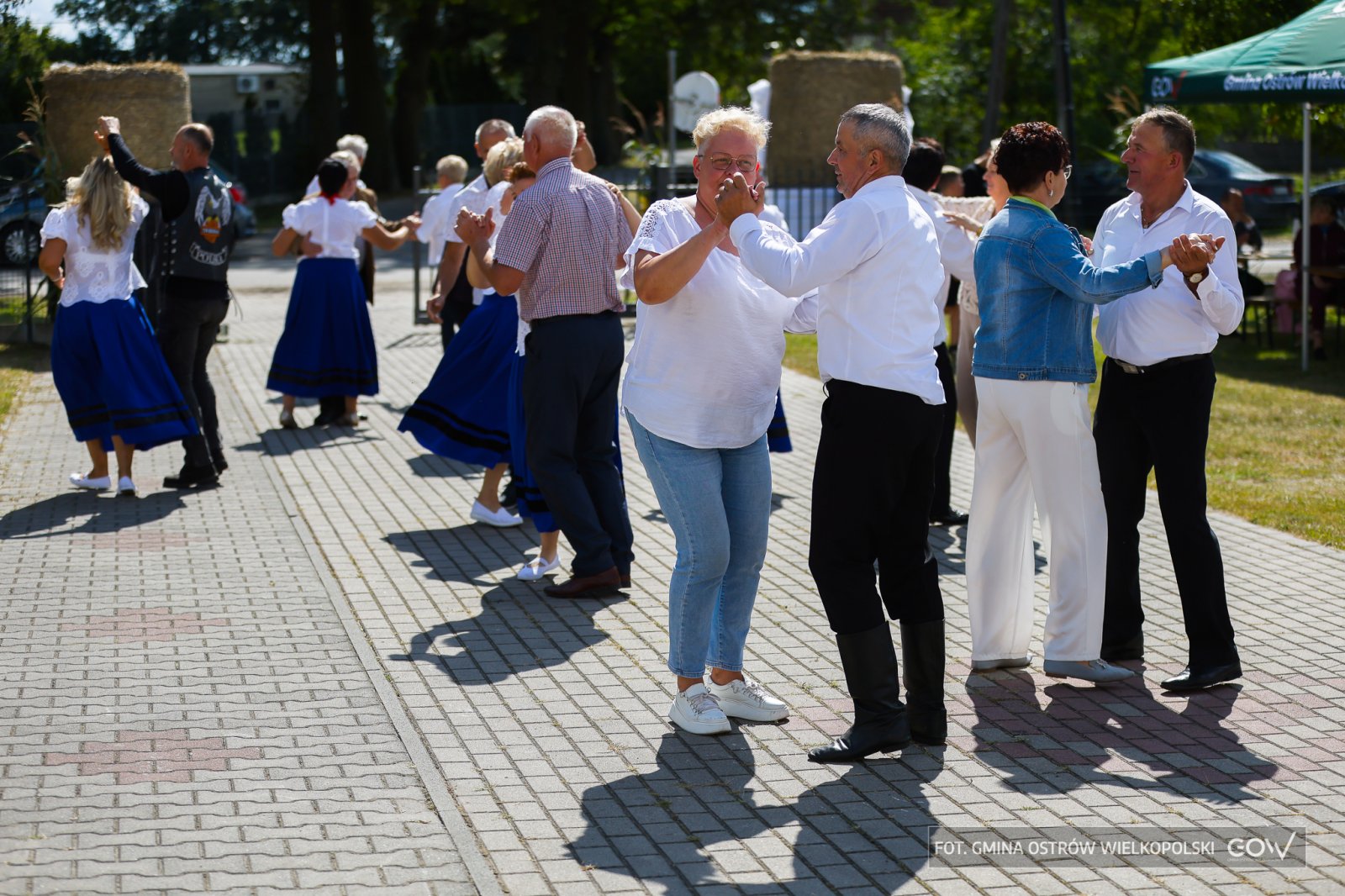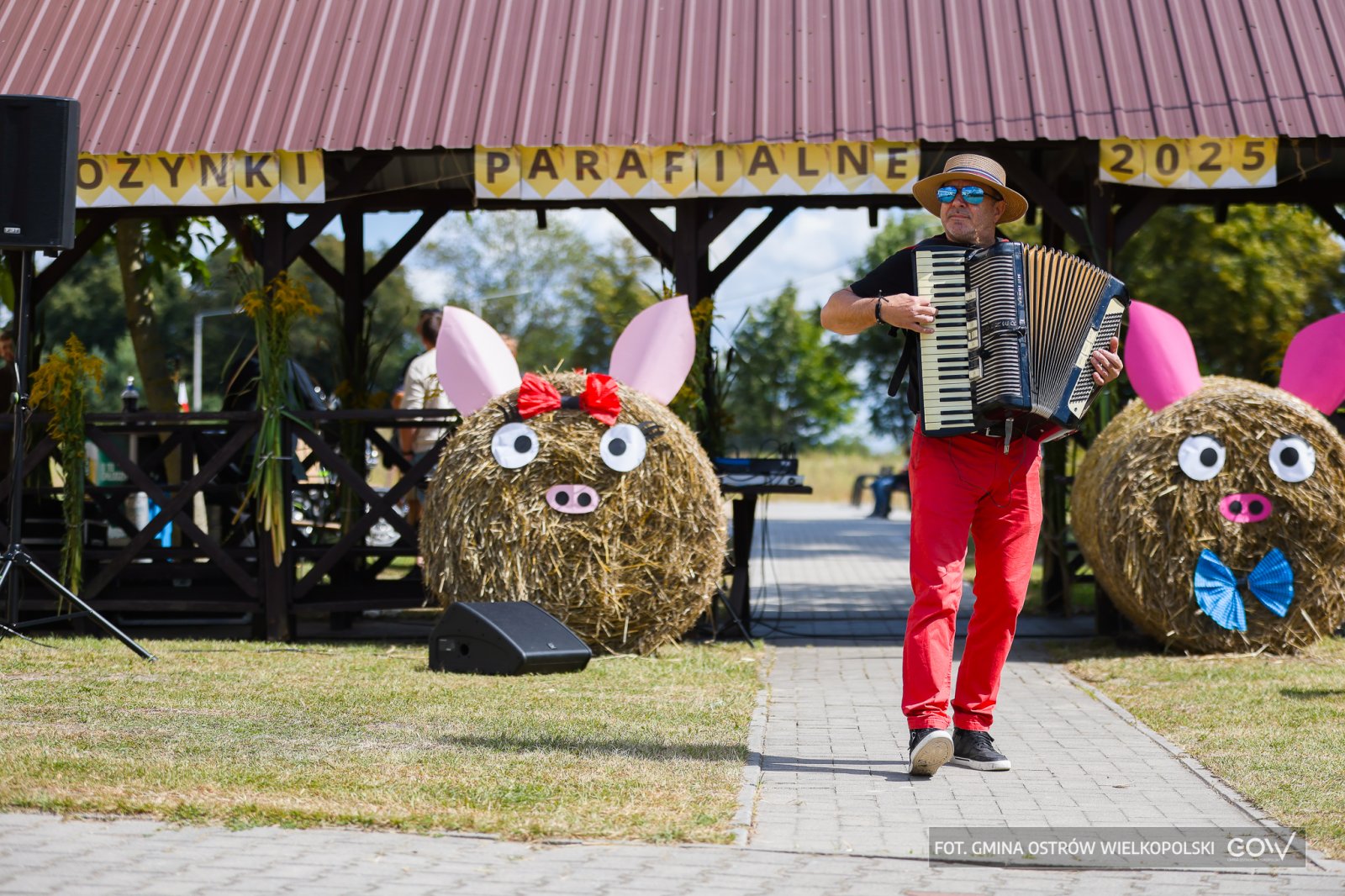 Starostowie dożynek, Magdalena Fibik i Krzysztof Brdęk, podzielili się z mieszkańcami symbolicznym chlebem, co podkreśliło charakter święta plonów.