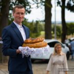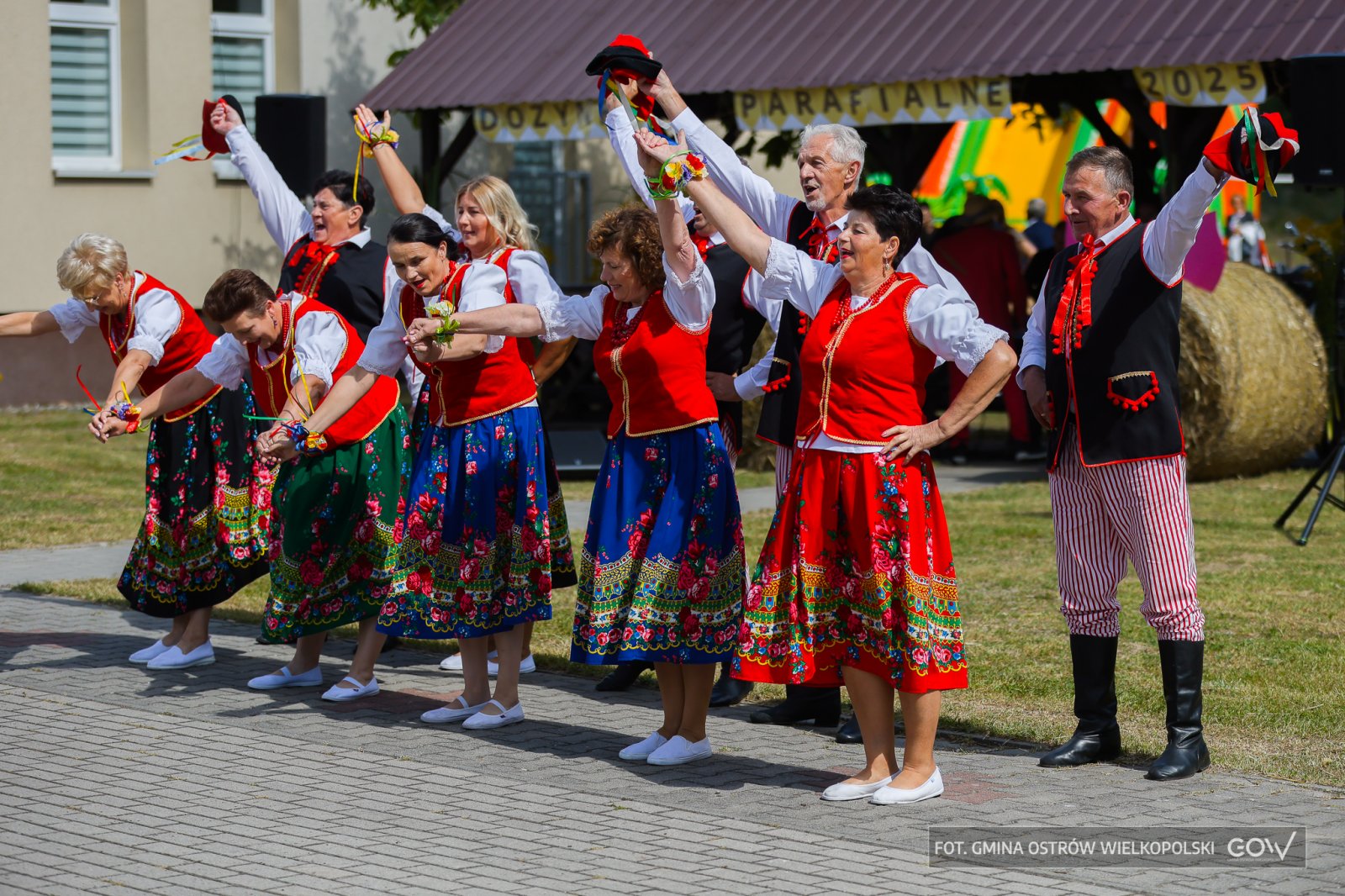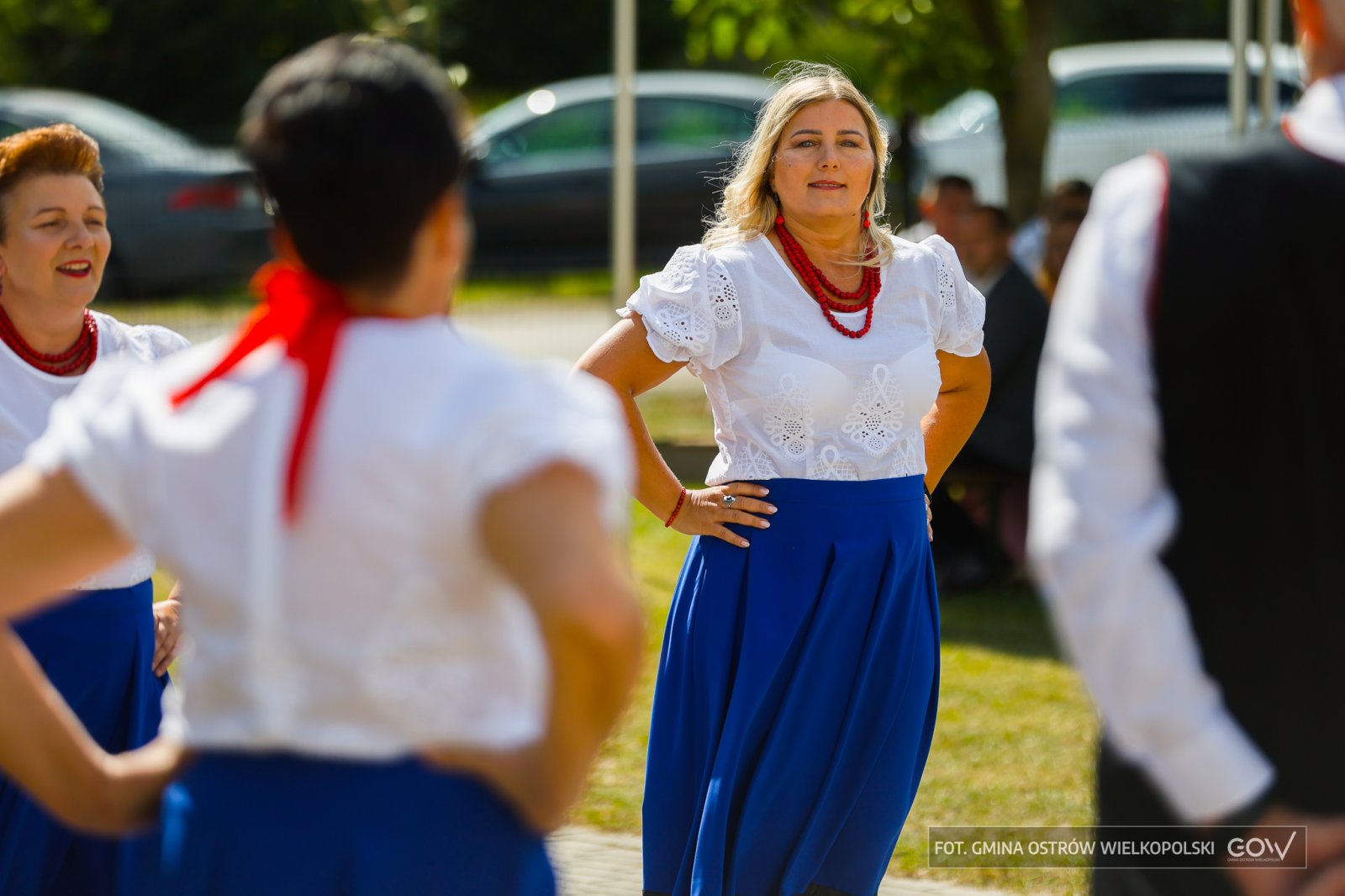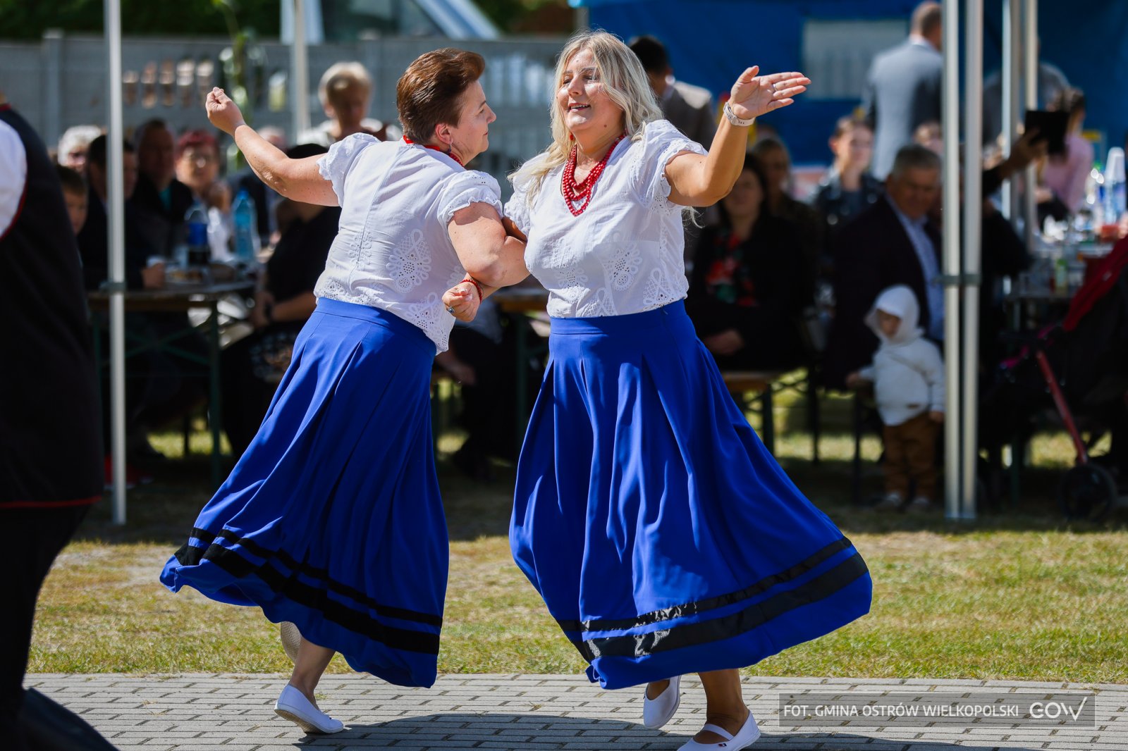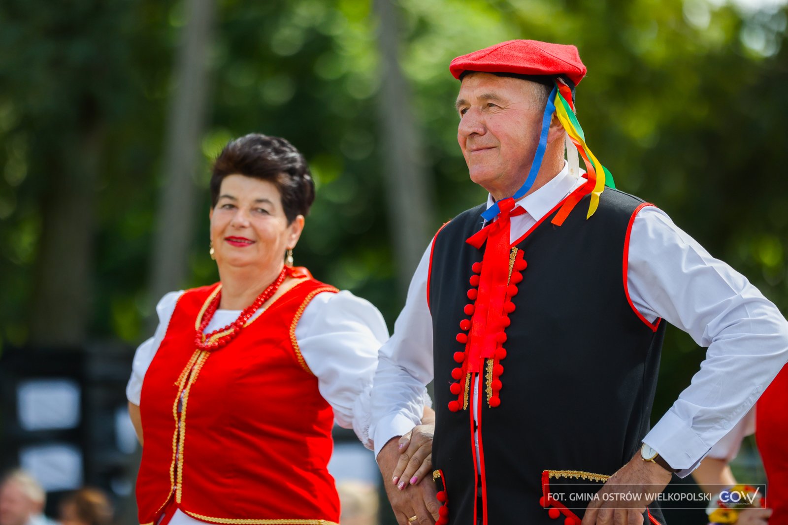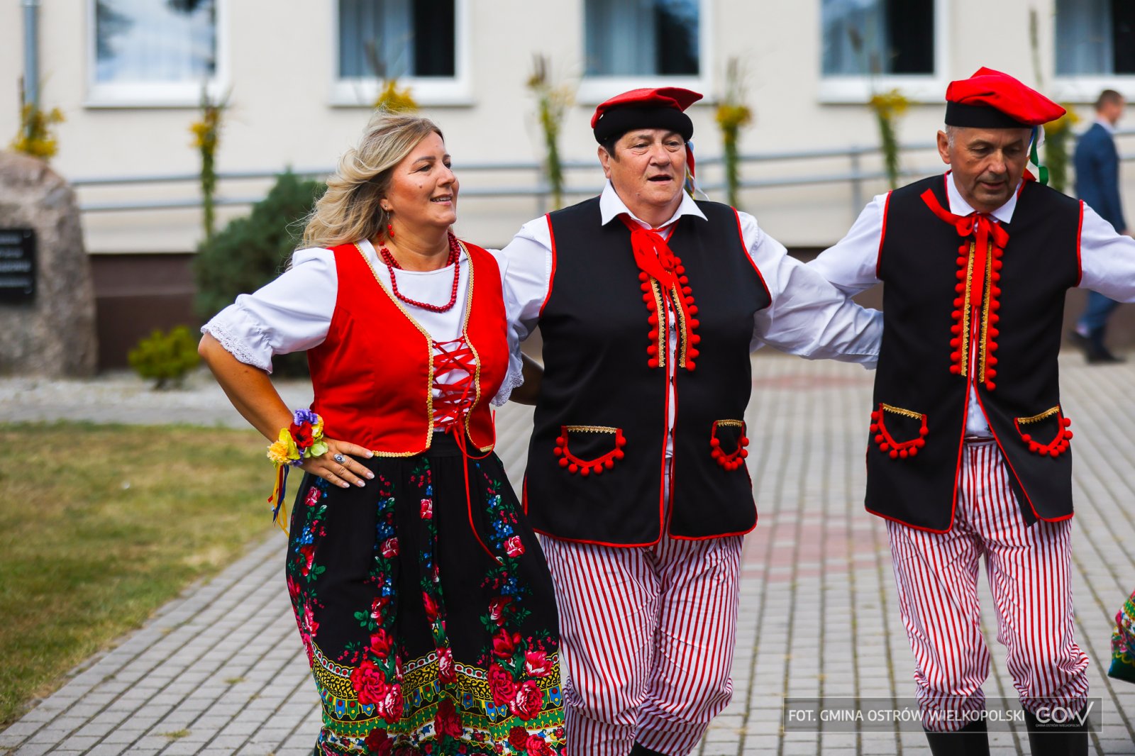 Starostowie dożynek, Magdalena Fibik i Krzysztof Brdęk, podzielili się z mieszkańcami symbolicznym chlebem, co podkreśliło charakter święta plonów.