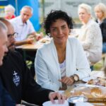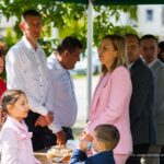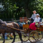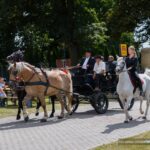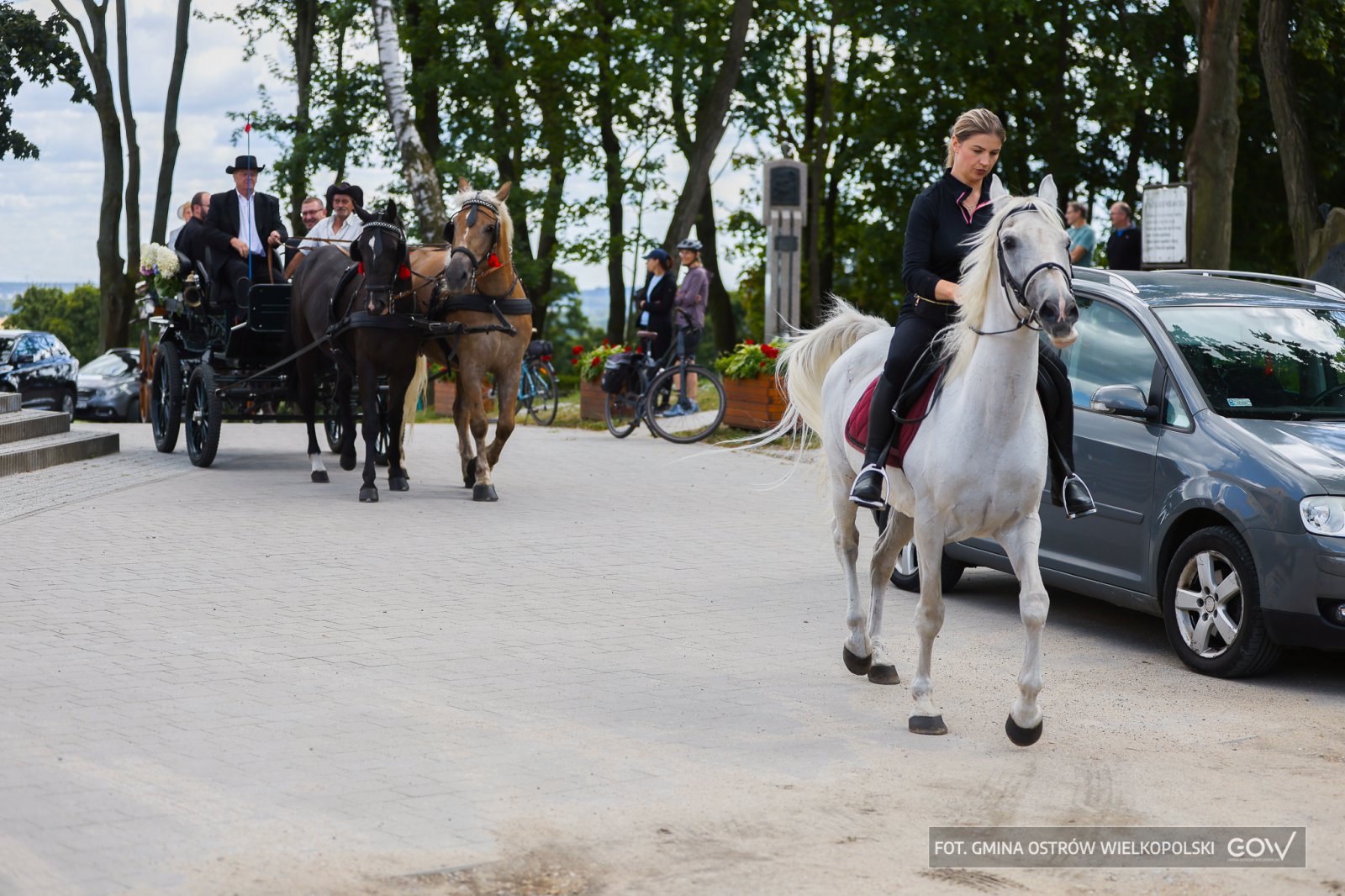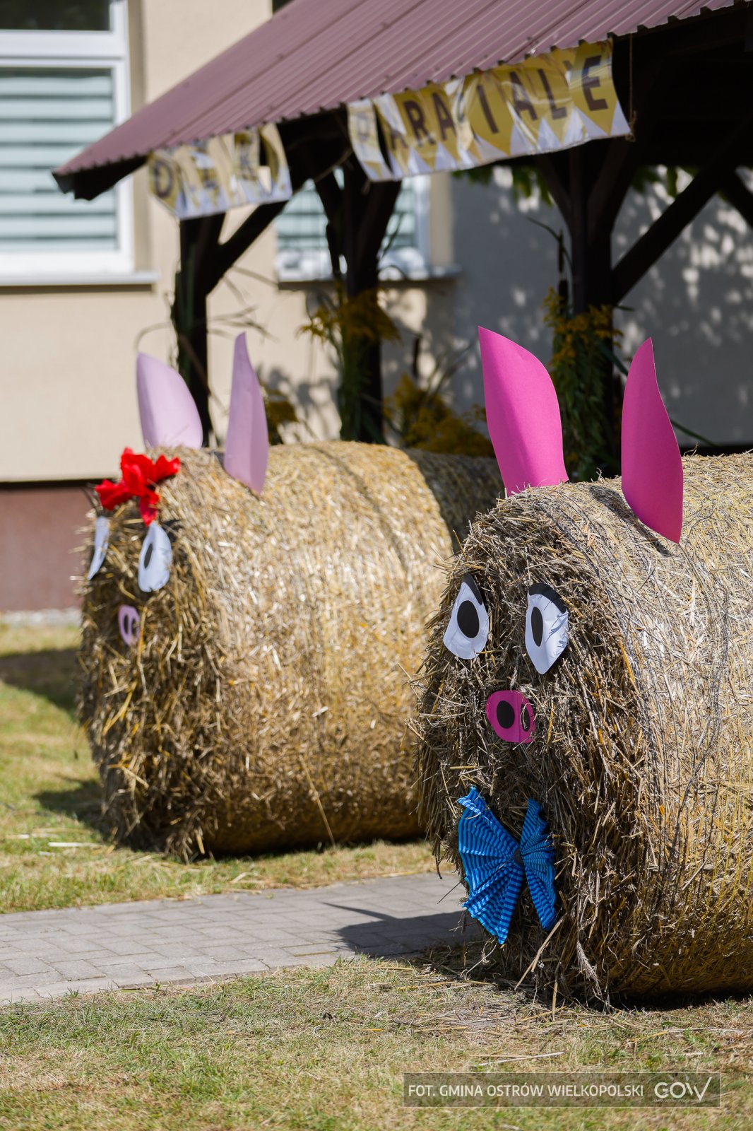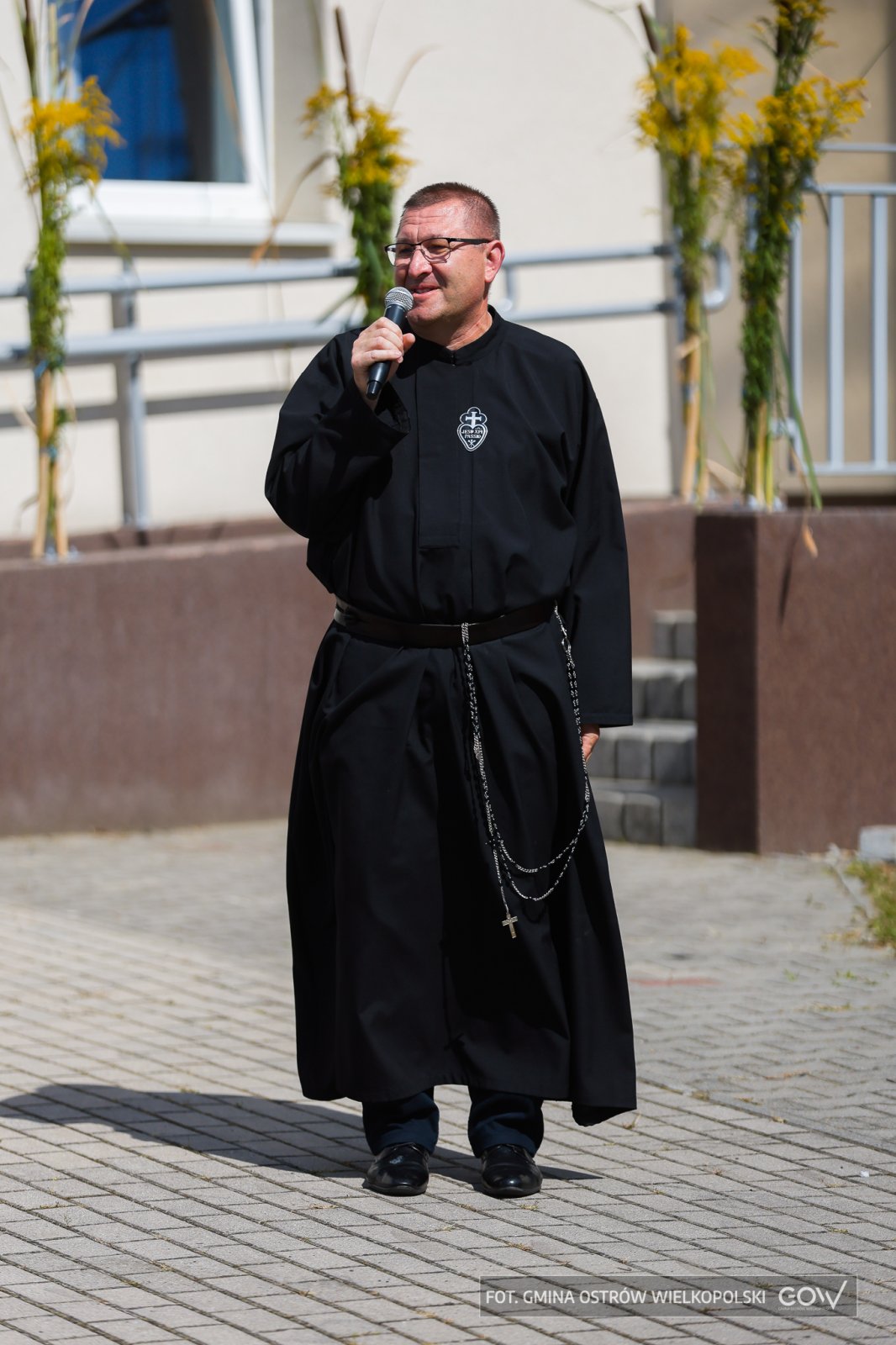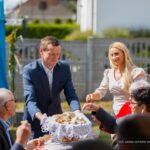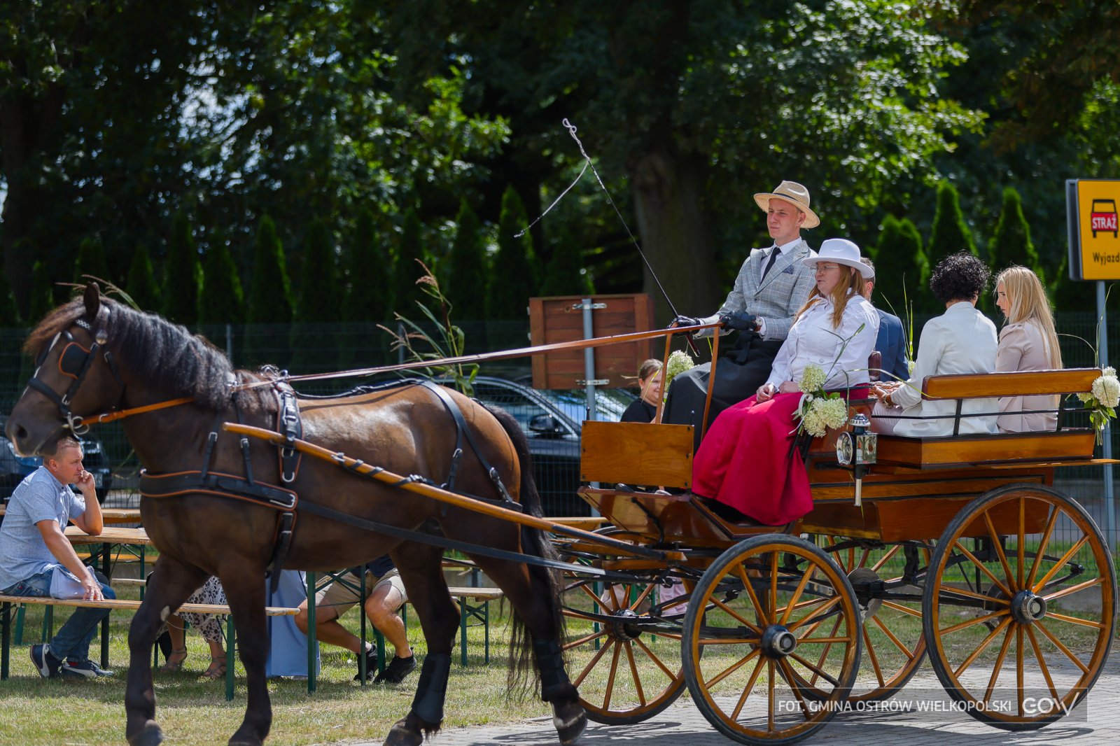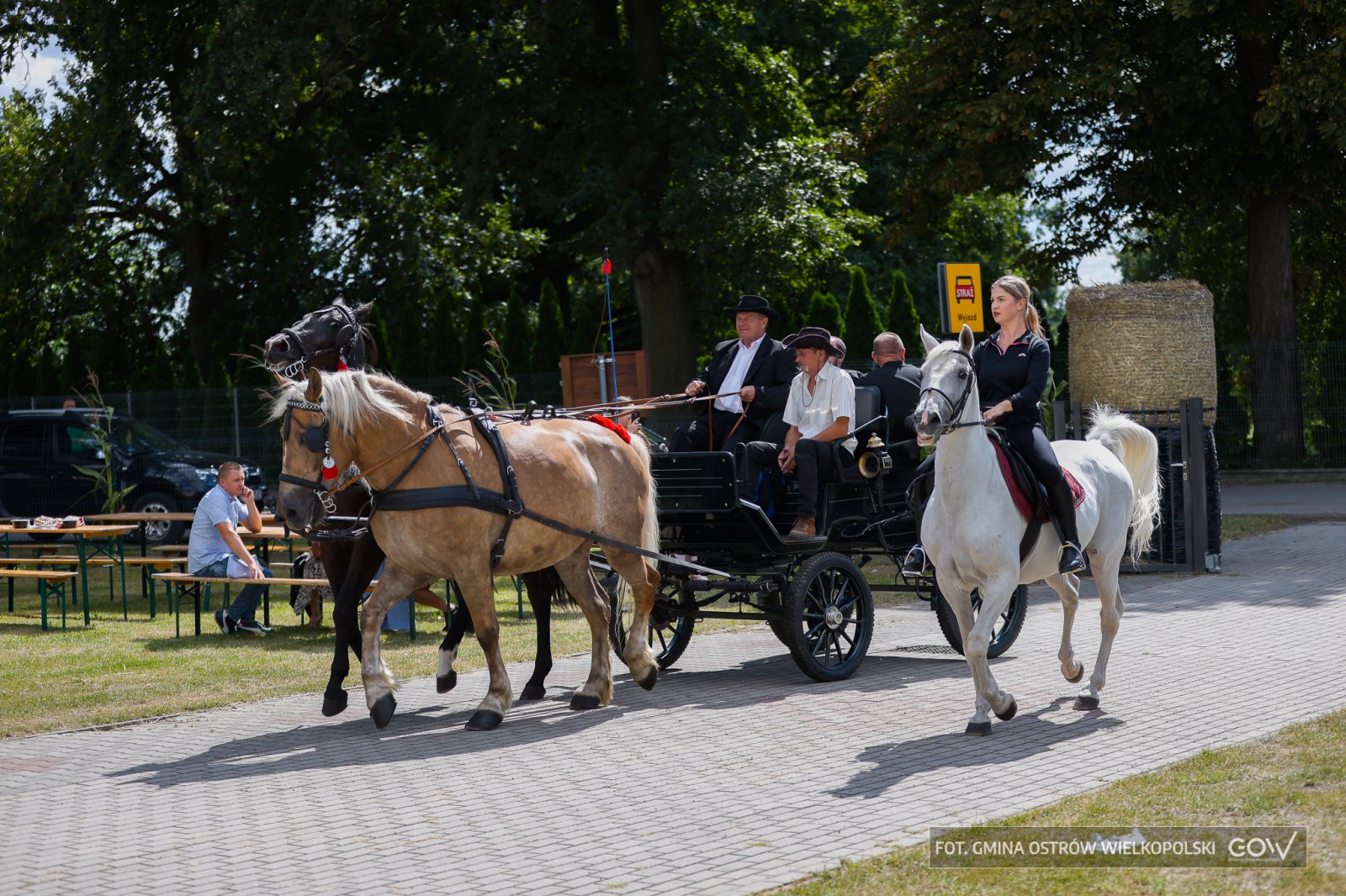 Starostowie dożynek, Magdalena Fibik i Krzysztof Brdęk, podzielili się z mieszkańcami symbolicznym chlebem, co podkreśliło charakter święta plonów.
