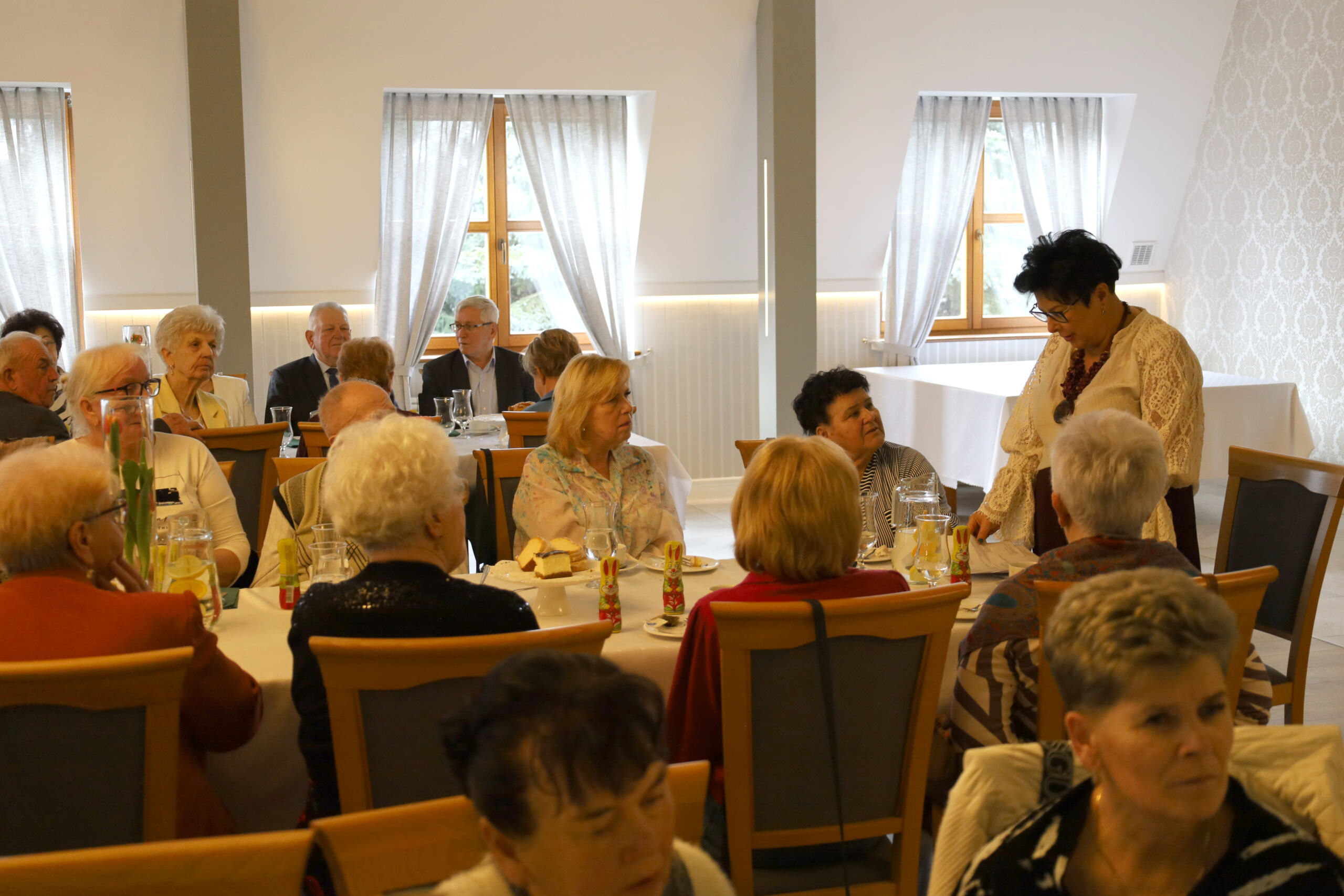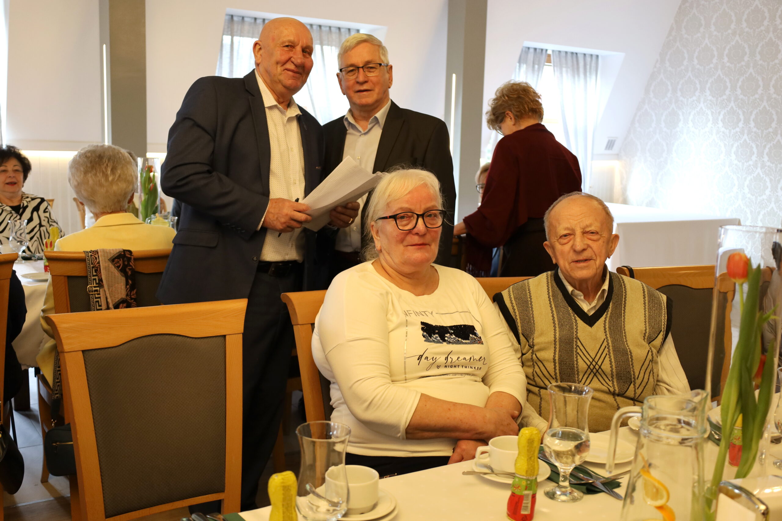 W restauracji Borowianka zgromadzili się członkowie Koła nr 4 Polskiego Związku Emerytów i Rencistów podczas uroczystego śniadania wielkanocnego. Atmosfera była rodzinna, pełna ciepła i radości.