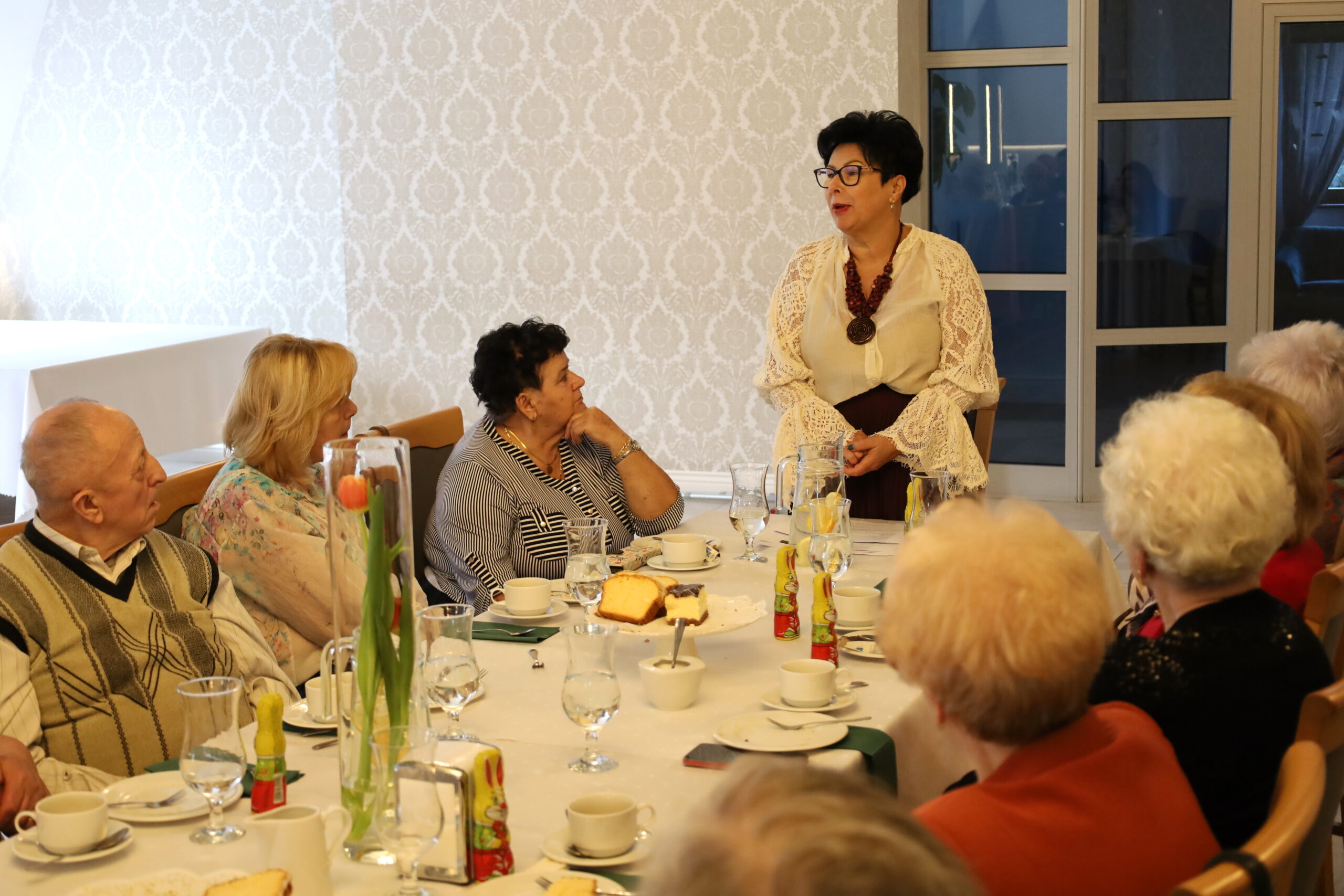 Śniadanie zgromadziło licznych uczestników, którzy wspólnie celebrowali nadchodzące święta wielkanocne. Na stole nie zabrakło tradycyjnych potraw świątecznych, między innymi był: żurek, tradycyjna sałatka jarzynowa, jajka oraz obowiązkowo baba wielkanocna. Każdy z seniorów otrzymał również słodki upominek – czekoladowego zająca. Uroczystość dopełnił nastrojowy występ Izabeli Staroń. Ważnym elementem spotkania był wykład Marii Tomaszewskiej poświęcony chorobom serca, która w przystępny sposób omówiła najczęstsze zagrożenia, a także podzieliła się wskazówkami dotyczącymi profilaktyki i dbania o zdrowie.