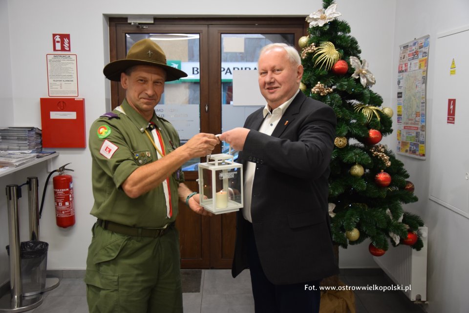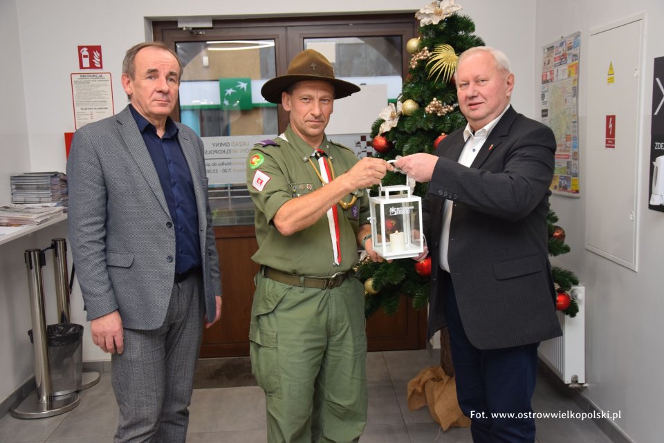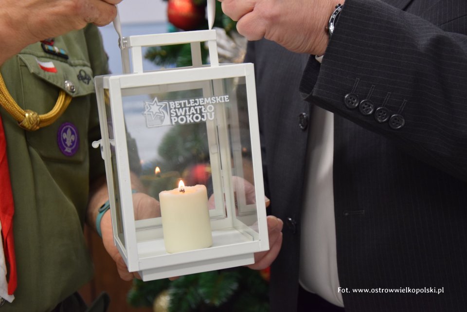 Betlejemskie Światło Pokoju dotarło do Gminy Ostrów Wielkopolski. Betlejemskie Światło Pokoju dotarło do Gminy Ostrów Wielkopolski. W środę 21 grudnia symboliczne światełko zostało dostarczone do budynku Urzędu Gminy przez harcerzy, reprezentowanych przez dh Jerzego Hnatyka, gdzie zostało odebrane przez wójta Piotra Kuroszczyka i zastępcę Antoniego Hadrysia.