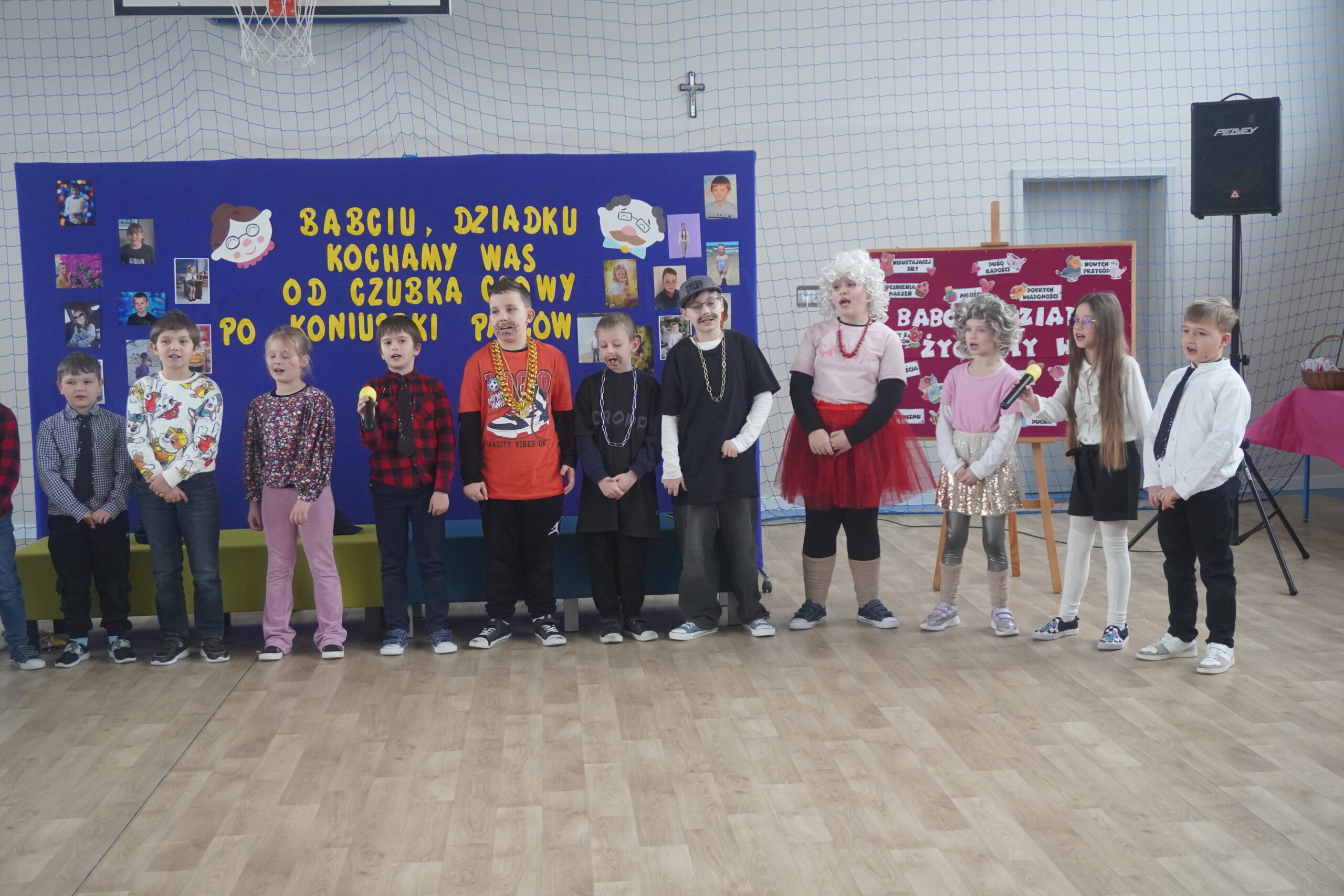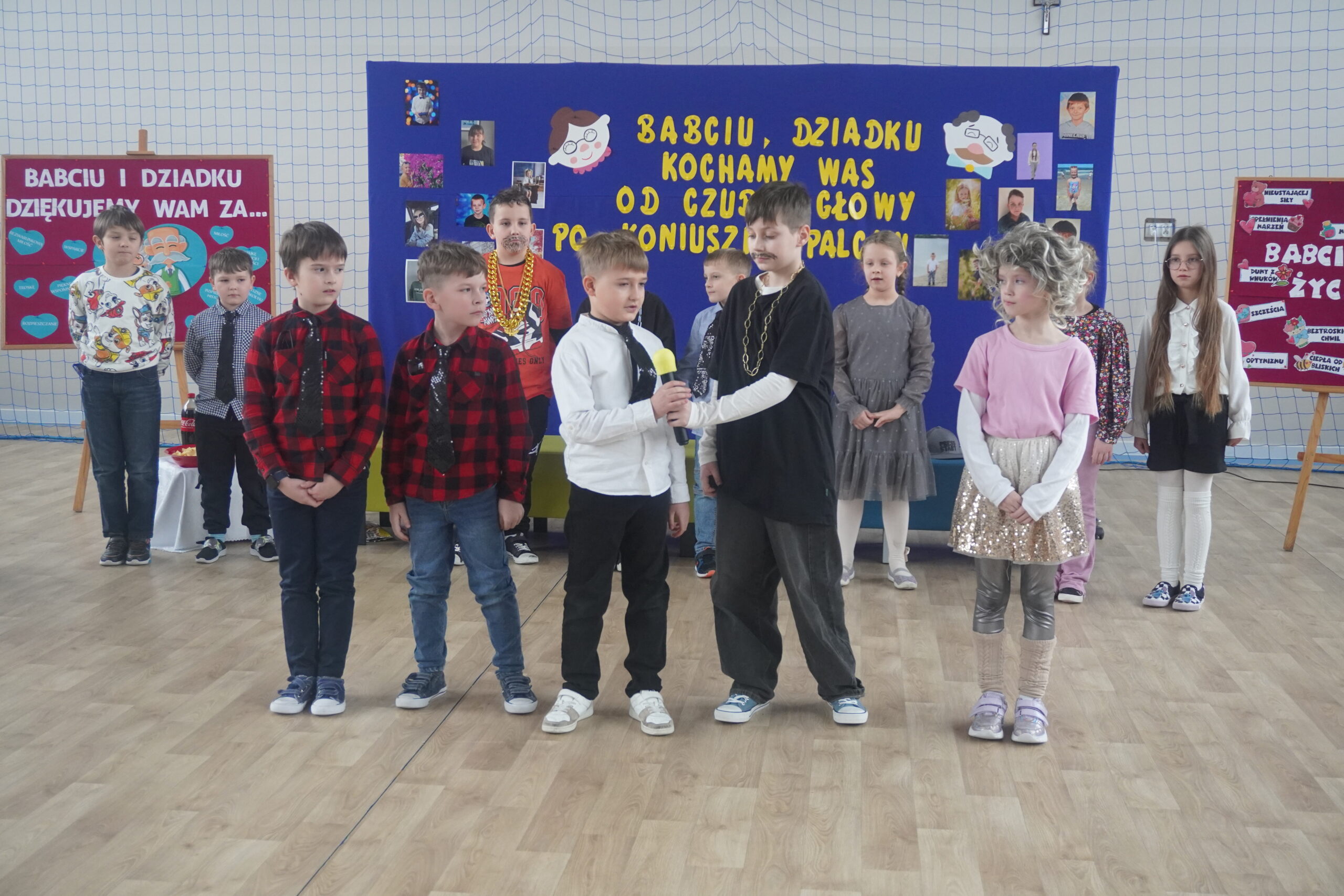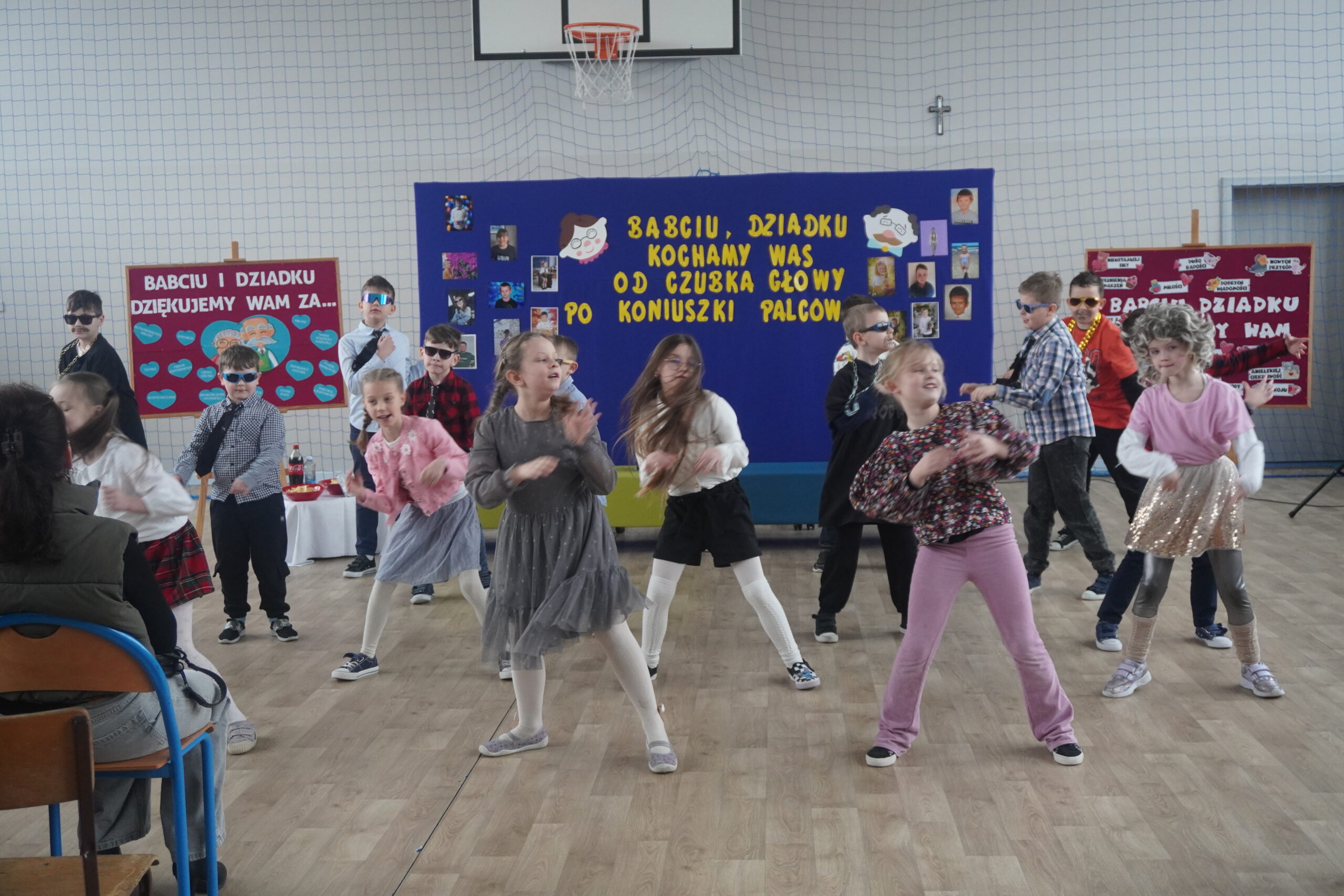 Uroczystość rozpoczęła się od części artystycznej przygotowanej przez uczniów klas 1-3. Dzieci z ogromnym zaangażowaniem wcieliły się w role Babć i Dziadków influenserów, którzy zatraceni w świecie internetu zapomnieli o swoich wnuczętach, a stęsknione pociechy szukały pomocy dla nich w programie Uwaga TV. Nie zabrakło też życzeń wypowiedzianych i wyśpiewanych, a także pokazu umiejętności tanecznych. Całość zakończyło wspólne odśpiewanie „Sto lat” Po części artystycznej przyszedł czas na upominki oraz uściski i buziaki od wnuków. Na zakończenie pani dyrektor Danuta Walisiak i wójt Gminy Ostrów Wielkopolski Dariusz Pryczak , złożyli serdeczne życzenia wszystkim Babciom i Dziadkom – życząc im dużo zdrowia, uśmiechu i nieustającej dumy z wnuków. Dzień zakończył się słodkim poczęstunkiem, który był wspaniałą okazją do rozmów i wspólnego świętowania w rodzinnej atmosferze. Dziękujemy wszystkim Babciom i Dziadkom za obecność i cudowne chwile. Życzymy dużo zdrowia i pomyślności!