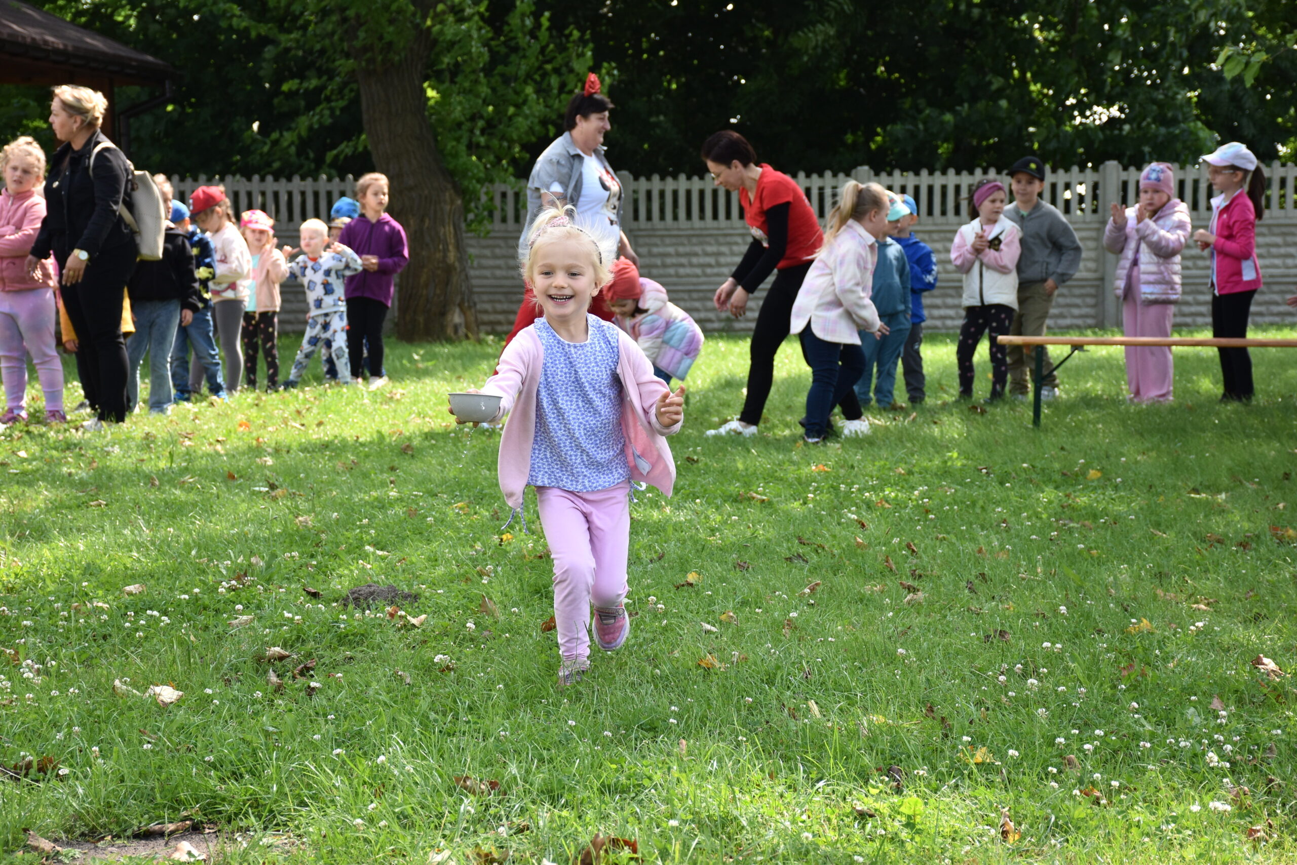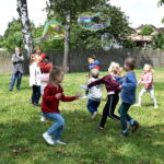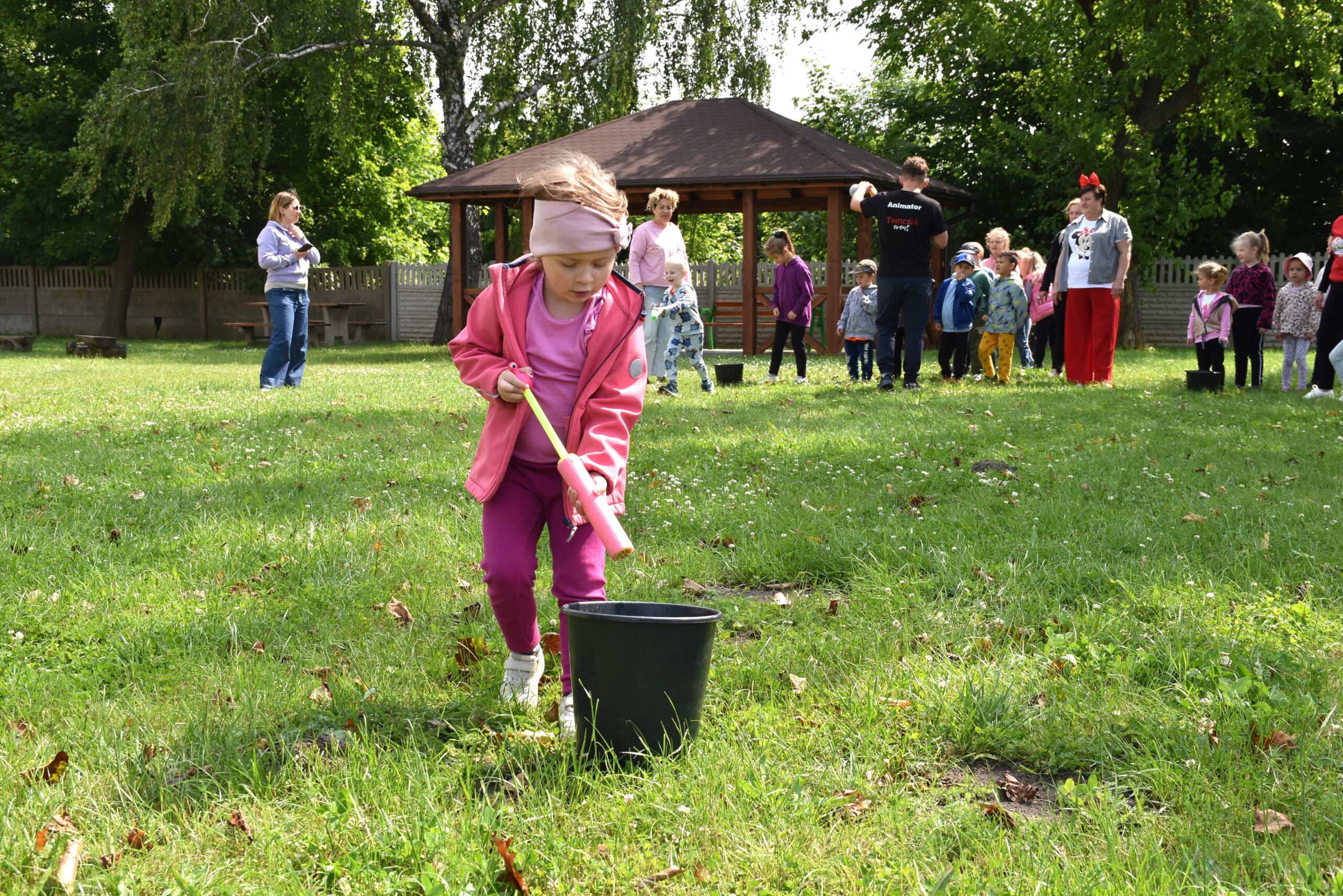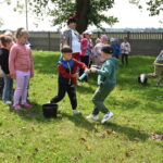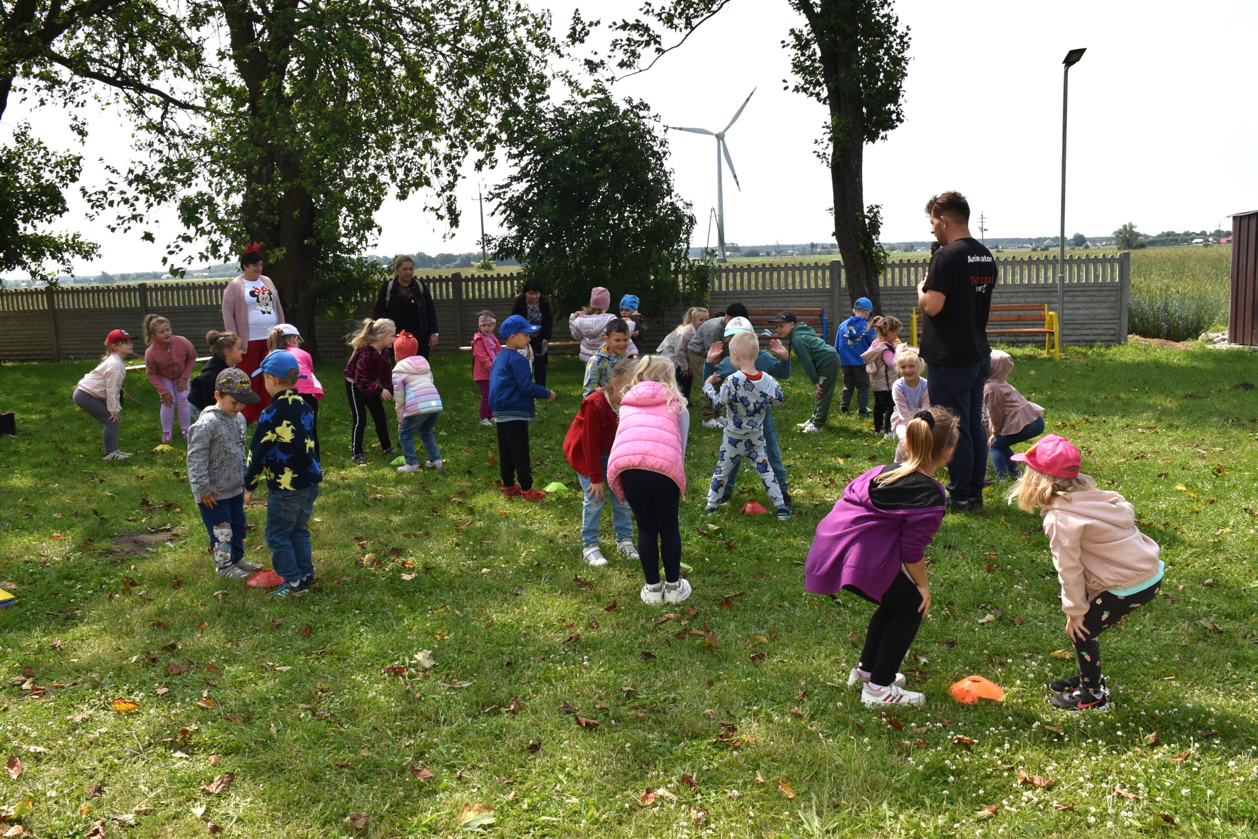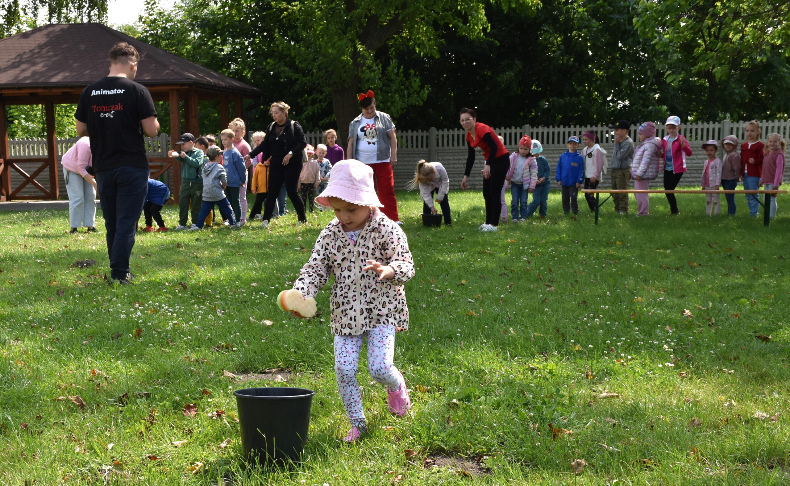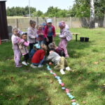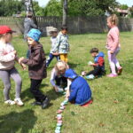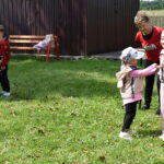 Ogromną radość sprawił animator Tomczak Event, który zorganizował szereg zabaw ruchowych na świeżym powietrzu. Przedszkolaki aktywnie uczestniczyły w wyścigach rzędów i innych konkurencjach sportowych. Nie zabrakło przeciągania liny, przenoszenia wody czy układania piankowych krążków.