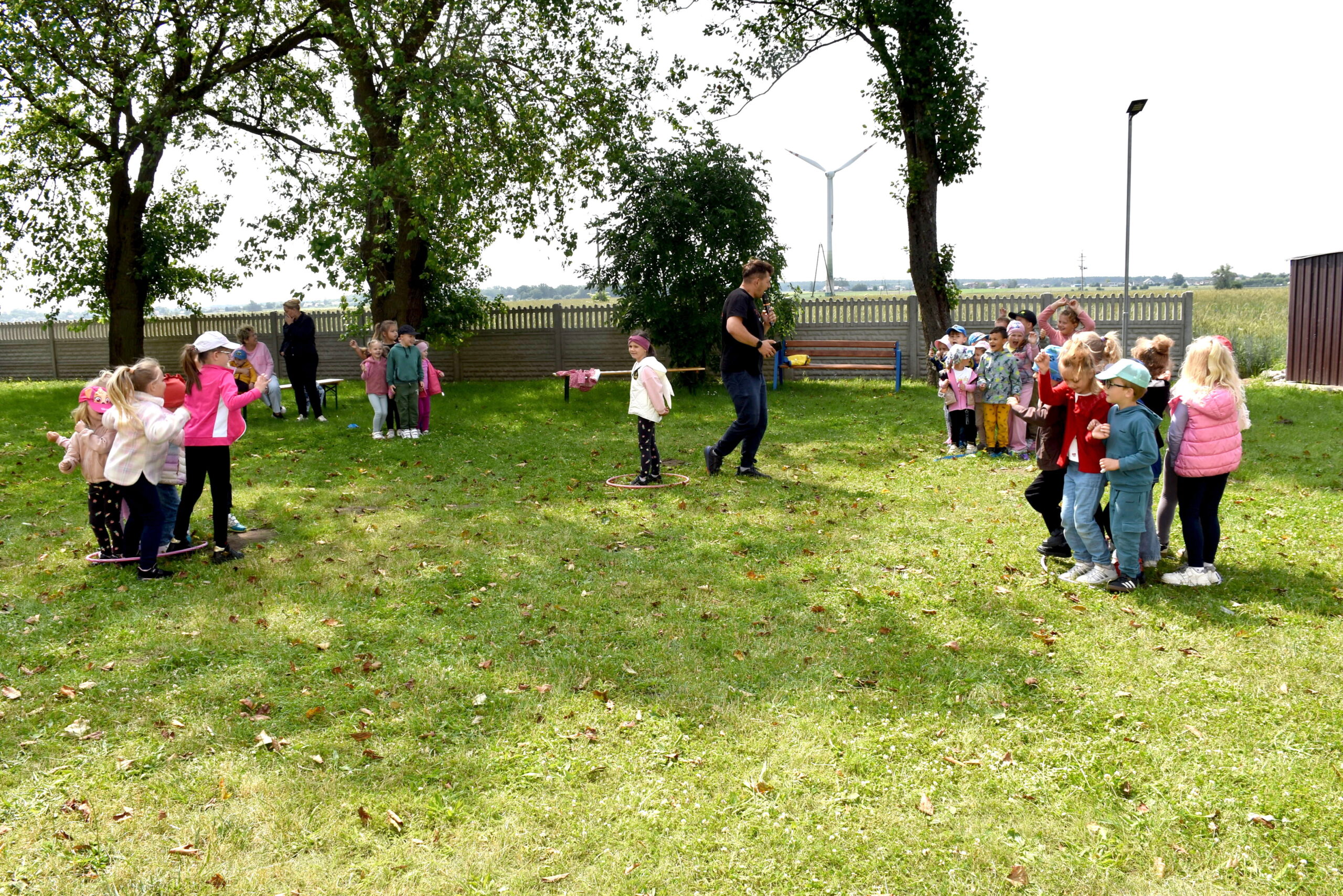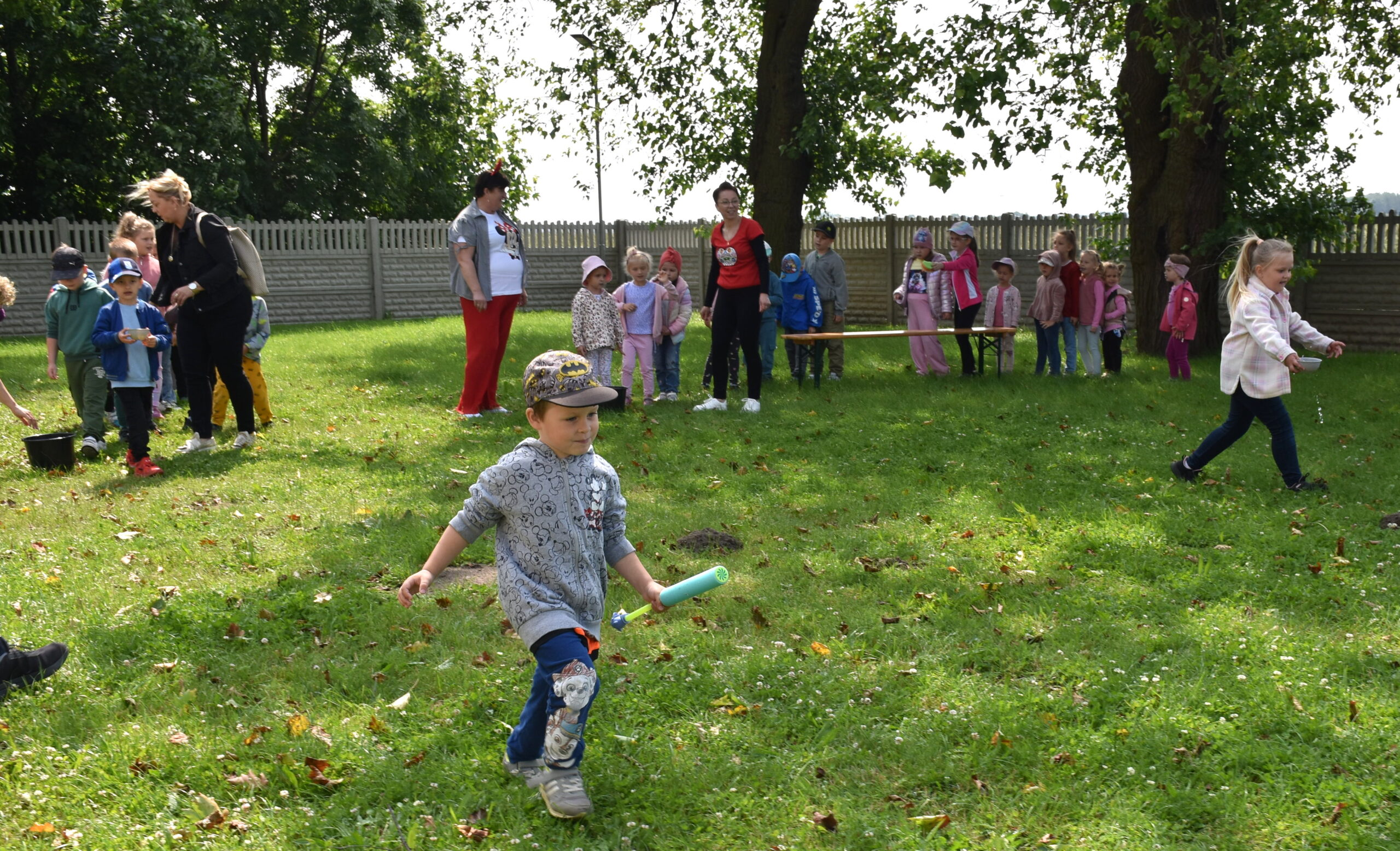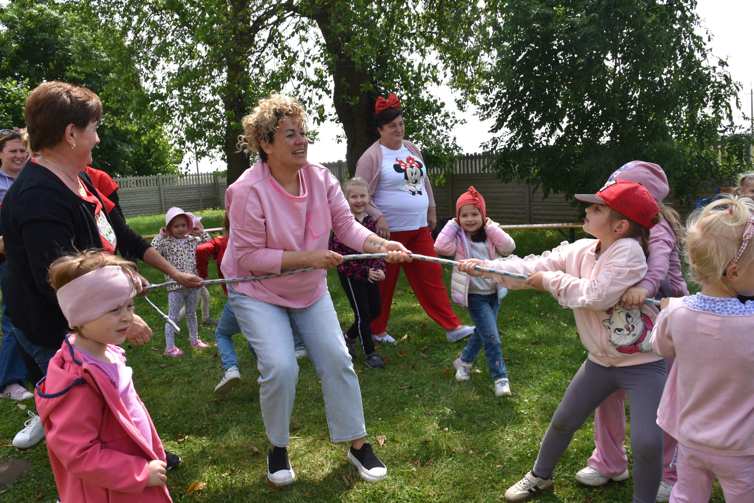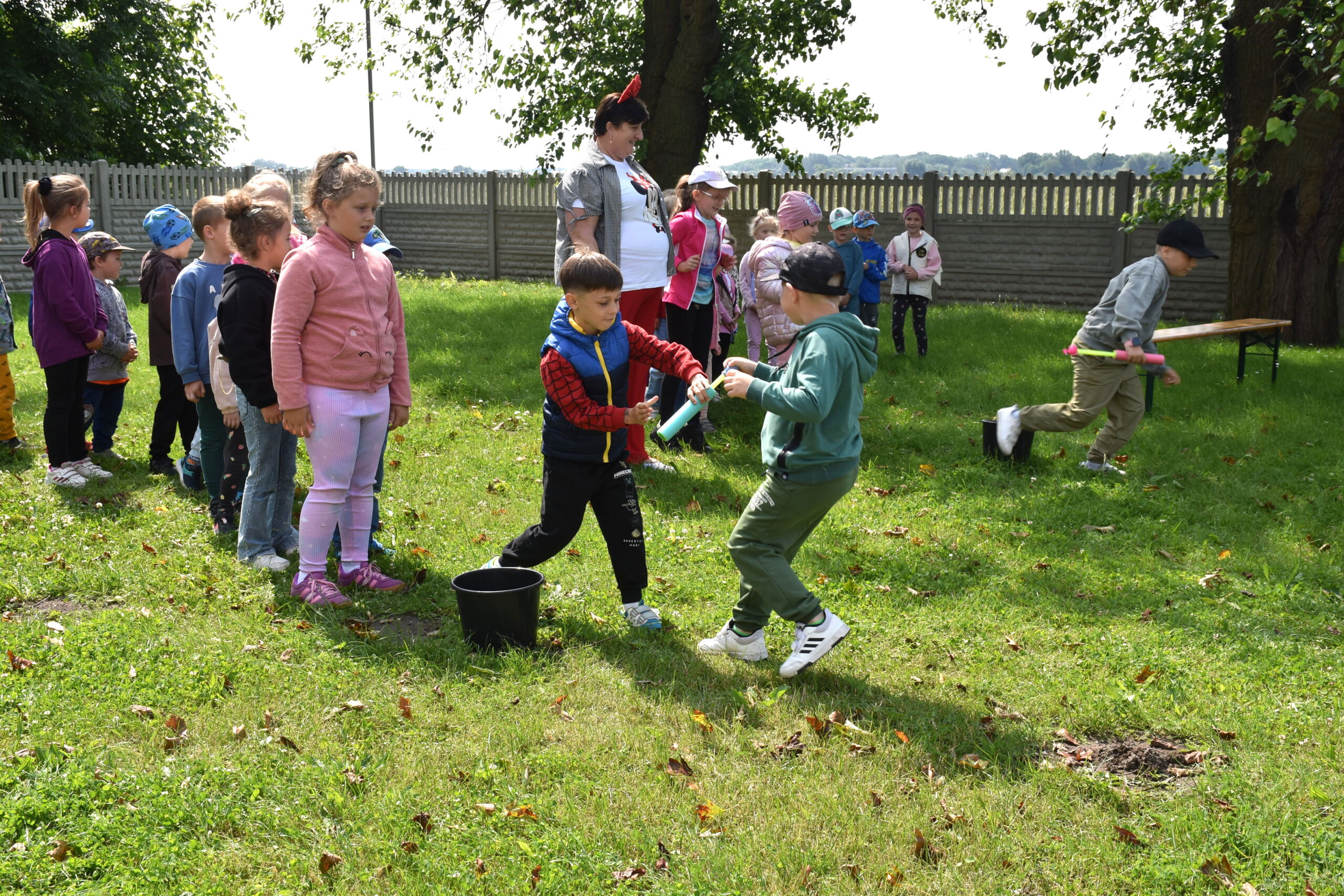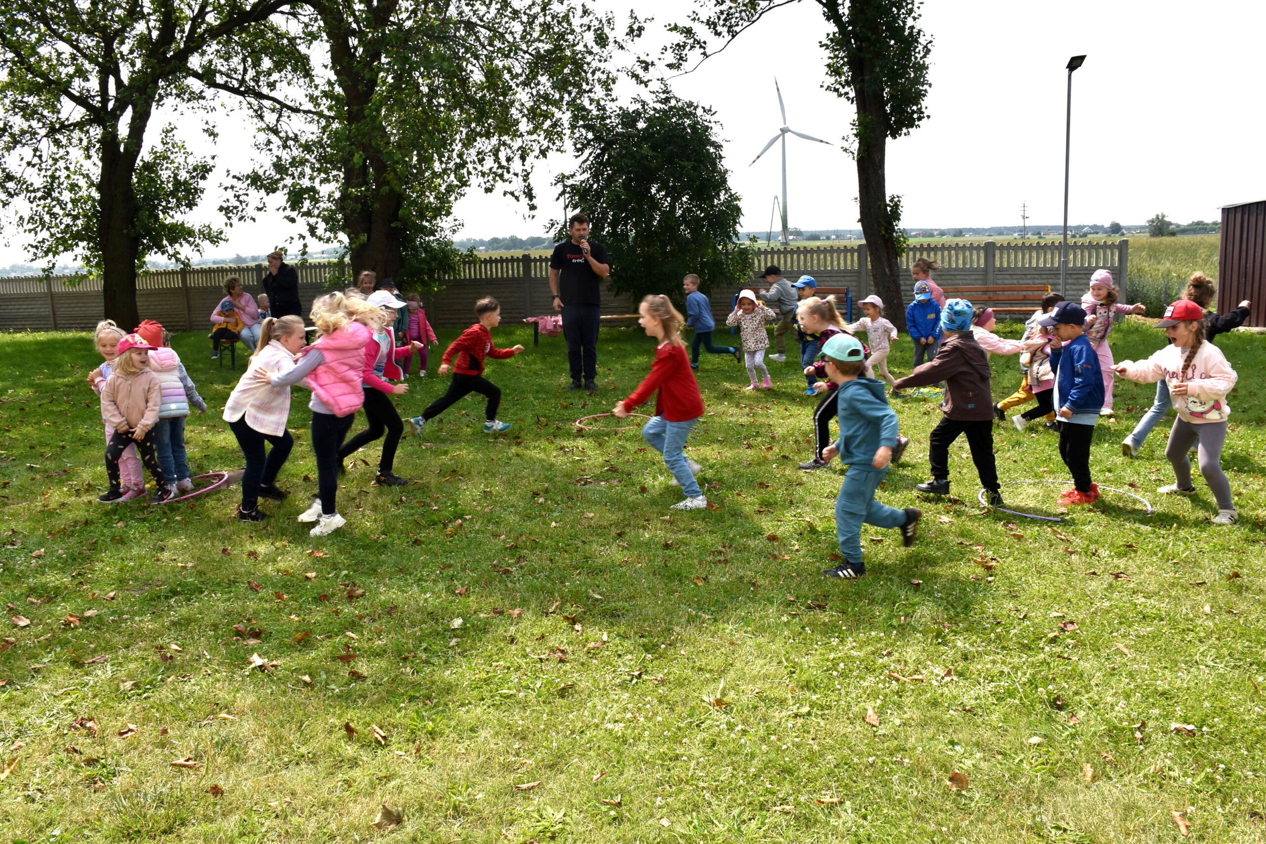Ogromną radość sprawił animator Tomczak Event, który zorganizował szereg zabaw ruchowych na świeżym powietrzu. Przedszkolaki aktywnie uczestniczyły w wyścigach rzędów i innych konkurencjach sportowych. Nie zabrakło przeciągania liny, przenoszenia wody czy układania piankowych krążków.