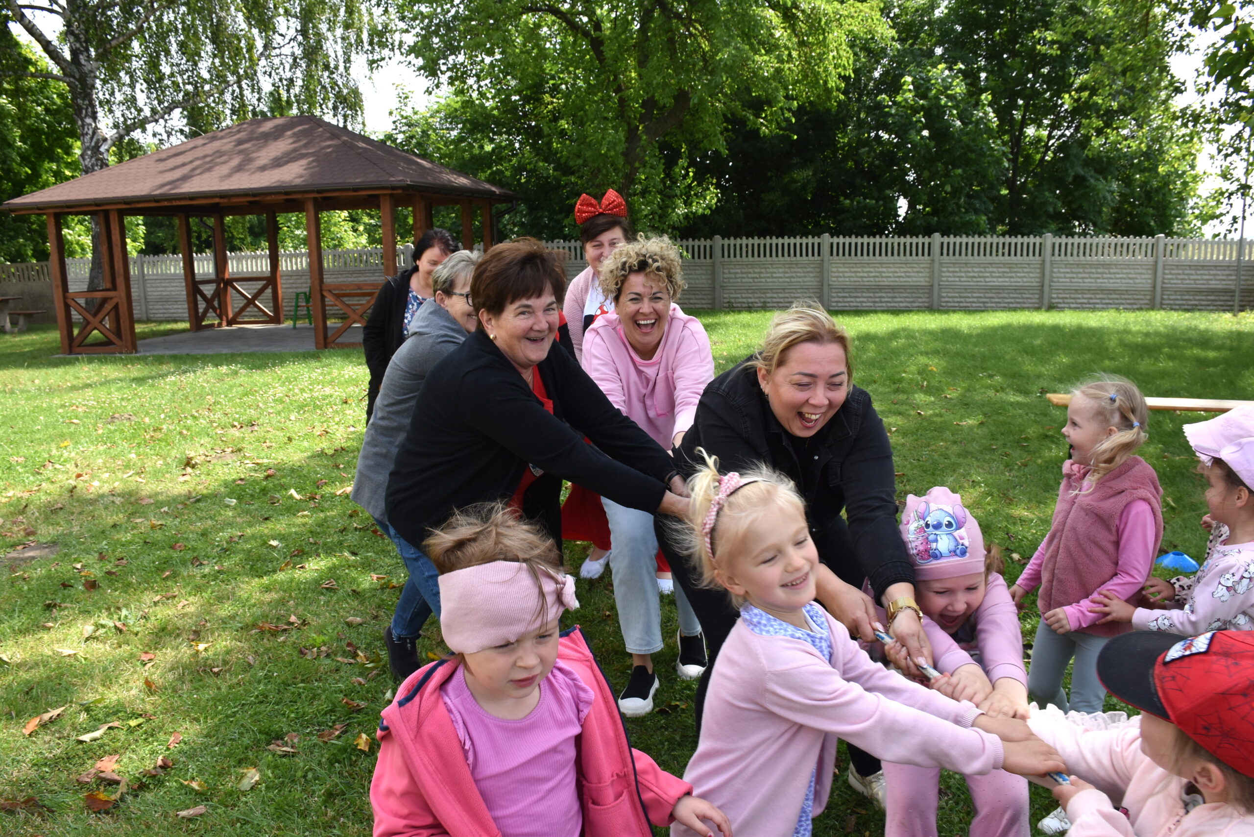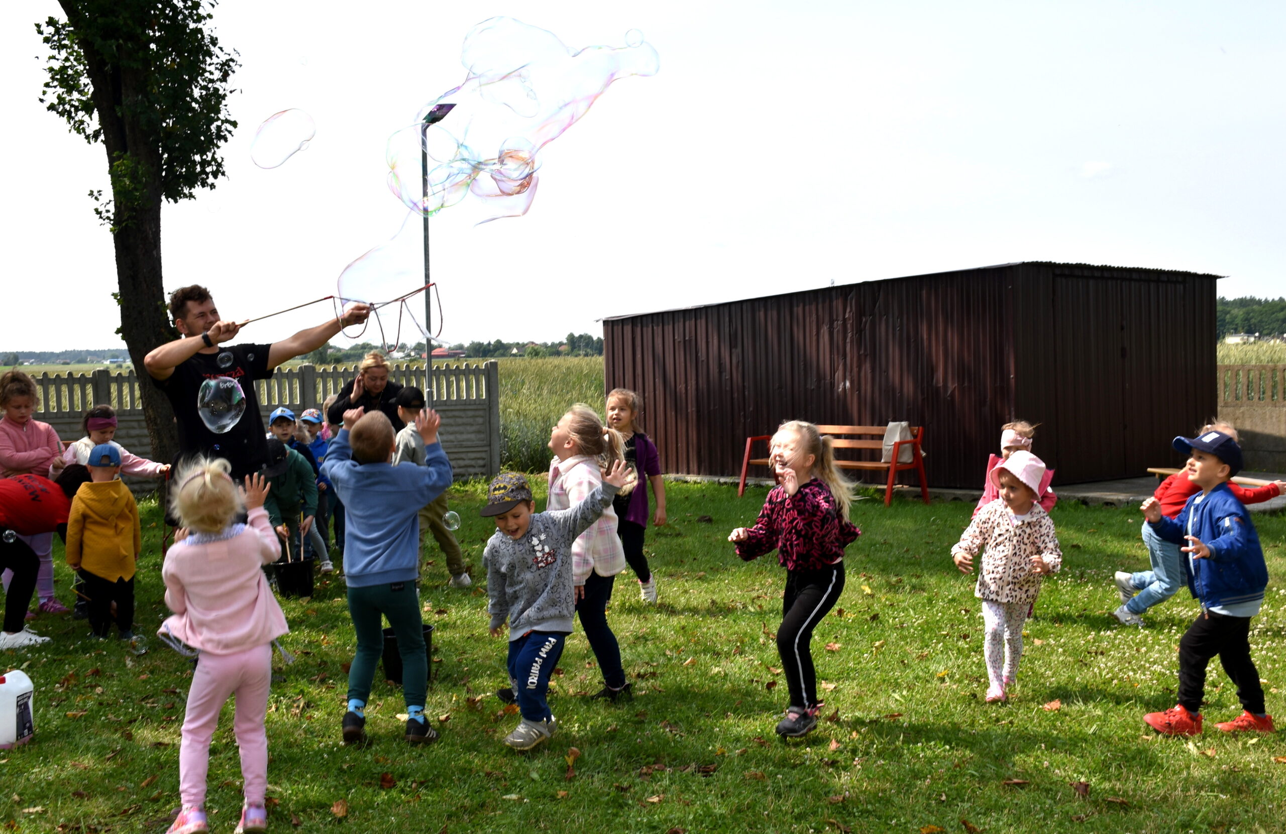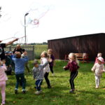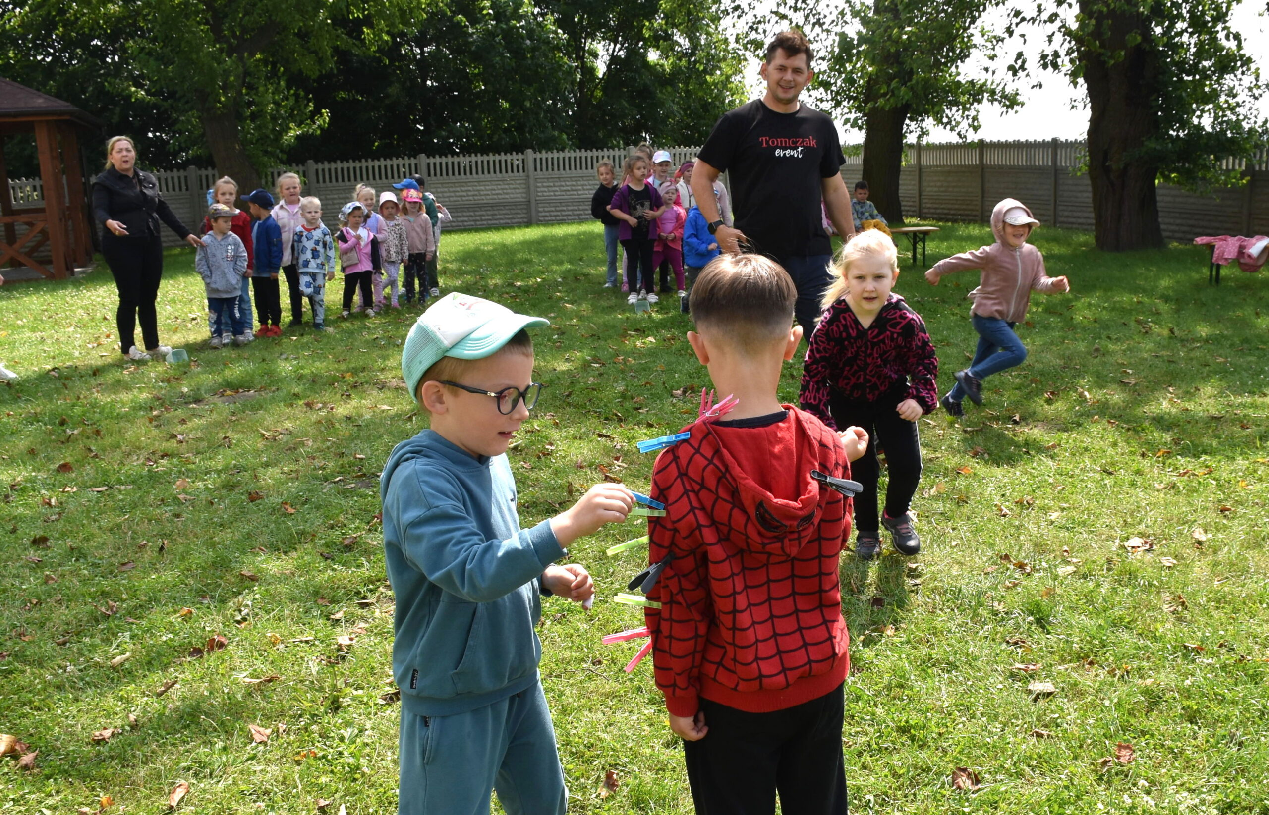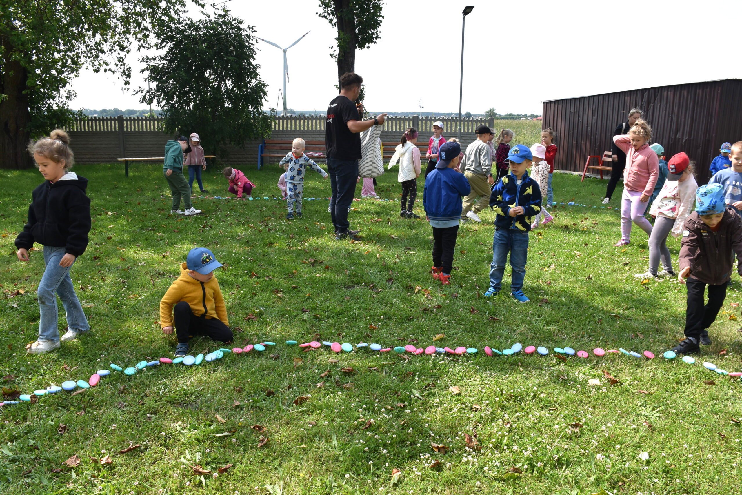 Ogromną radość sprawił animator Tomczak Event, który zorganizował szereg zabaw ruchowych na świeżym powietrzu. Przedszkolaki aktywnie uczestniczyły w wyścigach rzędów i innych konkurencjach sportowych. Nie zabrakło przeciągania liny, przenoszenia wody czy układania piankowych krążków.