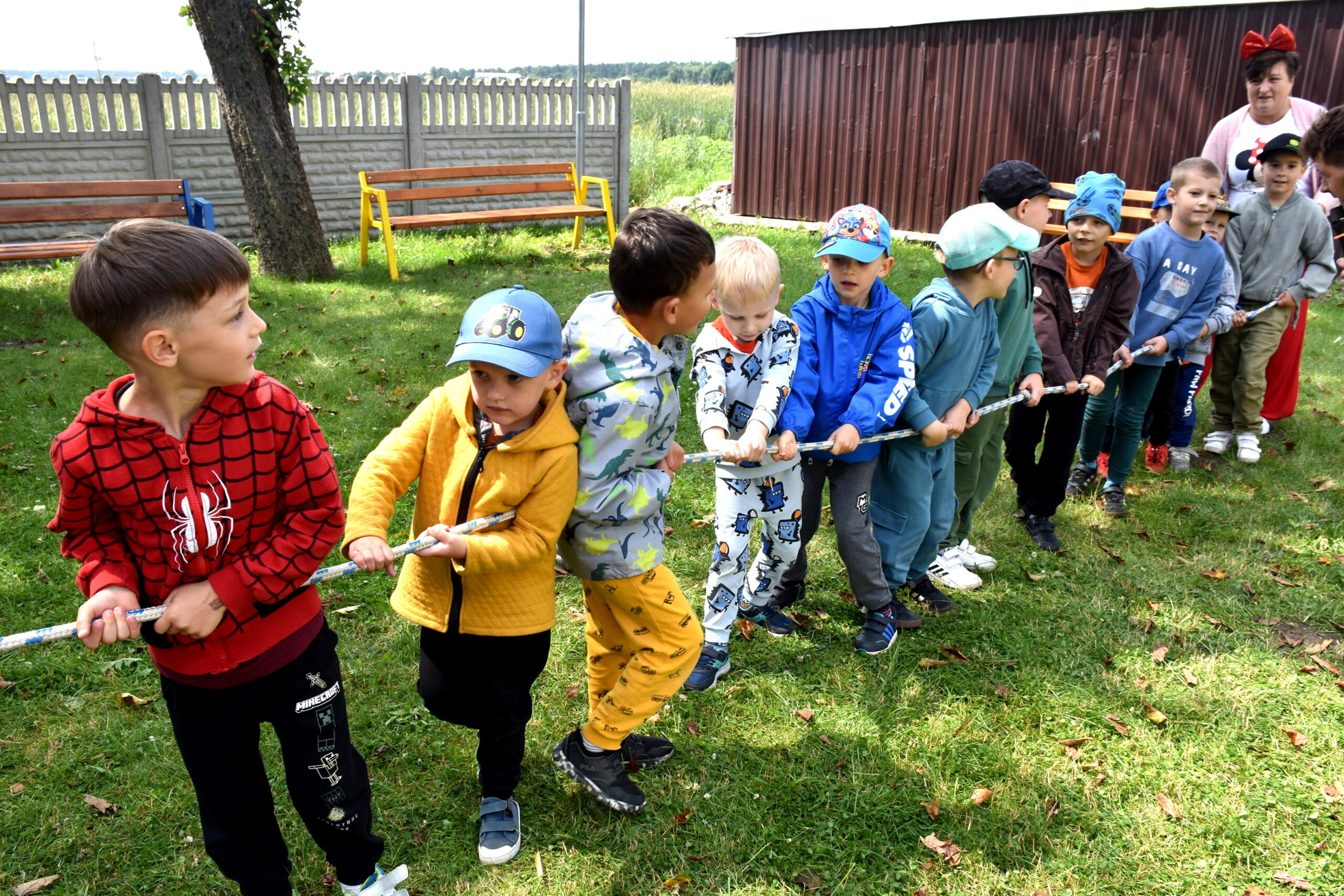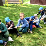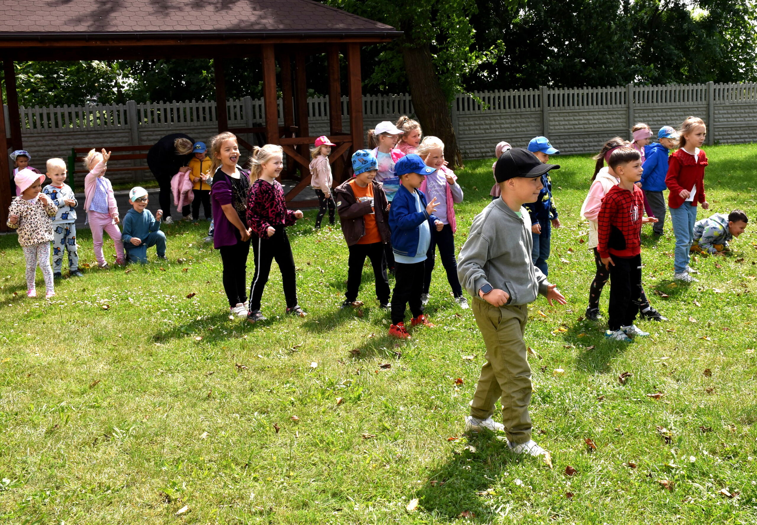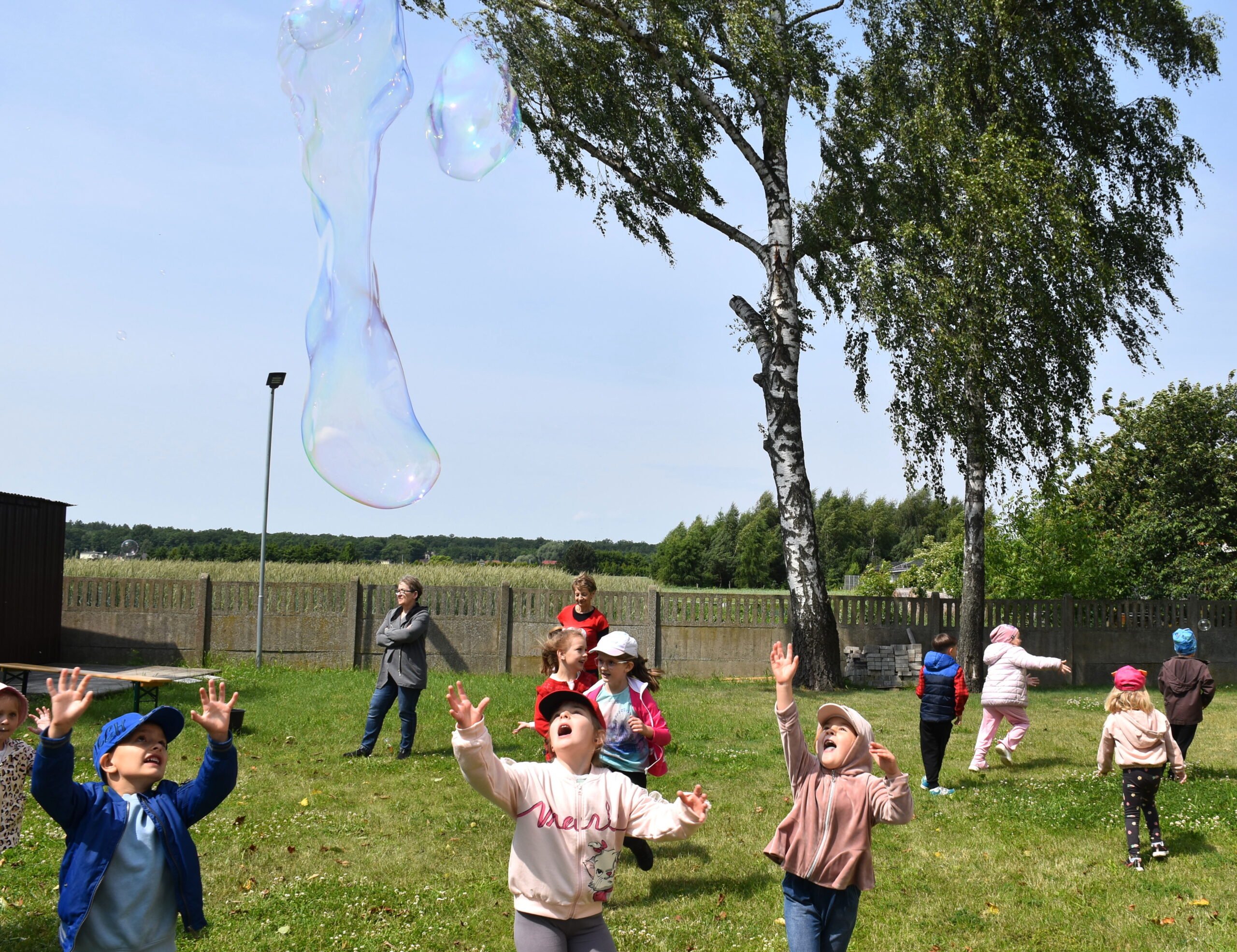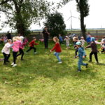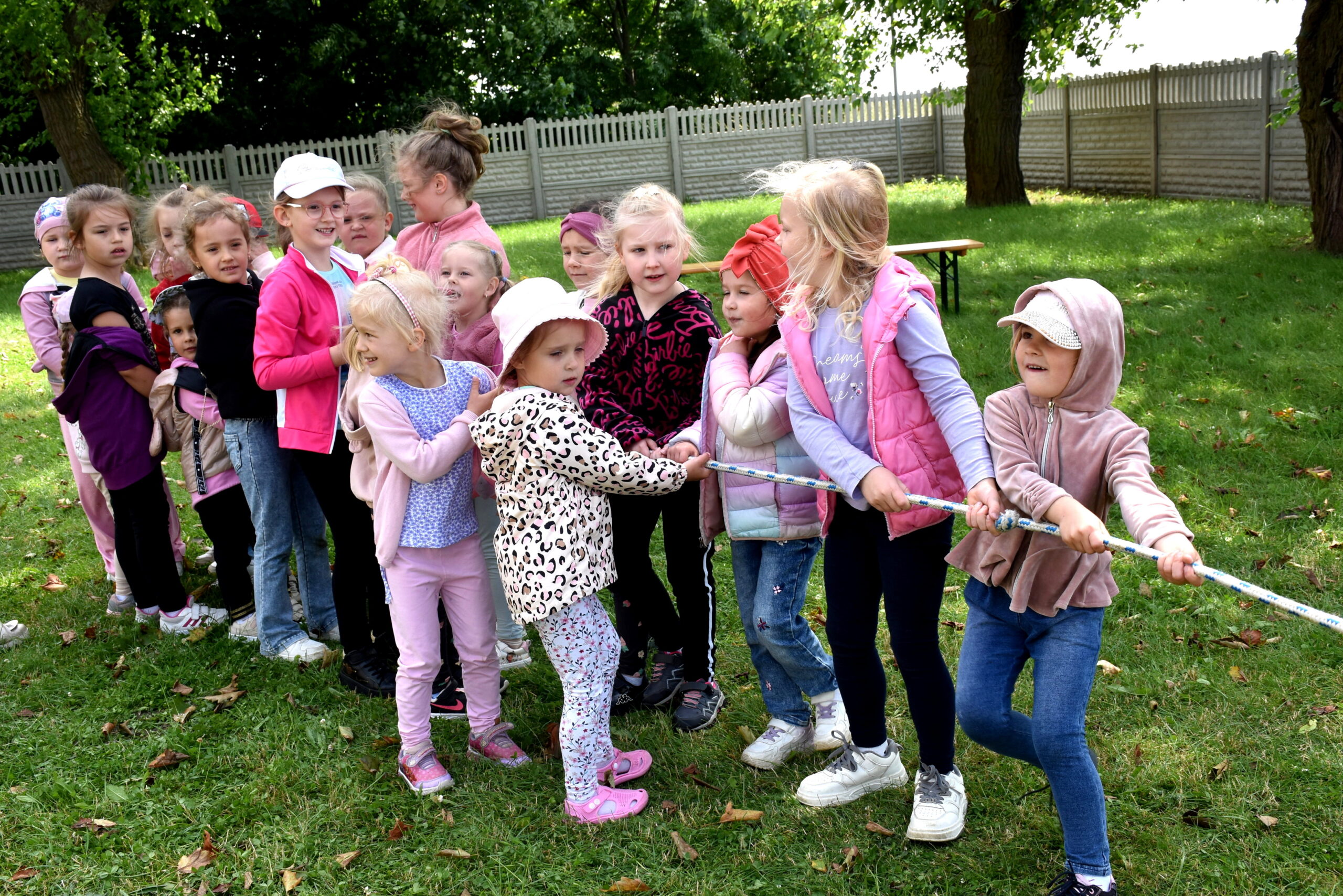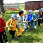 Ogromną radość sprawił animator Tomczak Event, który zorganizował szereg zabaw ruchowych na świeżym powietrzu. Przedszkolaki aktywnie uczestniczyły w wyścigach rzędów i innych konkurencjach sportowych. Nie zabrakło przeciągania liny, przenoszenia wody czy układania piankowych krążków.