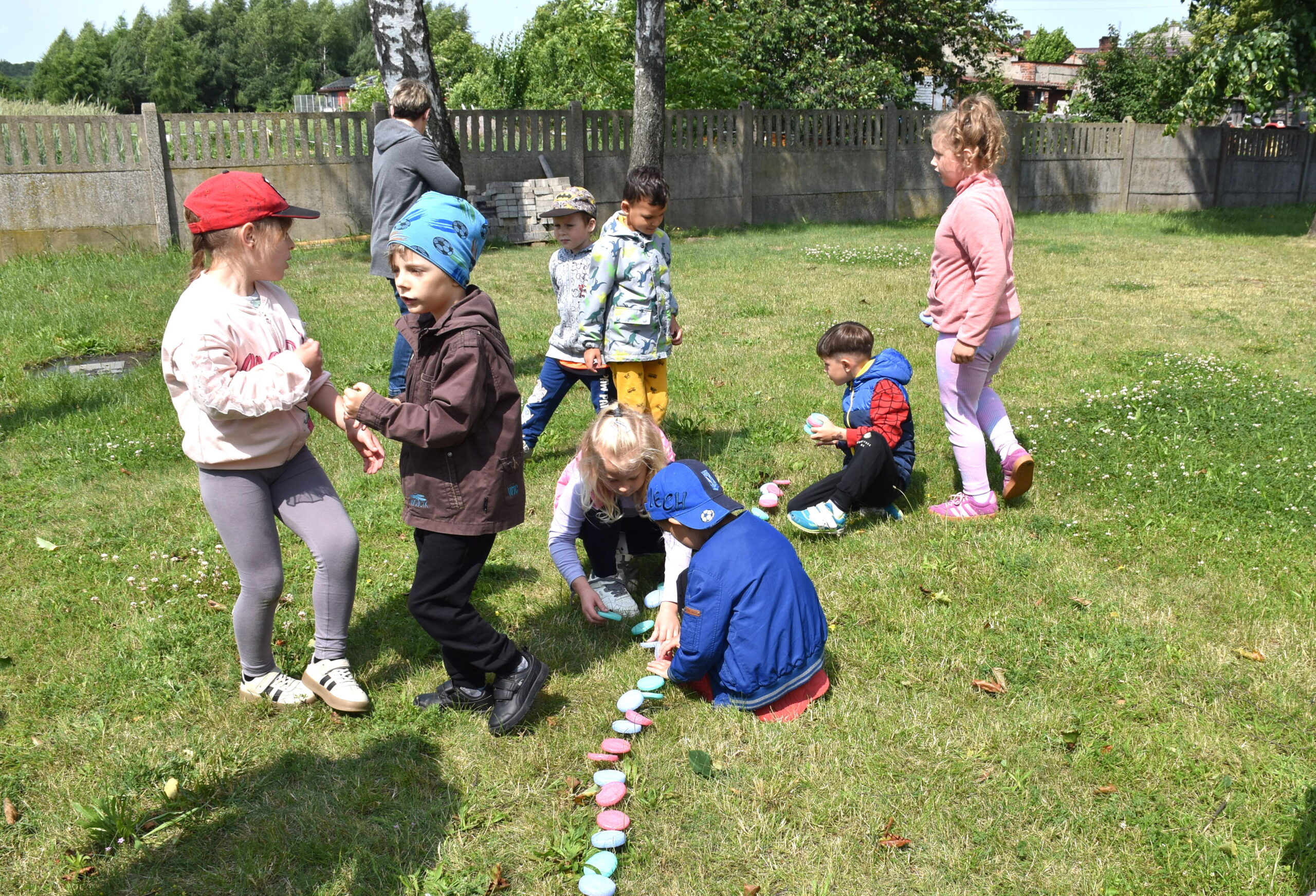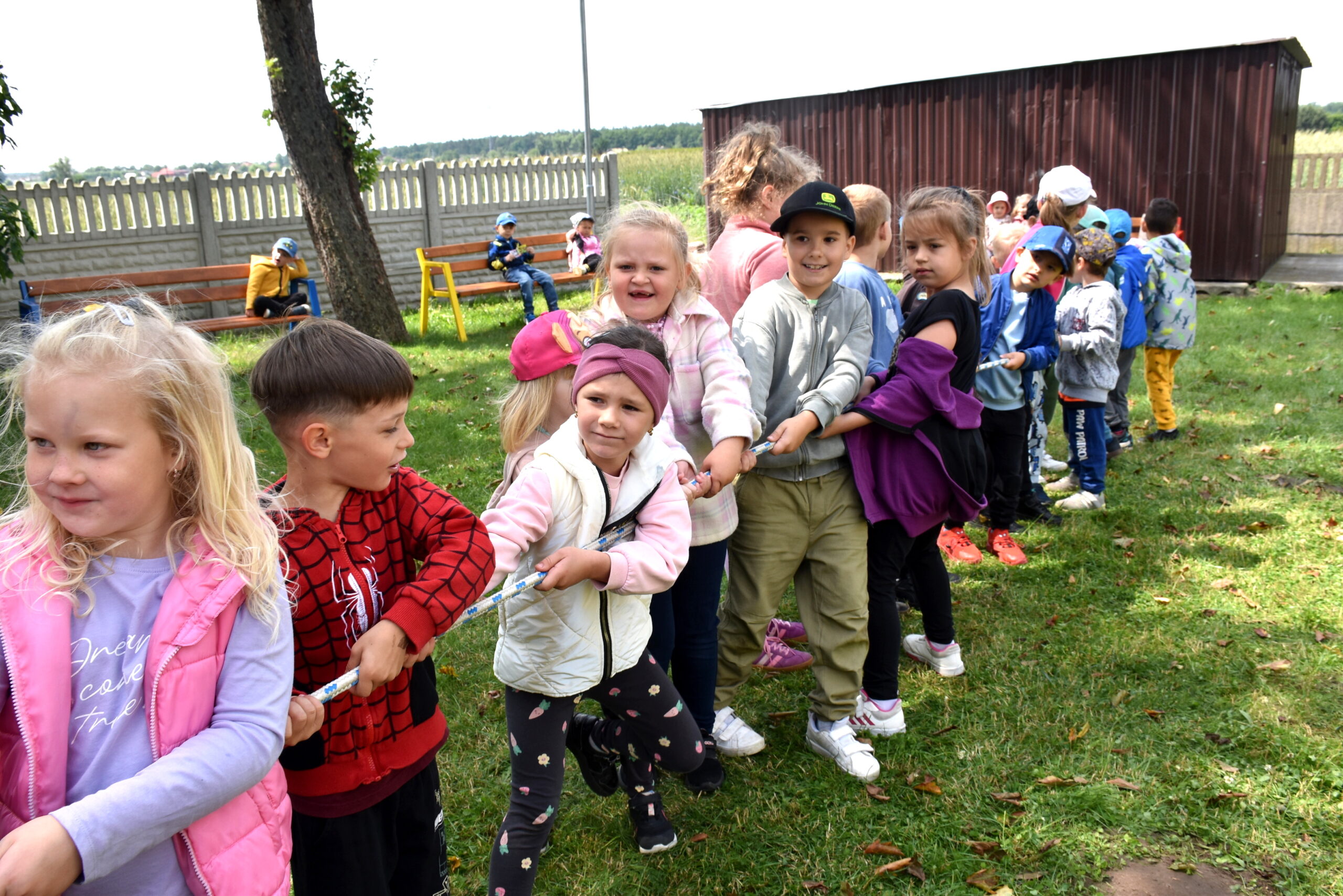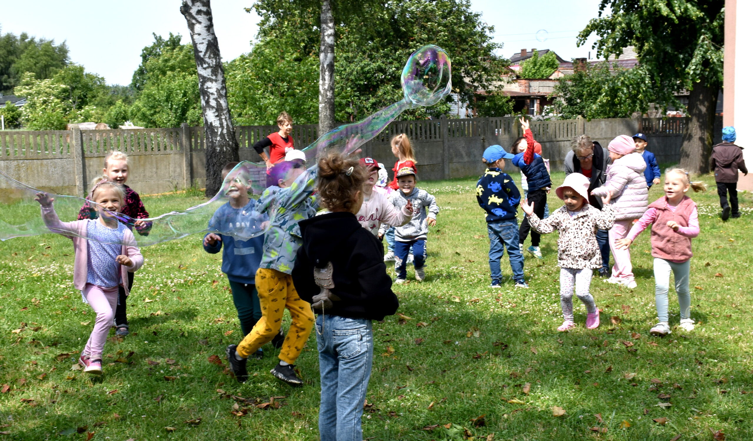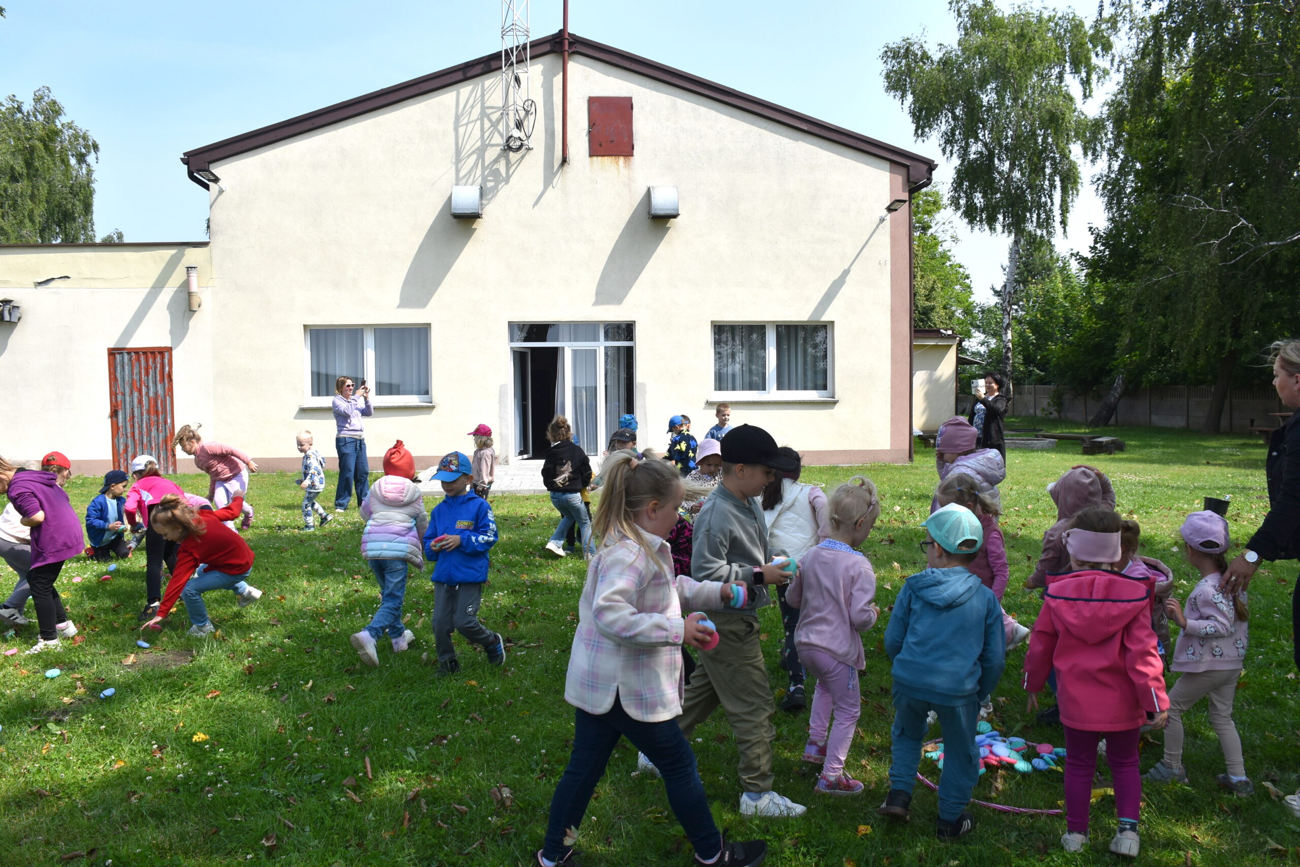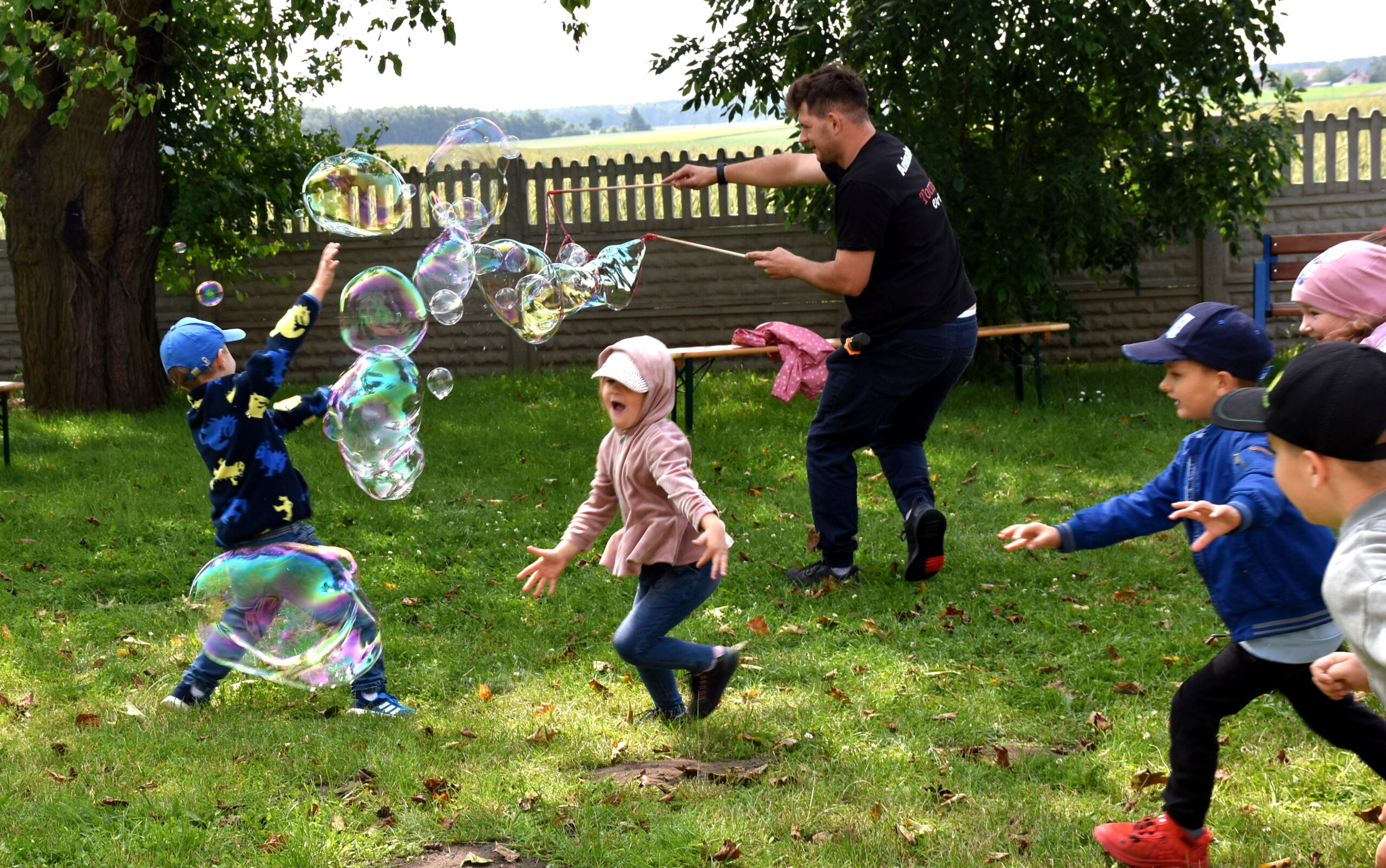Ogromną radość sprawił animator Tomczak Event, który zorganizował szereg zabaw ruchowych na świeżym powietrzu. Przedszkolaki aktywnie uczestniczyły w wyścigach rzędów i innych konkurencjach sportowych. Nie zabrakło przeciągania liny, przenoszenia wody czy układania piankowych krążków.
