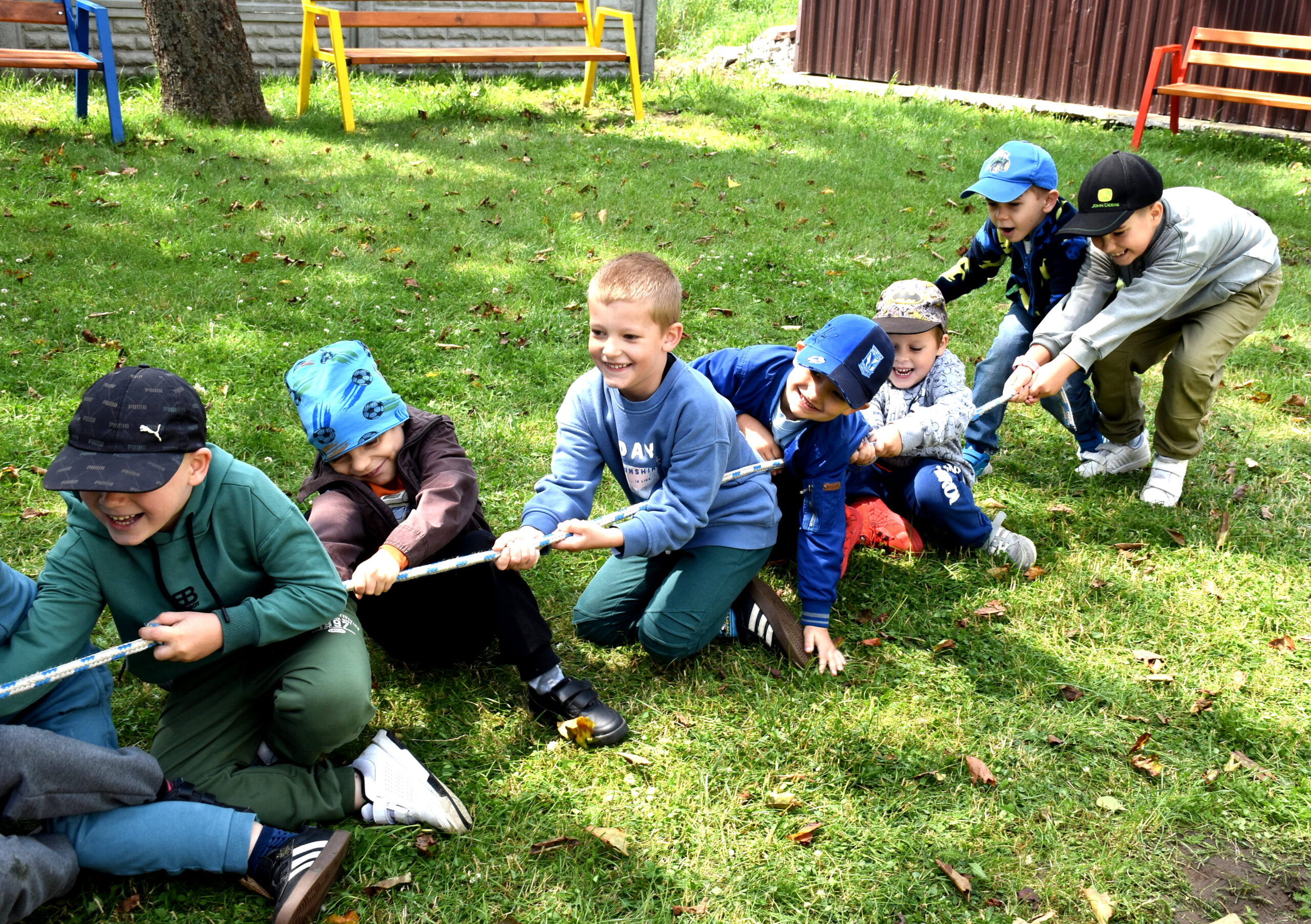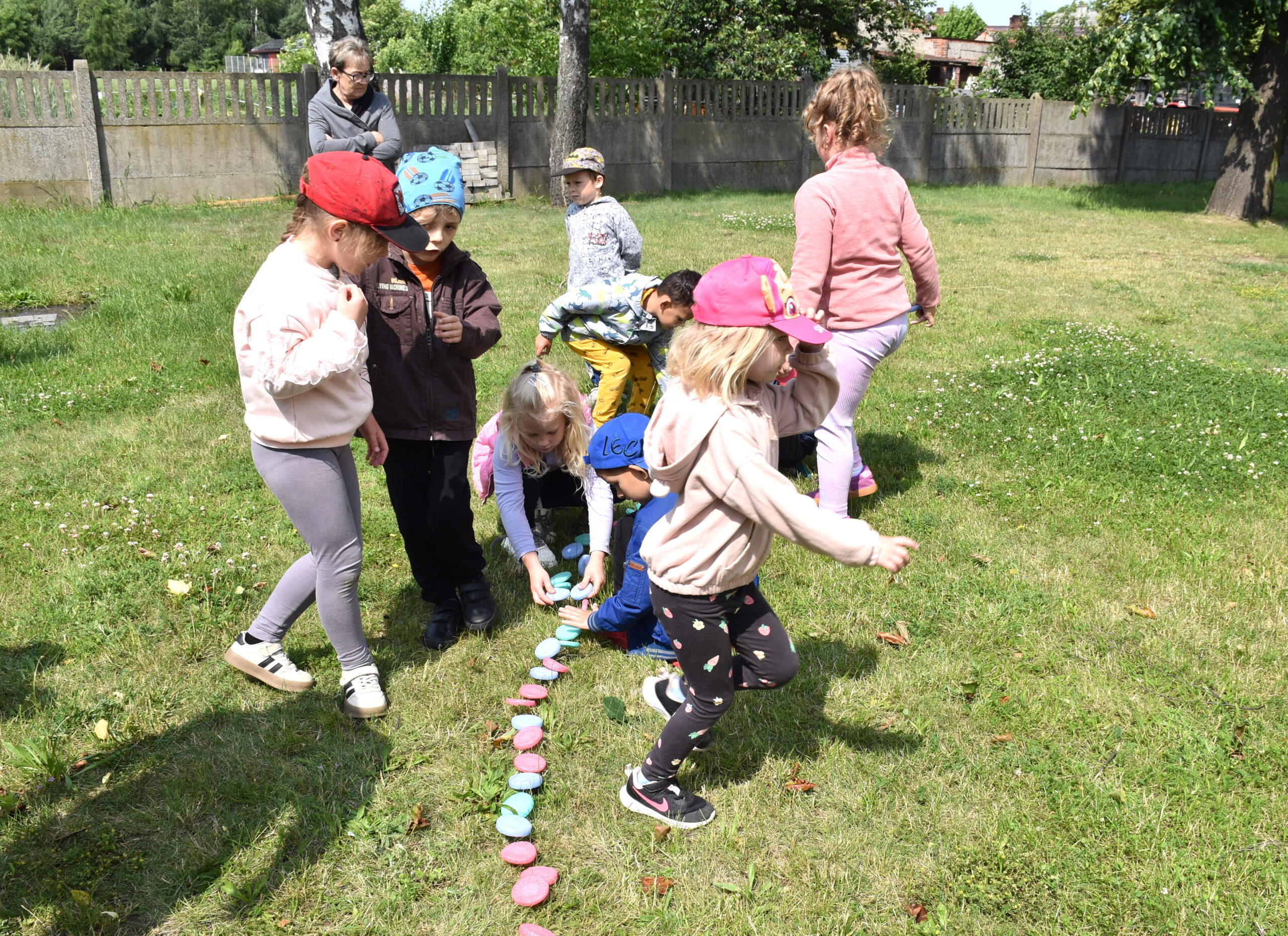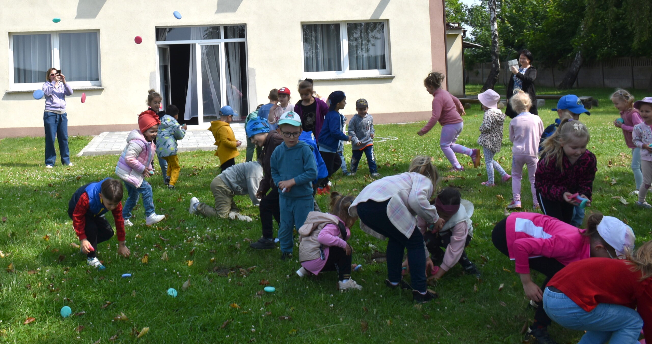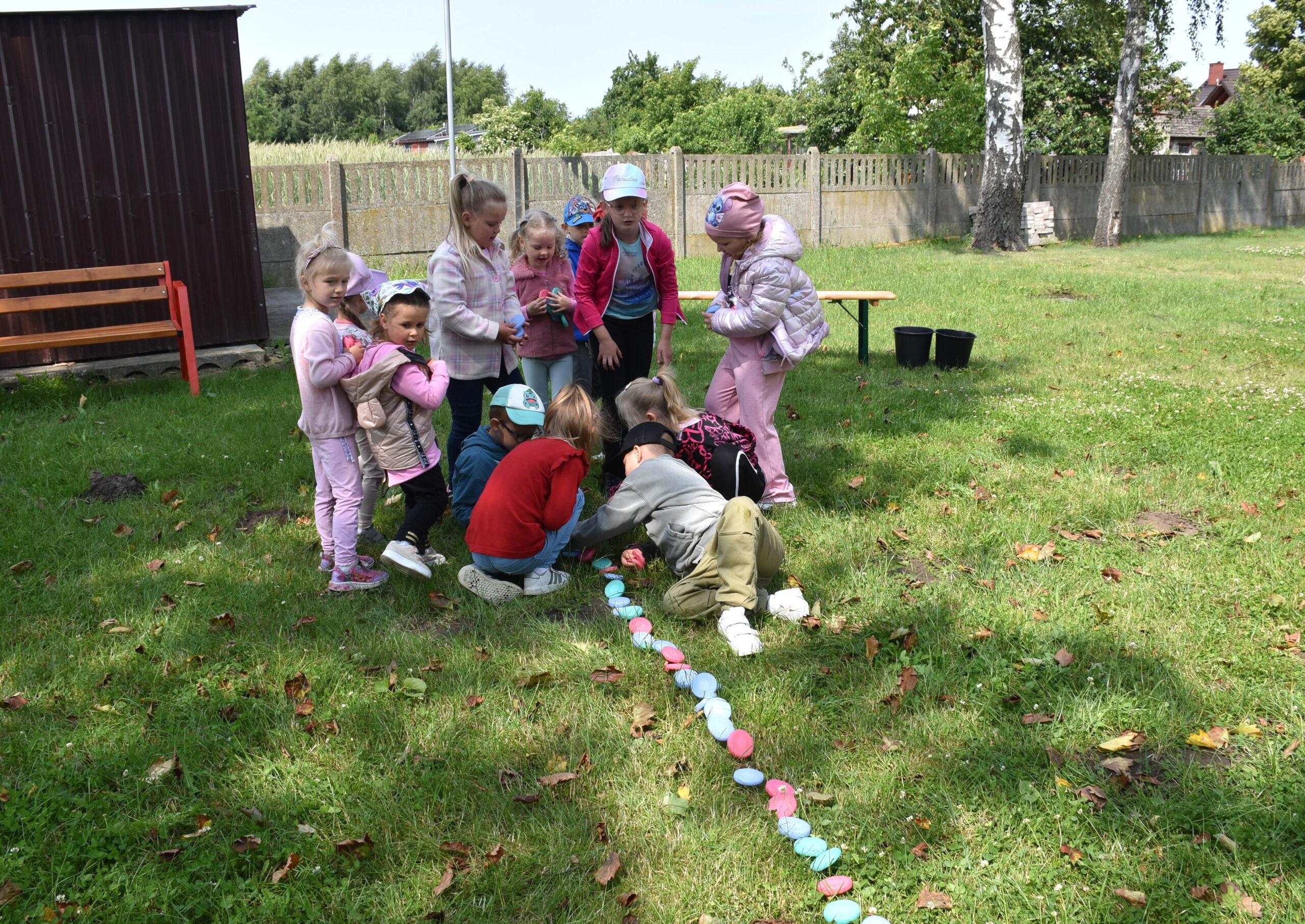 Ogromną radość sprawił animator Tomczak Event, który zorganizował szereg zabaw ruchowych na świeżym powietrzu. Przedszkolaki aktywnie uczestniczyły w wyścigach rzędów i innych konkurencjach sportowych. Nie zabrakło przeciągania liny, przenoszenia wody czy układania piankowych krążków.