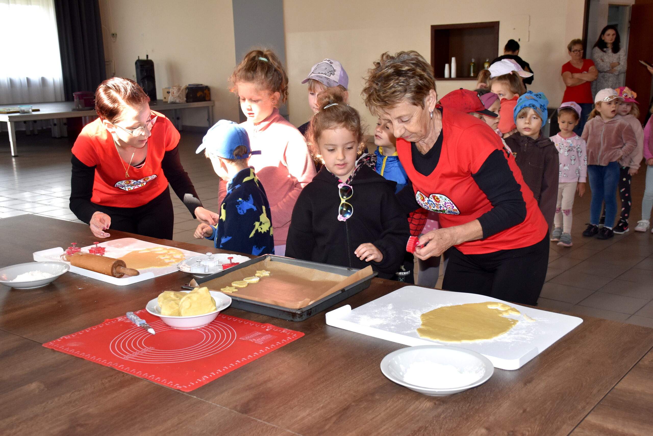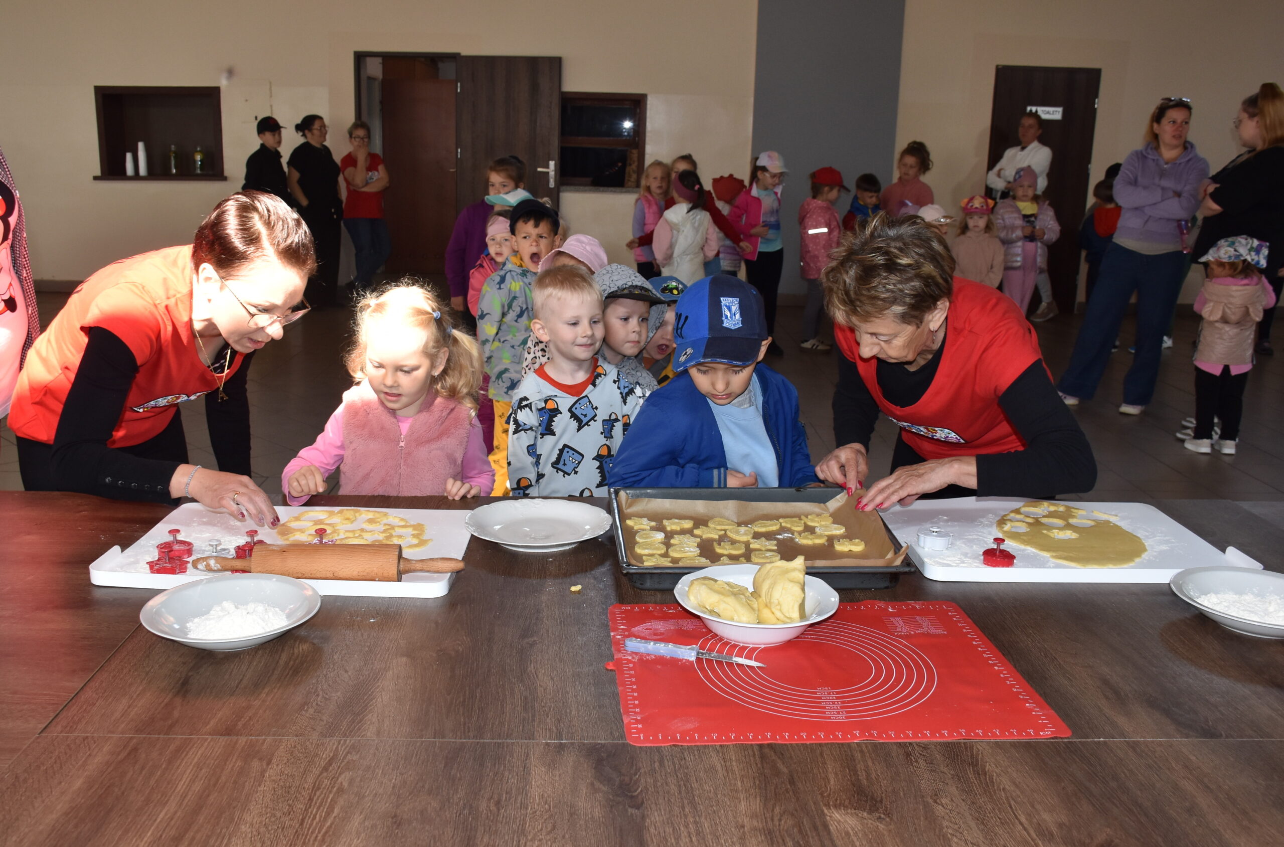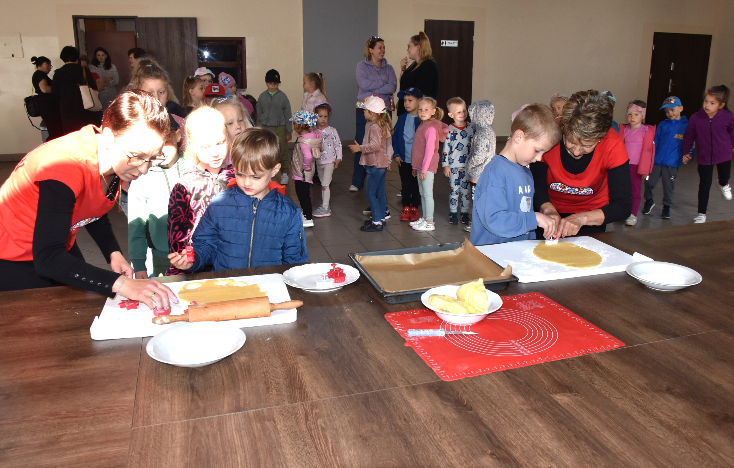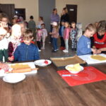 Na dzieci czekała kulinarna atrakcja. Panie z Kgw Biniew przygotowały ciasto, z którego przedszkolaki wycinały foremkami kształty maślanych ciasteczek. Smakołyki zostały upieczone i kosztowane przez uczestników. Były również lody oraz soczki.