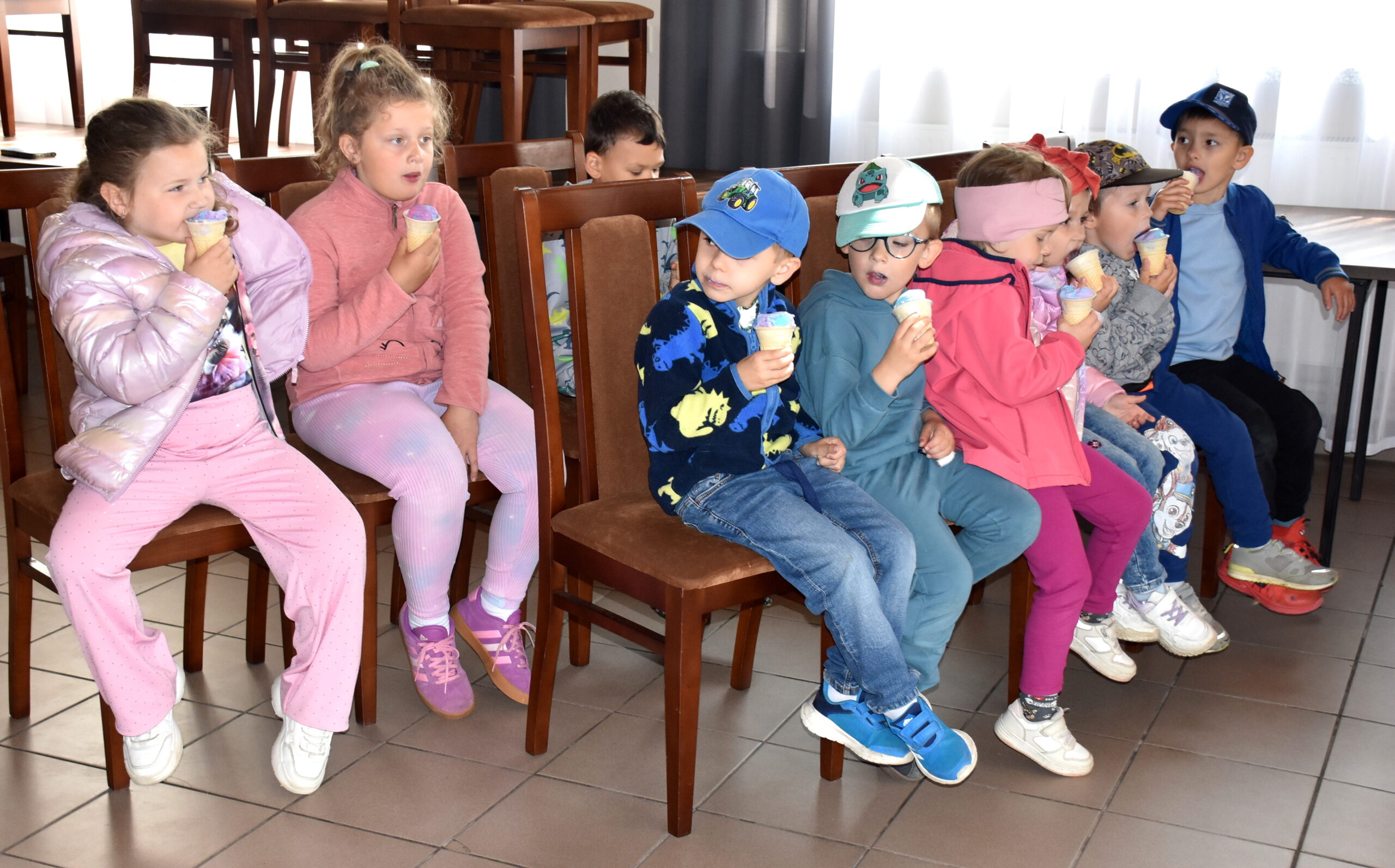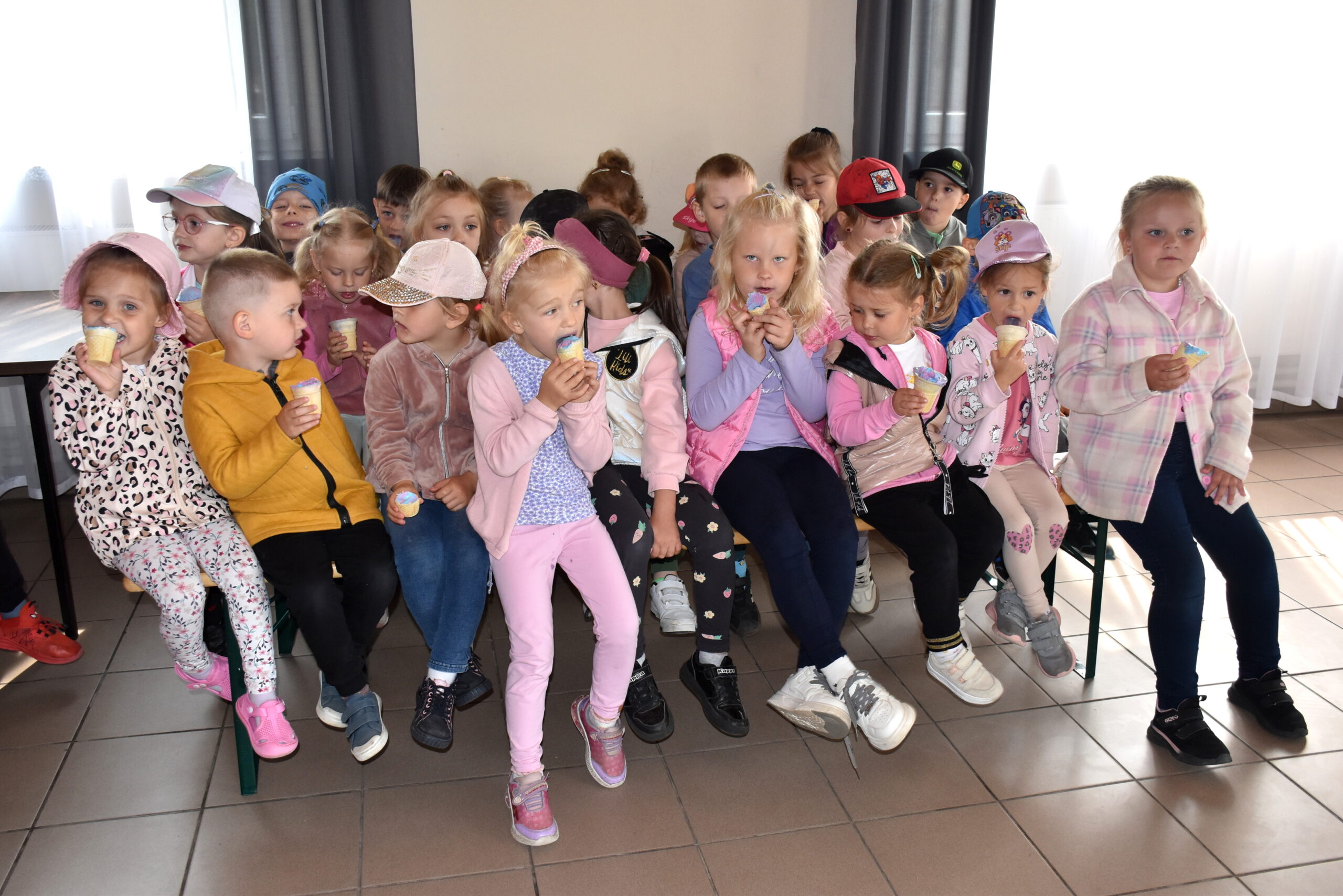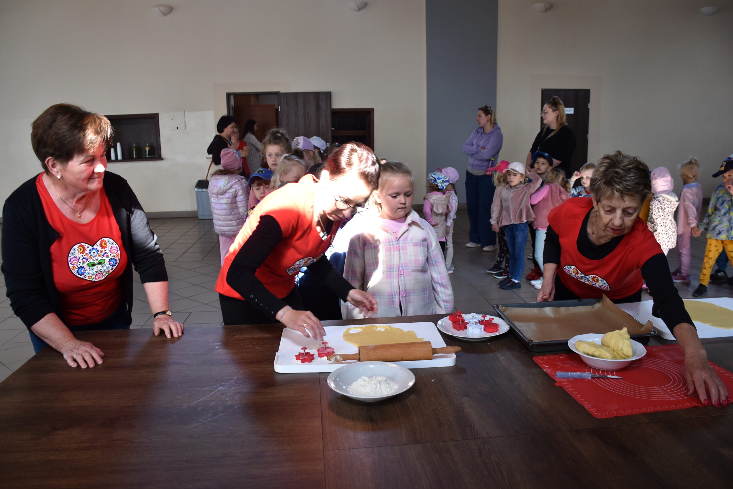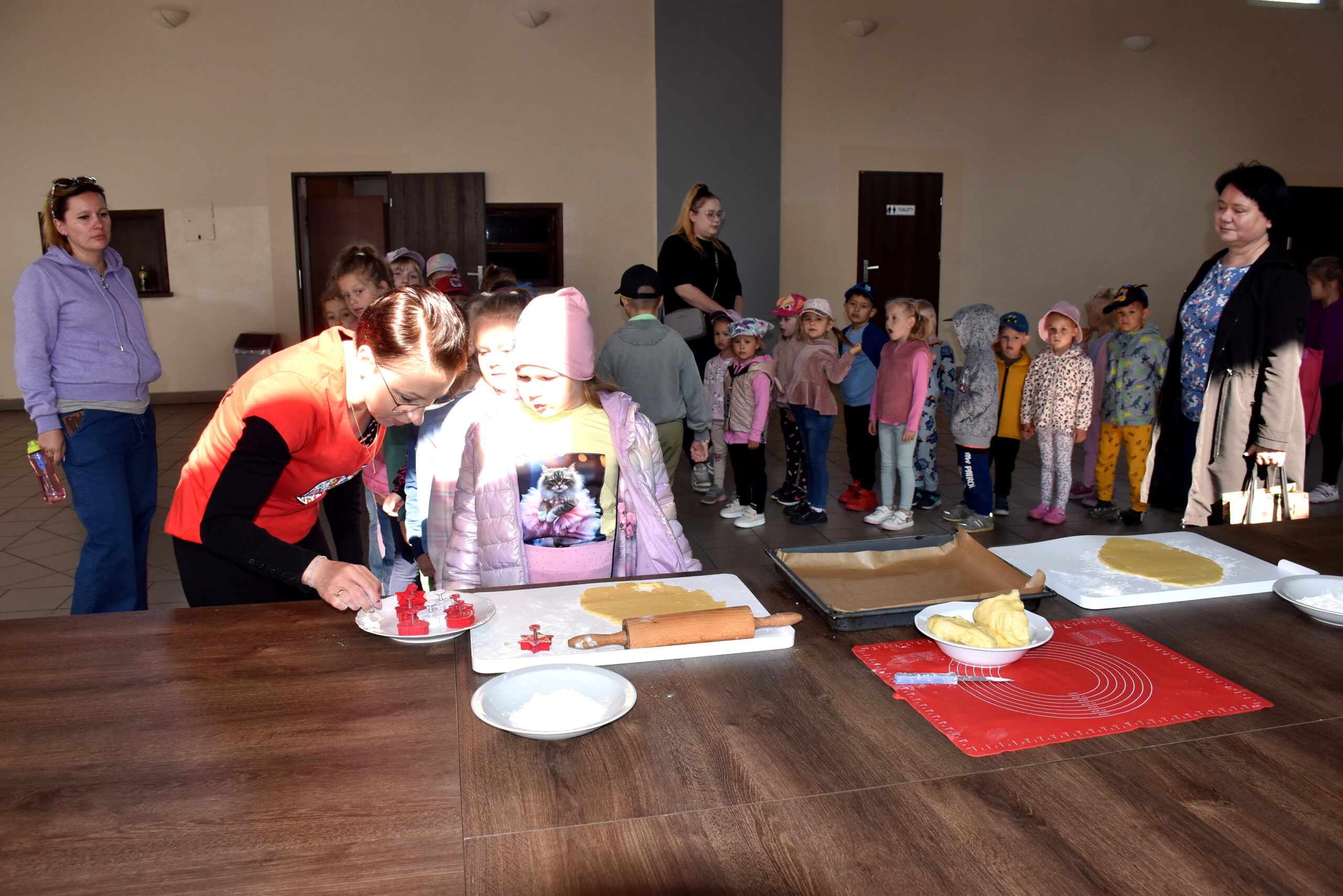 Na dzieci czekała kulinarna atrakcja. Panie z Kgw Biniew przygotowały ciasto, z którego przedszkolaki wycinały foremkami kształty maślanych ciasteczek. Smakołyki zostały upieczone i kosztowane przez uczestników. Były również lody oraz soczki.