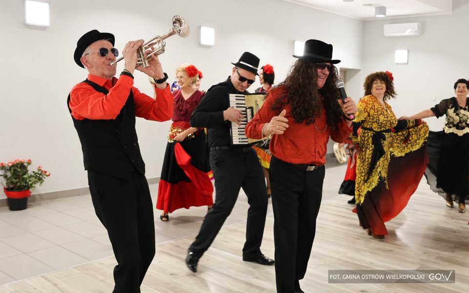 Ozdobą wieczoru był brawurowy występ zespołu Wiecznie Młodzi z piosenkami w stylu romskim, zachwycający bajecznie kolorowymi strojami i niezwykłym temperamentem artystów. Pełne pasji rytmy porwały publiczność do wspólnej zabawy – do tańca dołączył również wójt Pryczak oraz panie biorące udział w uroczystości.